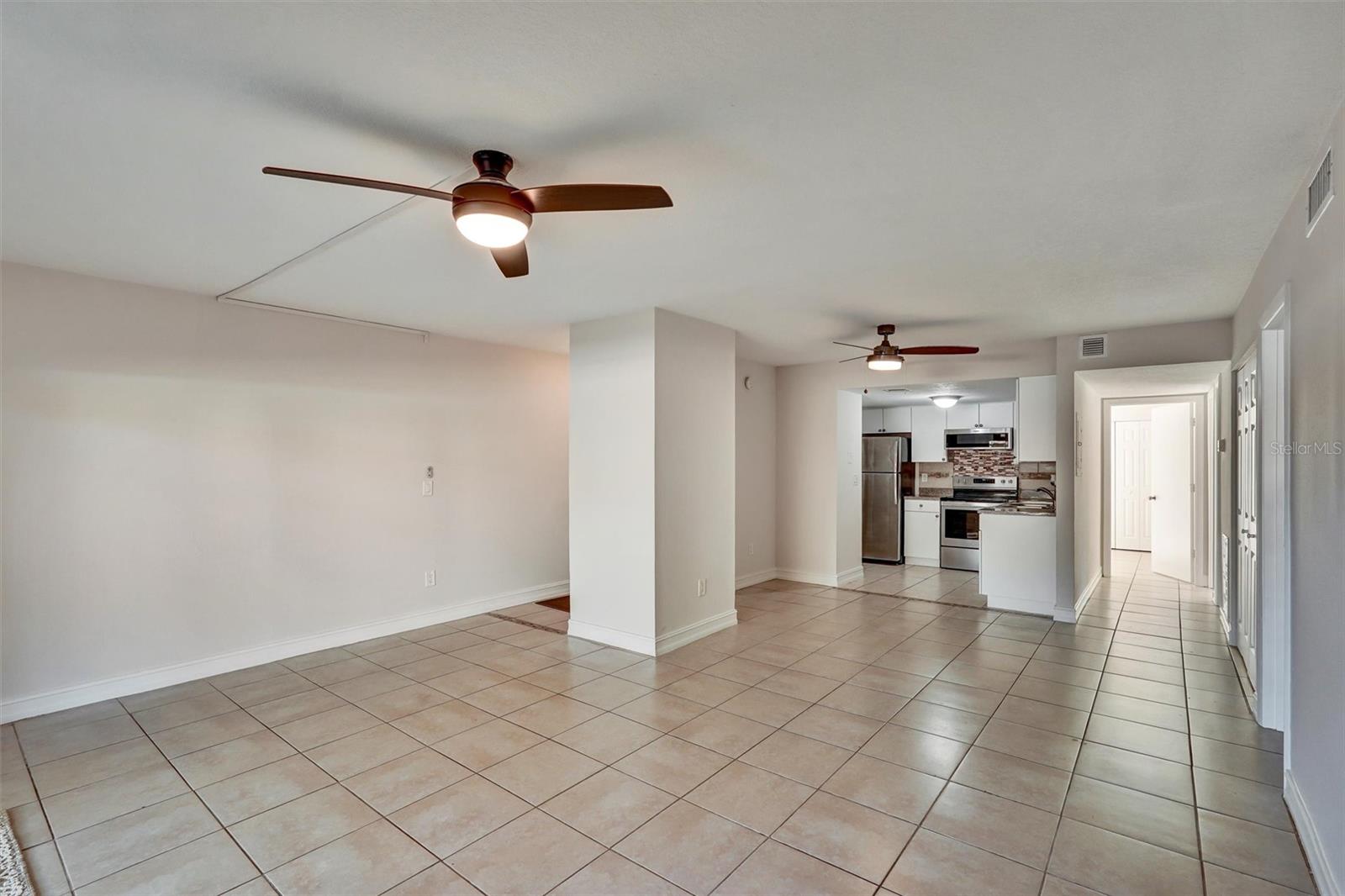 Ceiling Fans(s), Living Room/Dining Room Combo, Primary Bedroom Main Floor, Thermostat, Window Treatments