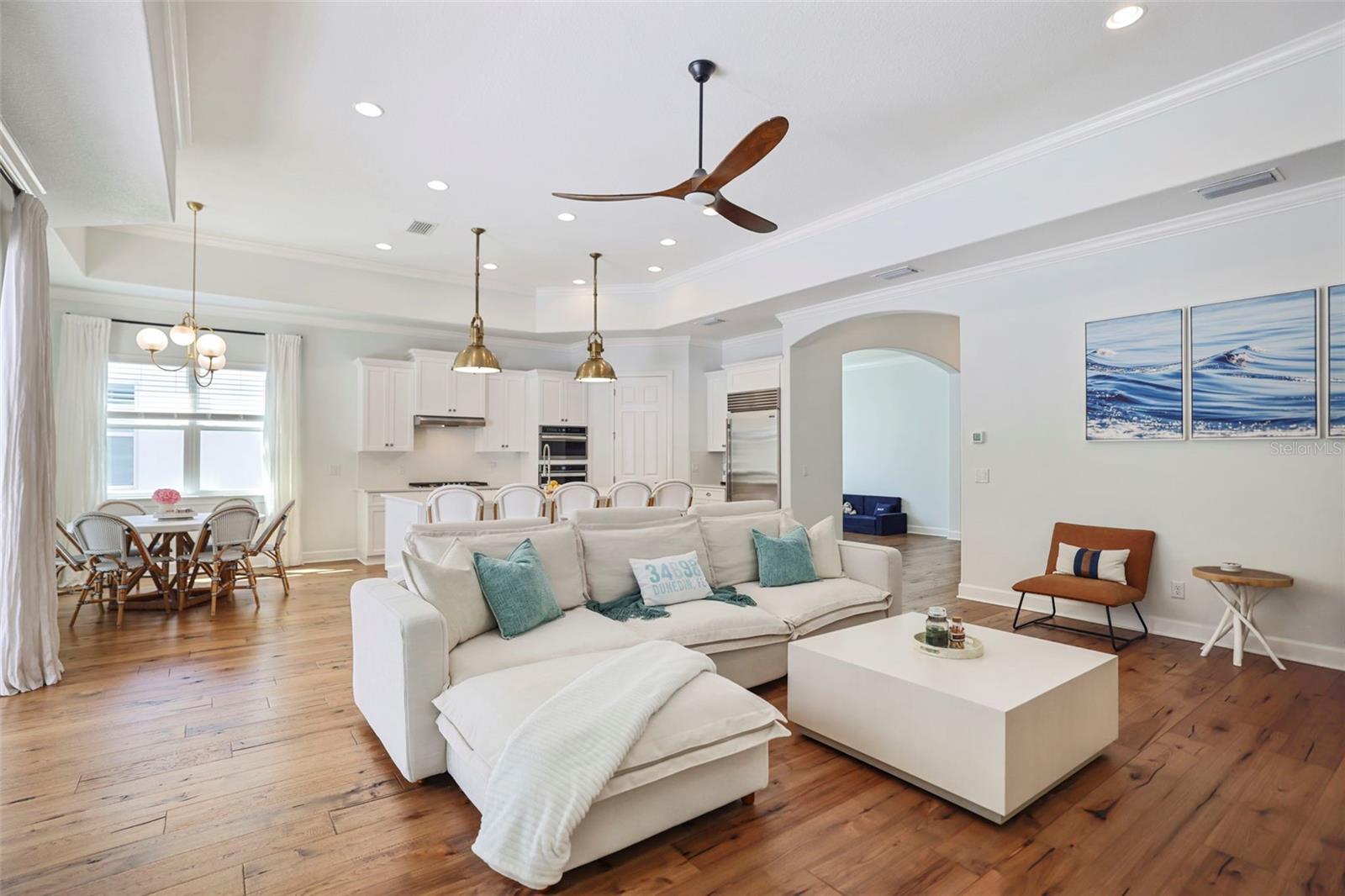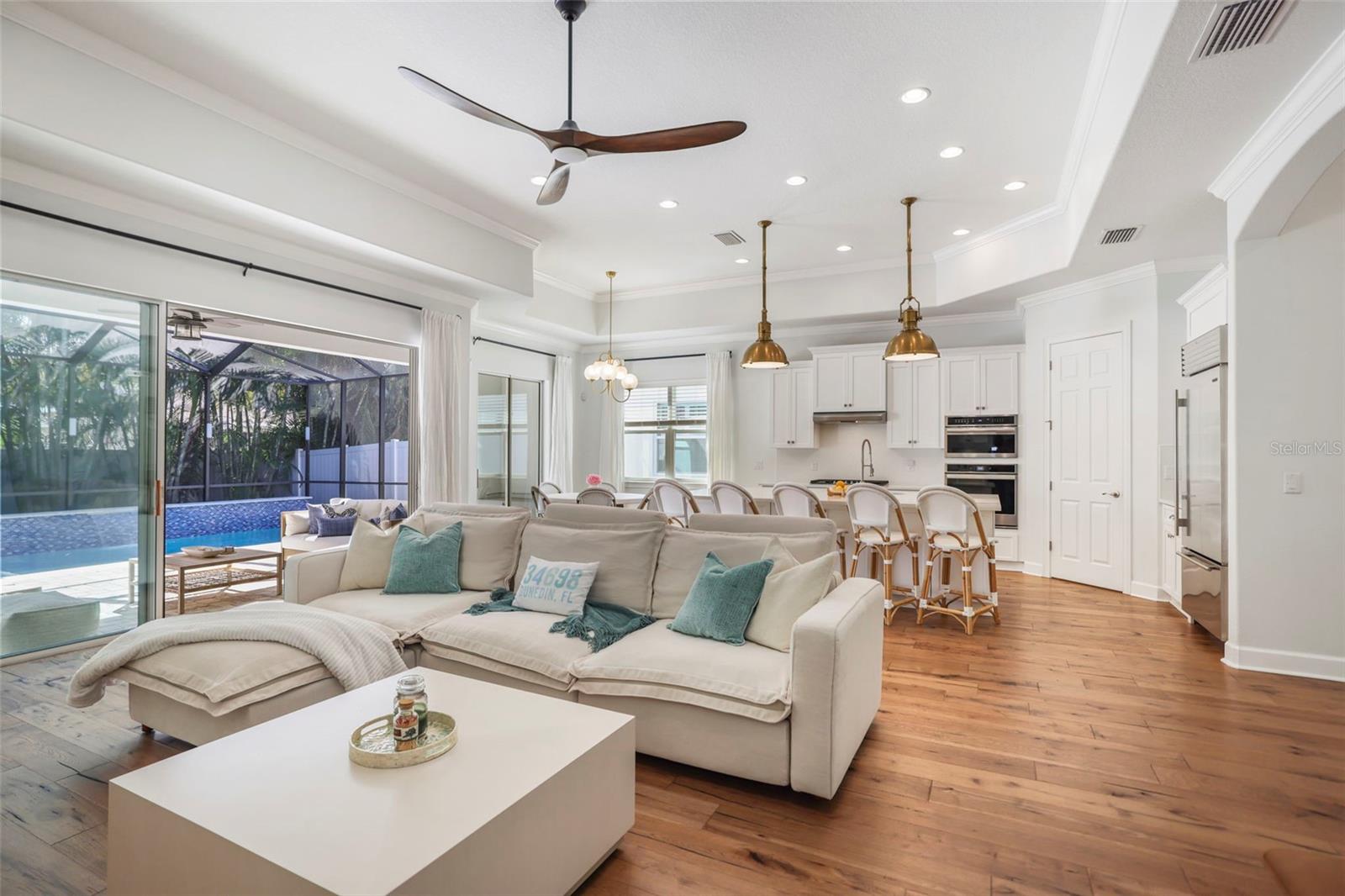 Ceiling Fans(s), Crown Molding, High Ceilings, In Wall Pest System, Kitchen/Family Room Combo, Open Floorplan, Stone Counters, Tray Ceiling(s), Walk-In Closet(s)