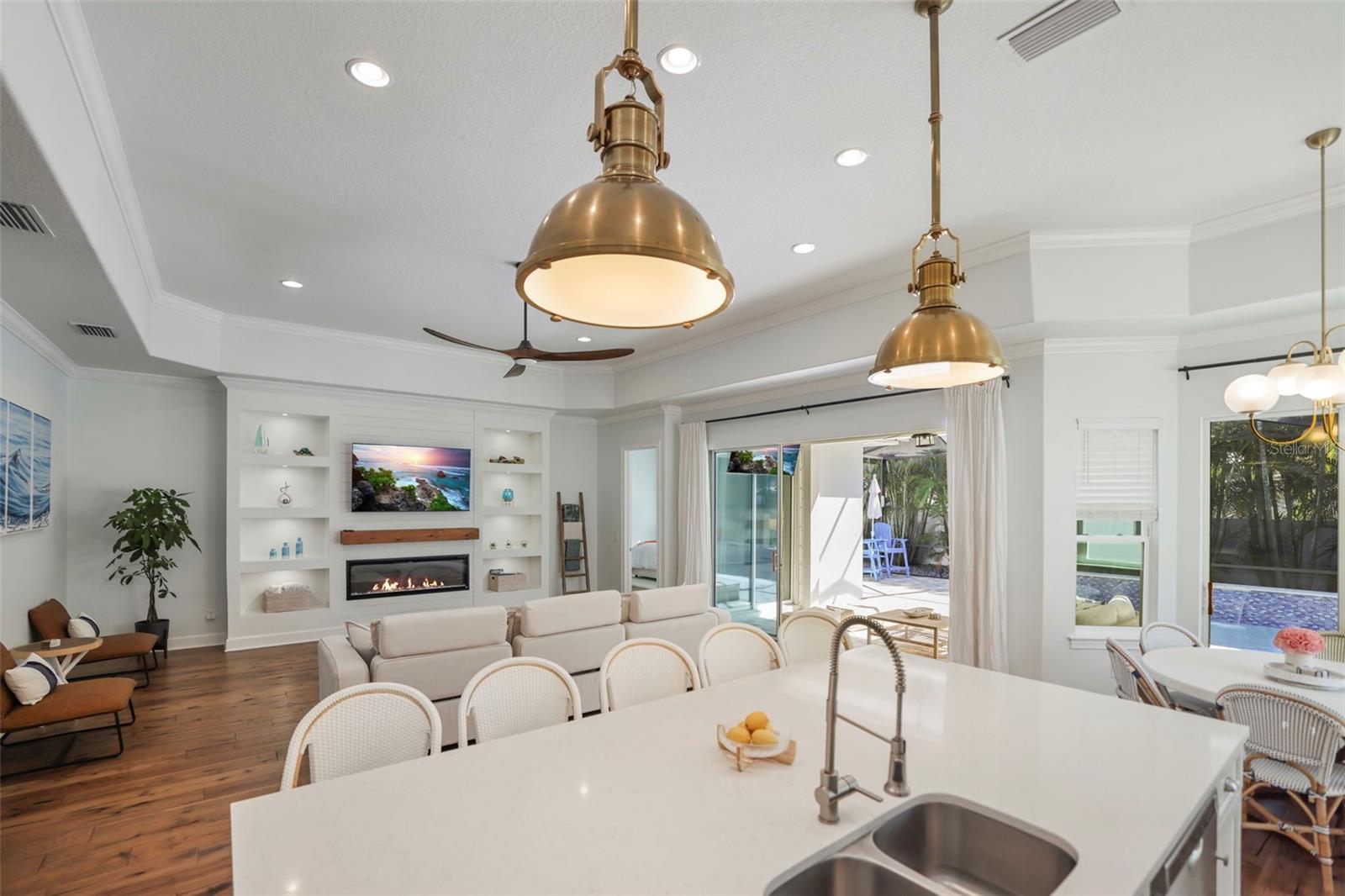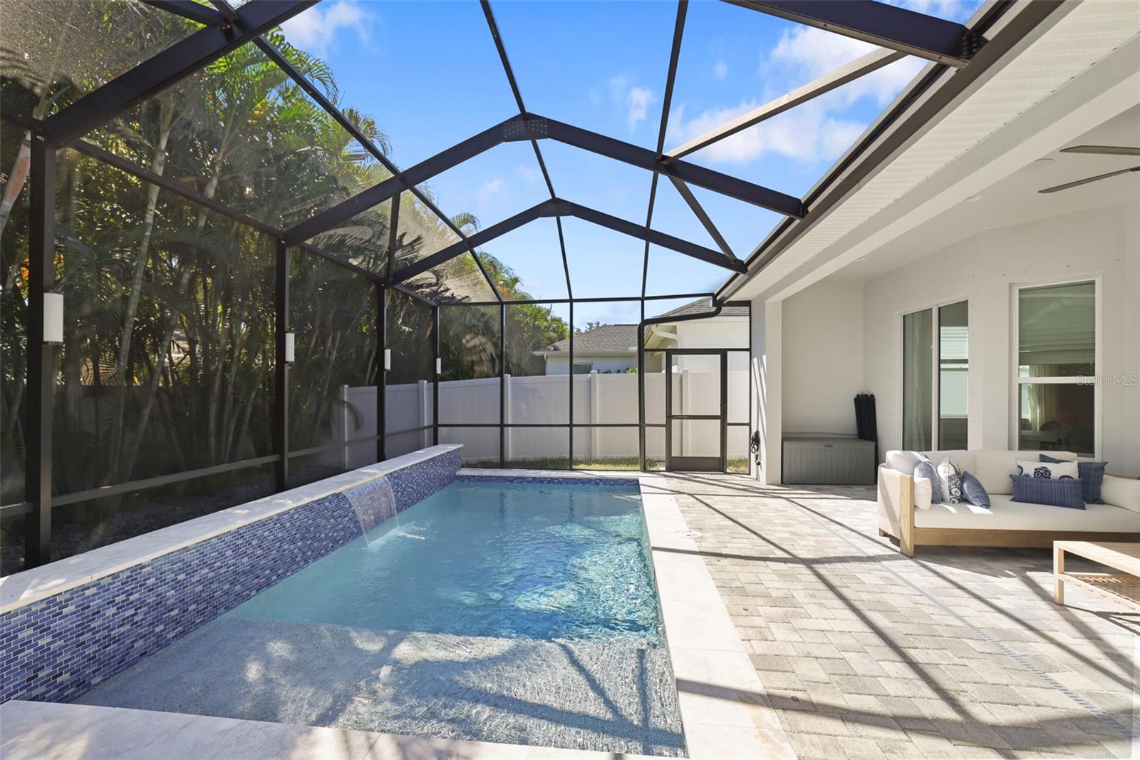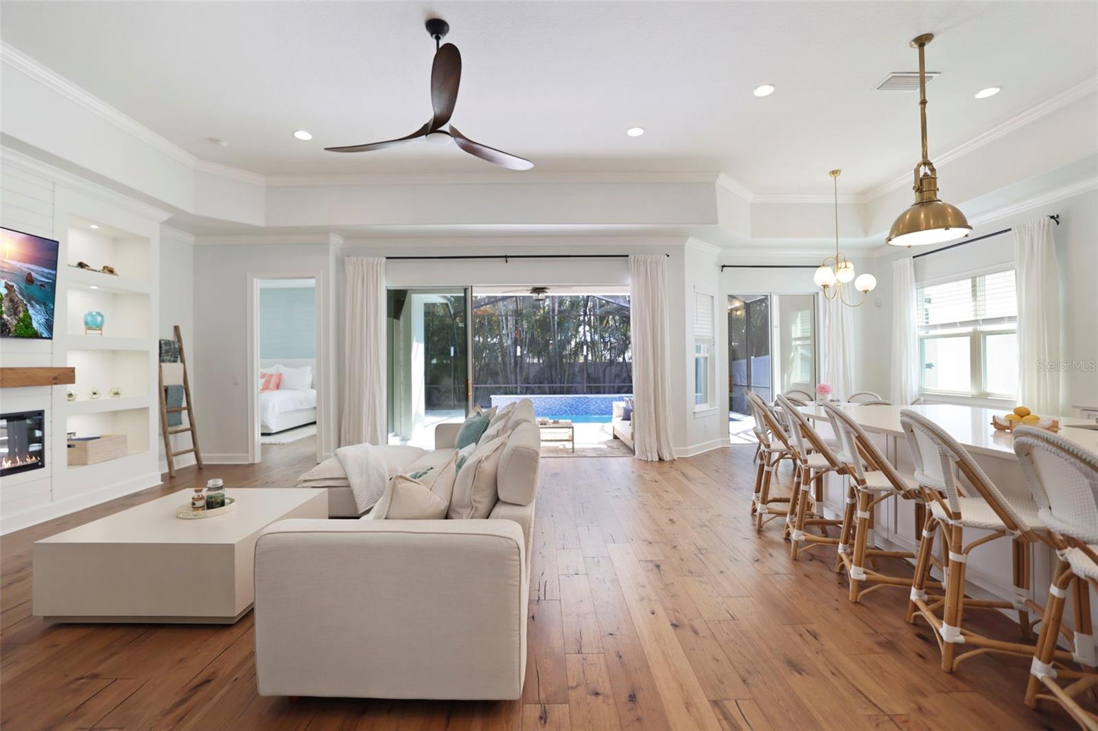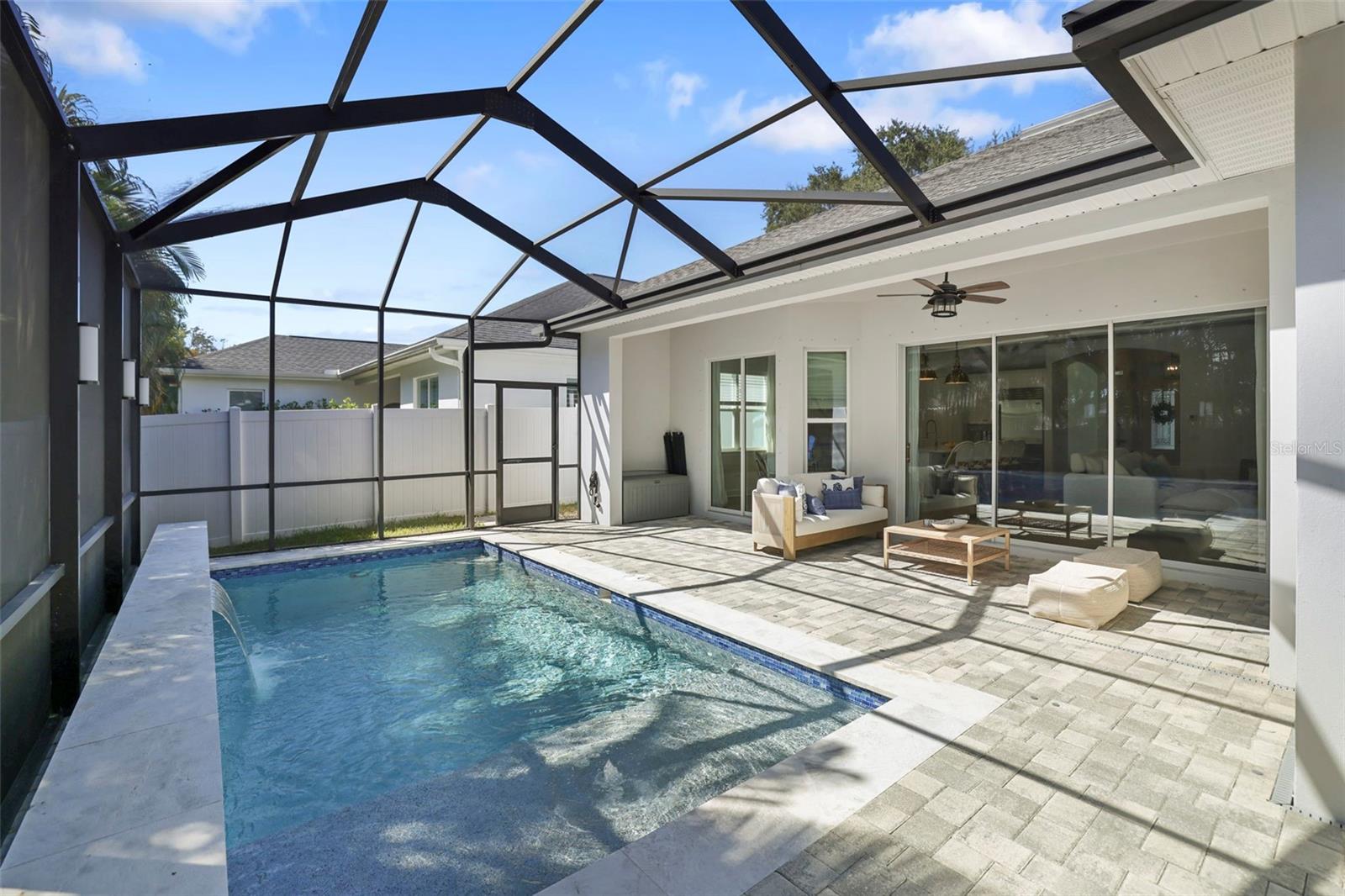 Under contract-accepting backup offers. Luxury, lifestyle, and lasting quality come together in this breathtaking newer construction block pool home in the exclusive gated community of Dunedin Cove. From the moment you arrive, you’ll feel the difference. This home features 4 bedrooms, 3 full baths. A brick paver driveway and manicured landscaping set the stage, leading to grand double entry doors that open into a dramatic foyer with soaring ceilings and a sense of elegance that carries throughout the home. Inside, every detail has been crafted with sophistication—from engineered hardwood floors and crown molding to walls of natural light and soft recessed lighting. The open layout flows seamlessly, anchored by a gourmet chef’s kitchen with quartz countertops, 42-inch shaker cabinetry, Sub-Zero refrigerator, and an oversized island that’s as functional as it is stunning. The adjoining great room features custom built-in shelving and a sleek electric fireplace, offering both warmth and style. The owner’s suite is a retreat of its own, complete with two designer walk-in closets and a spa-worthy bath with quartz counters, a deep garden tub, and a separate shower. Sliding doors reveal the ultimate outdoor escape: a brand-new saltwater heated pool with shimmering finishes, framed by a screened lanai. Whether hosting lively gatherings or enjoying peaceful mornings, this private oasis is designed for year-round enjoyment. Three additional bedrooms provide flexibility for family, guests, or office space, while upgrades such as radiant barrier insulation, natural gas with pre-plumbing, a Tesla wall charger, and a whole-house generator add modern comfort and peace of mind. A spacious three-car garage completes the home. Not in a flood zone and nestled in a golf cart–friendly gated enclave, this property is just minutes from Downtown Dunedin’s waterfront parks, shops, craft breweries, and festivals—with award-winning beaches and Tampa International Airport only a short drive away. This isn’t just a home—it’s a lifestyle masterpiece designed for those who value luxury, quality, and the very best of Florida living.