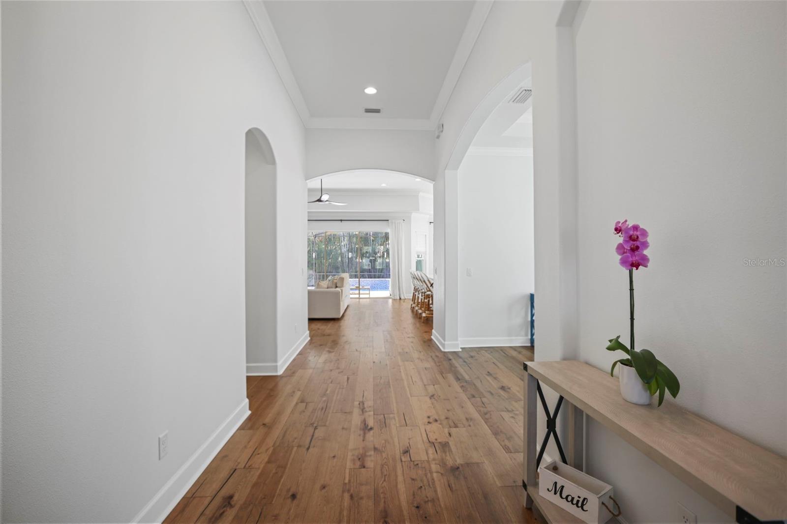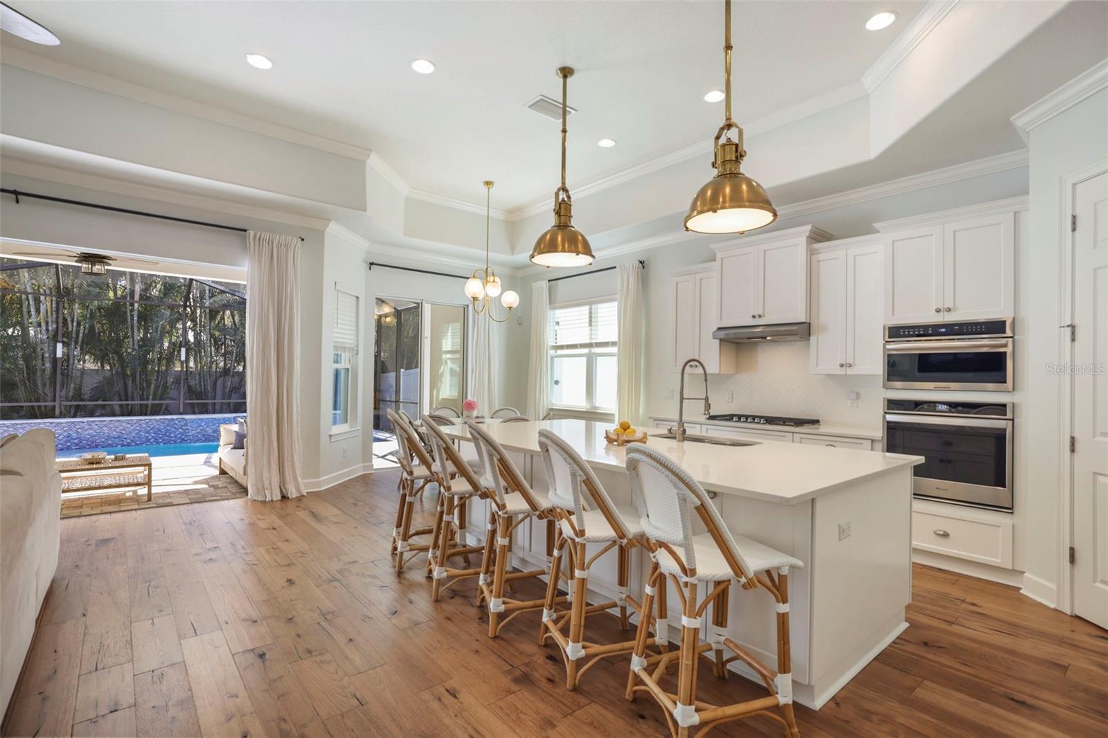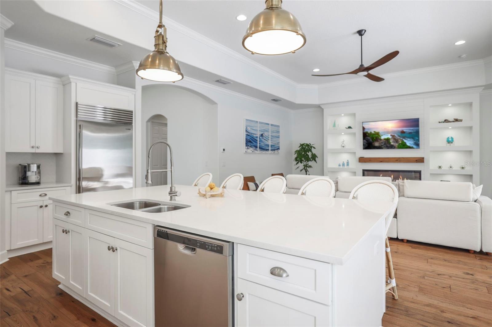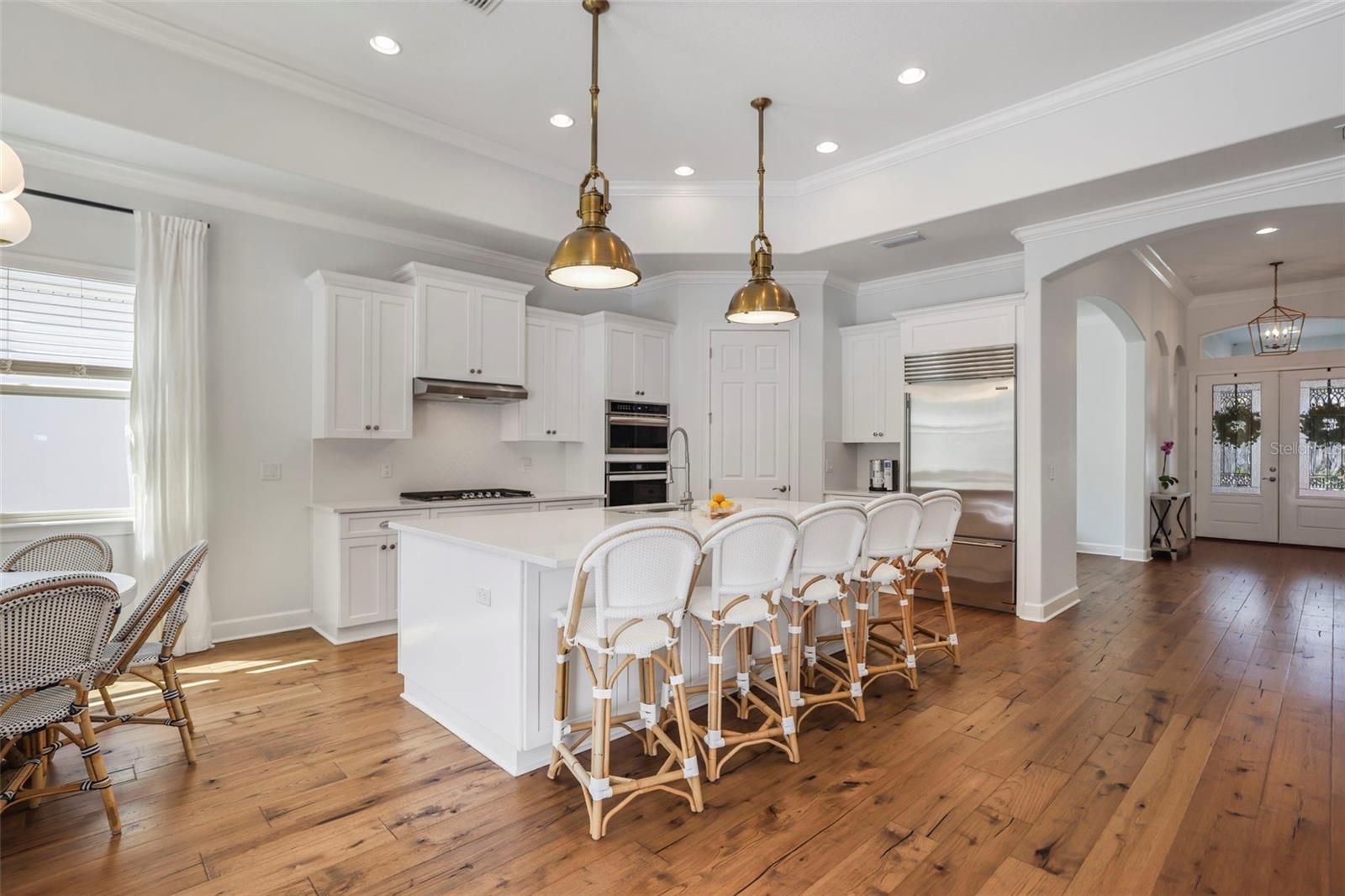 Under contract-accepting backup offers. Luxury, lifestyle, and lasting quality come together in this breathtaking newer construction block pool home in the exclusive gated community of Dunedin Cove. From the moment you arrive, you’ll feel the difference. This home features 4 bedrooms, 3 full baths. A brick paver driveway and manicured landscaping set the stage, leading to grand double entry doors that open into a dramatic foyer with soaring ceilings and a sense of elegance that carries throughout the home. Inside, every detail has been crafted with sophistication—from engineered hardwood floors and crown molding to walls of natural light and soft recessed lighting. The open layout flows seamlessly, anchored by a gourmet chef’s kitchen with quartz countertops, 42-inch shaker cabinetry, Sub-Zero refrigerator, and an oversized island that’s as functional as it is stunning. The adjoining great room features custom built-in shelving and a sleek electric fireplace, offering both warmth and style. The owner’s suite is a retreat of its own, complete with two designer walk-in closets and a spa-worthy bath with quartz counters, a deep garden tub, and a separate shower. Sliding doors reveal the ultimate outdoor escape: a brand-new saltwater heated pool with shimmering finishes, framed by a screened lanai. Whether hosting lively gatherings or enjoying peaceful mornings, this private oasis is designed for year-round enjoyment. Three additional bedrooms provide flexibility for family, guests, or office space, while upgrades such as radiant barrier insulation, natural gas with pre-plumbing, a Tesla wall charger, and a whole-house generator add modern comfort and peace of mind. A spacious three-car garage completes the home. Not in a flood zone and nestled in a golf cart–friendly gated enclave, this property is just minutes from Downtown Dunedin’s waterfront parks, shops, craft breweries, and festivals—with award-winning beaches and Tampa International Airport only a short drive away. This isn’t just a home—it’s a lifestyle masterpiece designed for those who value luxury, quality, and the very best of Florida living.