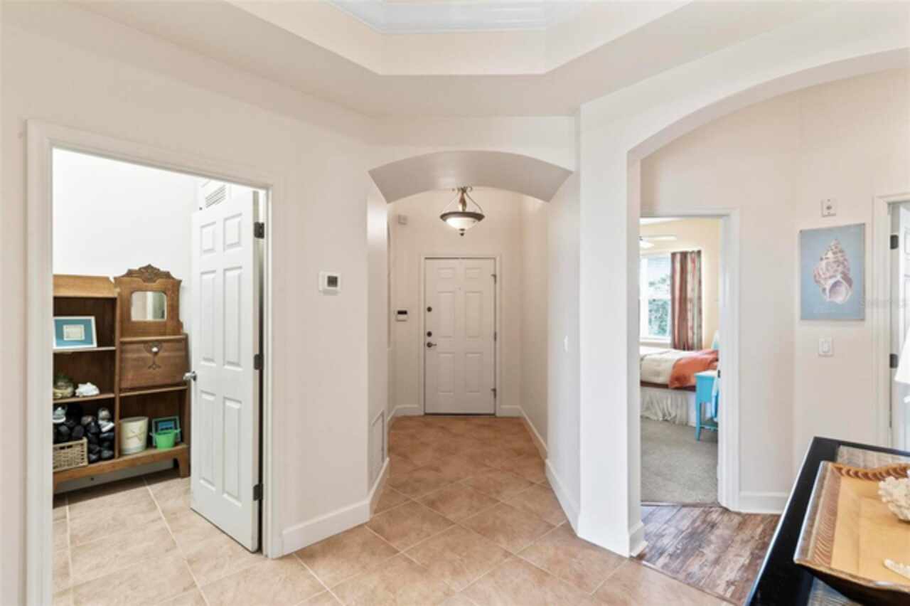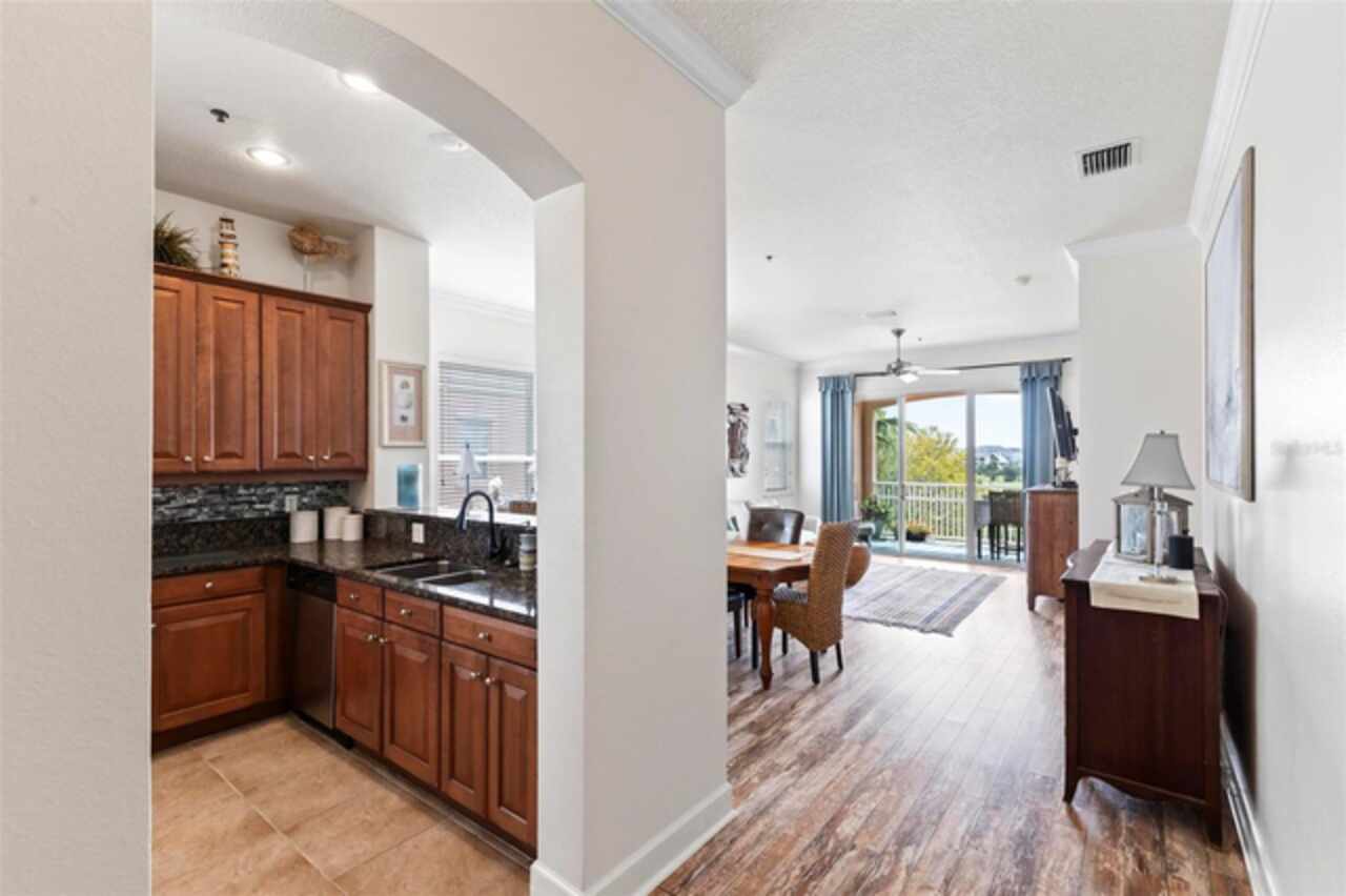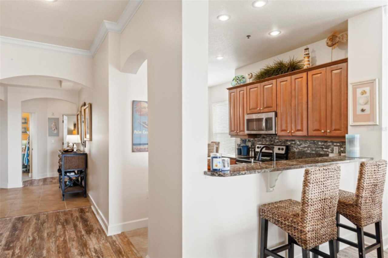 This beautiful 3rd-floor villa at Hammock Beach Resort offers the perfect blend of comfort, style, and resort living. This end unit with a myriad of windows, features 3 bedrooms, 2 bathrooms and an abundance of natural sunlight. Tile foyer, elegant archways, and built-in arched wall niches as soon as you enter. Luxury vinyl flooring flows through the kitchen and main living area, where crown molding adds a touch of sophistication. The kitchen boasts granite countertops, stainless steel appliances, and an eat-in nook with windows that maintain the light and bright ambience. The dining area seamlessly connects to the spacious living room, creating an open and inviting space. Step through the sliding doors onto your covered patio, where you’ll enjoy views of the Atlantic Ocean and the Jack Nicklaus-designed Ocean Course. The primary suite is a relaxing retreat with plush carpet, a walk-in closet, and a spa-like bathroom featuring a walk-in tile shower, soaking tub, and dual vanities. Two guest bedrooms and a full guest bath are located at the front of the unit, offering privacy and convenience for visitors. A spacious laundry room provides extra storage and functionality. As part of Hammock Beach Resort, owners and guests have access to world-class amenities, including two championship golf courses, pools, a fitness center, on-site dining, and more. Whether you're seeking a vacation home with rental income potential or a low-maintenance investment in a premier coastal destination, this villa delivers the best of resort living.