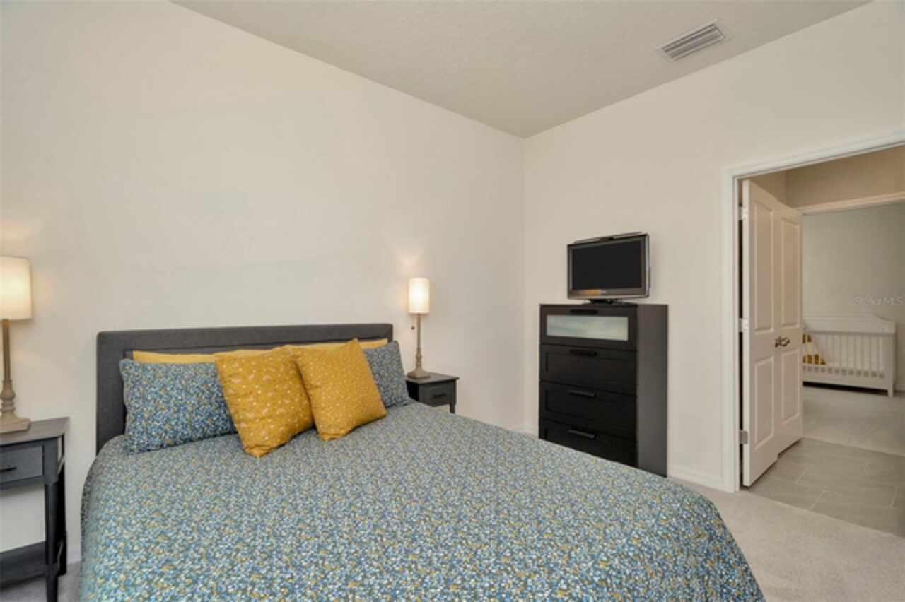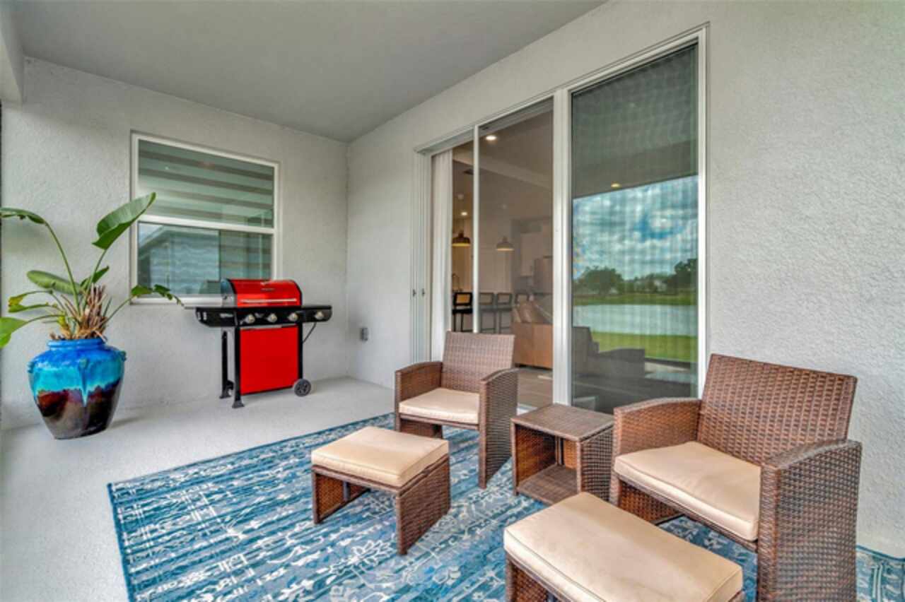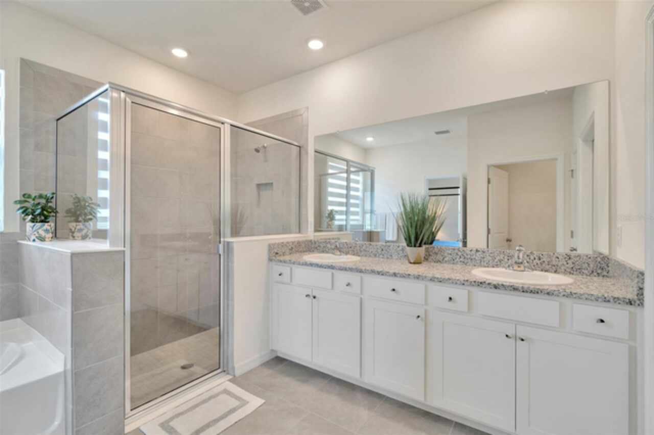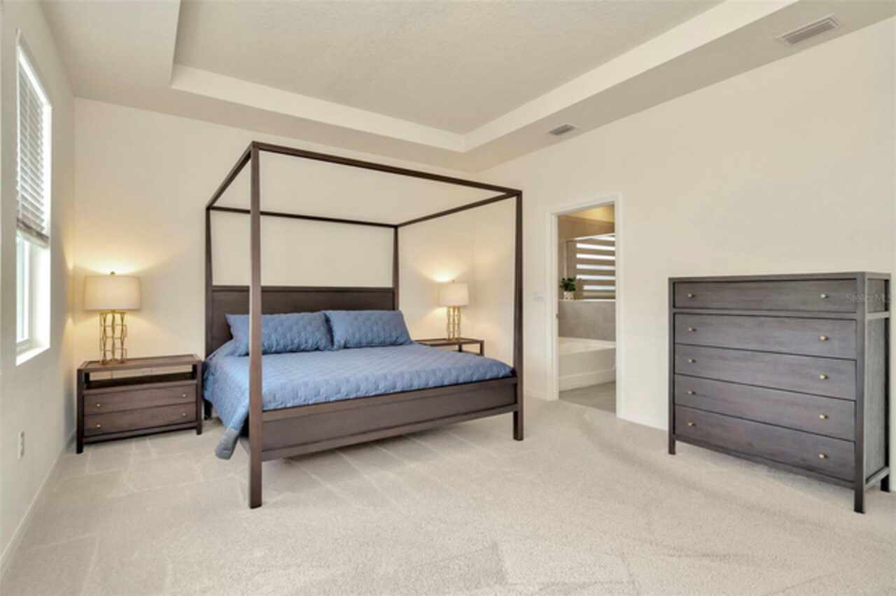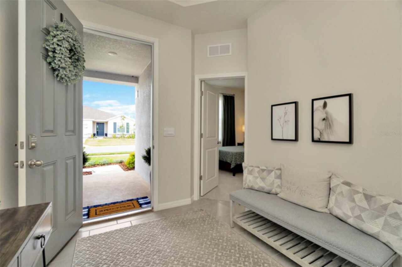 SELLER OFFERING UP TO $10K IN CONCESSIONS WITH APPROVED OFFER!! NEW EXTERIOR PAINTING JUST COMPLETED!! Do you really want a "NAKED" New Build OR would you prefer a beautifully maintained turn-key home that has been DRESSED with custom blinds, window treatments, cabinet handles, interior eggshell paint, pendant lighting and so much more! This home is NOT in a flood zone. This immaculate and spacious one-level Camden floor plan with in-law suite on a premium water view lot offers nearly 2, 800 sq feet of modern multi-generational or single family living. Featuring 4 bedrooms, 3.5 bathrooms and a 3-car garage. This home boasts an immense amount of natural light in the main living areas with tall ceilings and an open floor plan. The primary bedroom features tray ceilings, an ensuite bath with a soaking tub, separate shower, dual sinks, toilet closet, and a spacious walk-in closet. More updates you won't find from the builder include a Solar powered Water Softener, Diamond Profile Concrete garage floor, most main areas and two bathrooms re-painted with neutral SW eggshell paint, pendant lighting over kitchen island, window treatments throughout, and screened lanai. You won't get these upgrades in a new build which will save you money at move-in. Bedrooms 2 & 3 are near the front of the home and share a private Jack N Jill bathroom. Home features a 3-way split bedroom floor plan. Large fourth bedroom is part of the next-gen area and features custom walk-in closet, ensuite bathroom with walk-in shower, a separate living area, kitchenette with upper and lower soft-close cabinets, quartz countertops, full size sink, and full size refrigerator. Perfect for an in-law suite! Multi-slide sliding doors in the great room open up to a covered & screened lanai with upgraded no-see-um 20/20 screening and picture view of the water...Perfect for watching beautiful sunrises over the water!! The main kitchen boasts a large island, walk-in pantry, new faucet, and newer appliances. The irrigation system for lawn and landscaping is set up through the economical reclaimed water system. Home is located just down the street from the Amenity Center featuring a lap pool & a resort style pool with water slide, 24-hour fitness center, playground, basketball court, and dog park!! Pickleball courts coming soon in next phase. Located in a quiet and serene neighborhood with walking trails, this home is part of an active community along with great access to I-4, making it an easy commute to Tampa, Orlando, and Lakeland. Transferable structural home warranty.