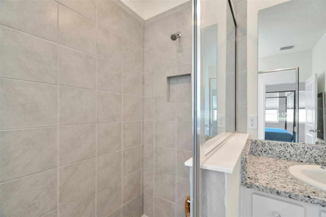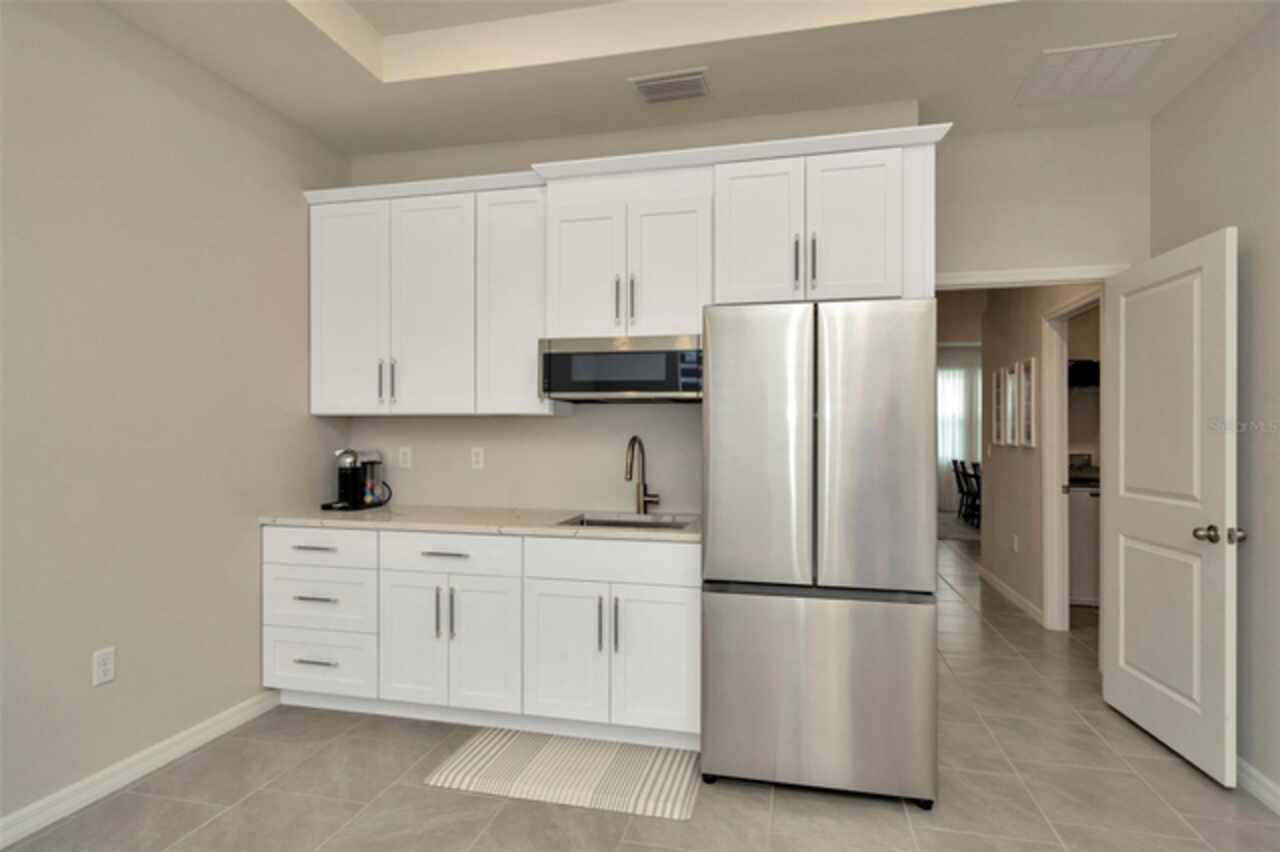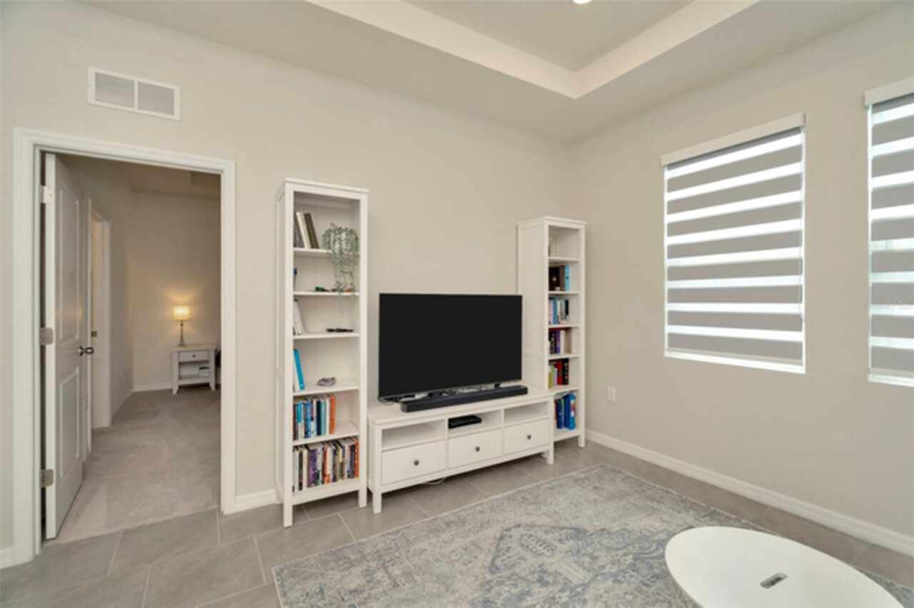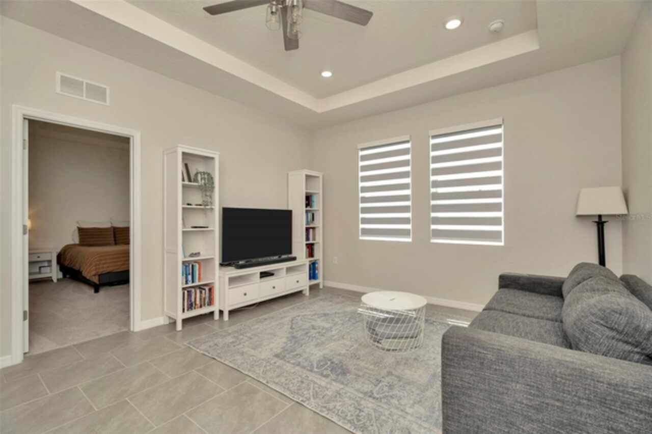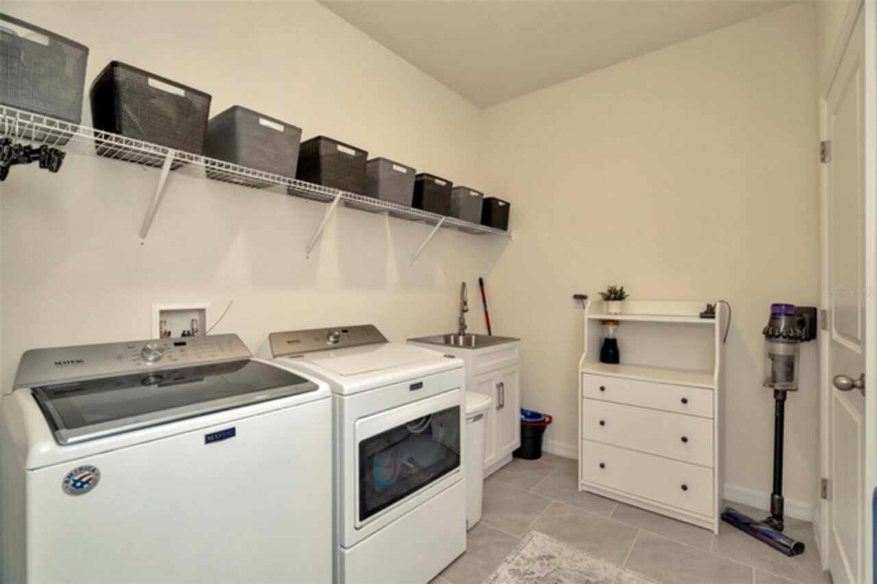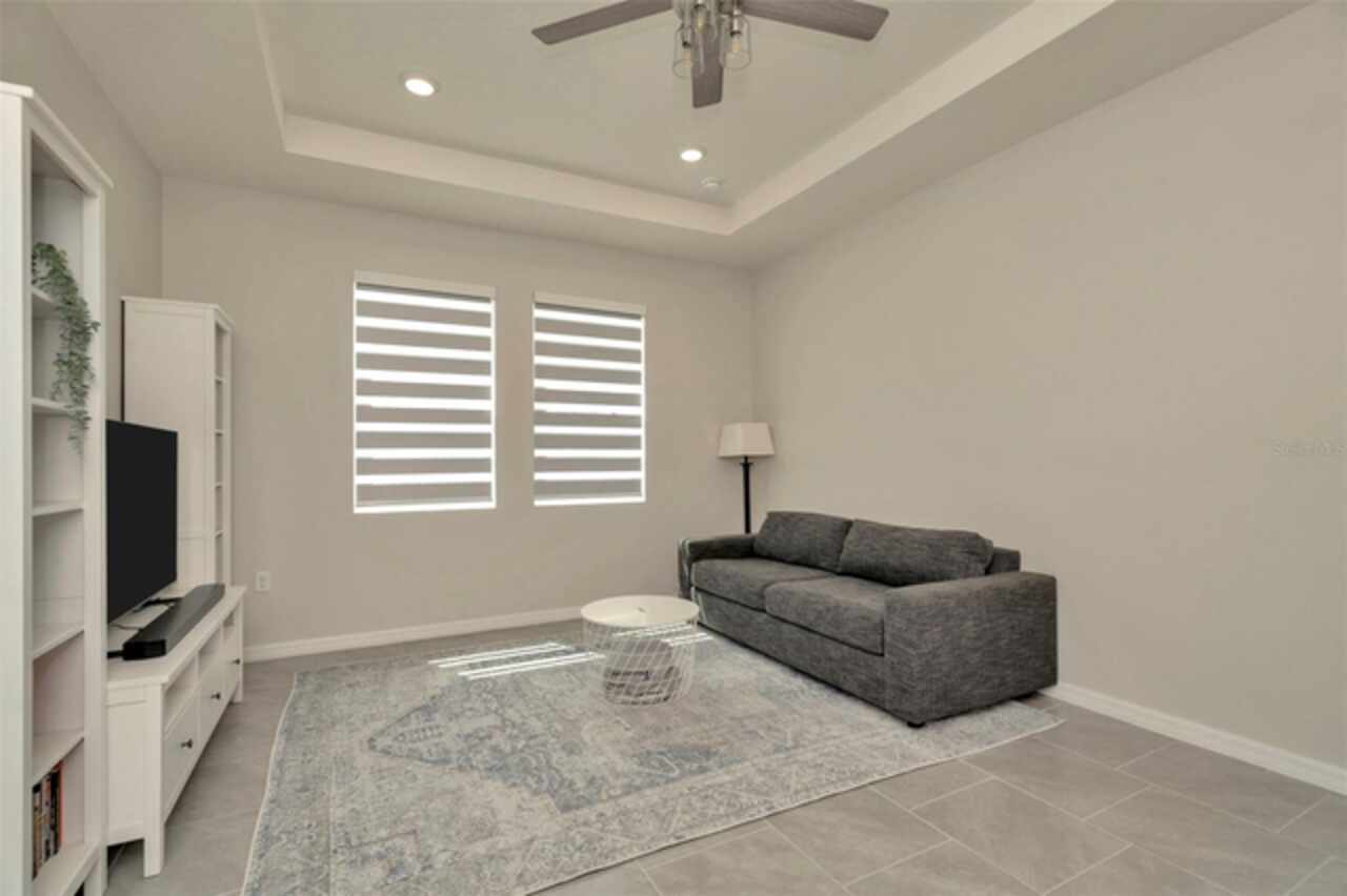 SELLER OFFERING UP TO $10K IN CONCESSIONS WITH APPROVED OFFER!! NEW EXTERIOR PAINTING JUST COMPLETED!! Do you really want a "NAKED" New Build OR would you prefer a beautifully maintained turn-key home that has been DRESSED with custom blinds, window treatments, cabinet handles, interior eggshell paint, pendant lighting and so much more! This home is NOT in a flood zone. This immaculate and spacious one-level Camden floor plan with in-law suite on a premium water view lot offers nearly 2, 800 sq feet of modern multi-generational or single family living. Featuring 4 bedrooms, 3.5 bathrooms and a 3-car garage. This home boasts an immense amount of natural light in the main living areas with tall ceilings and an open floor plan. The primary bedroom features tray ceilings, an ensuite bath with a soaking tub, separate shower, dual sinks, toilet closet, and a spacious walk-in closet. More updates you won't find from the builder include a Solar powered Water Softener, Diamond Profile Concrete garage floor, most main areas and two bathrooms re-painted with neutral SW eggshell paint, pendant lighting over kitchen island, window treatments throughout, and screened lanai. You won't get these upgrades in a new build which will save you money at move-in. Bedrooms 2 & 3 are near the front of the home and share a private Jack N Jill bathroom. Home features a 3-way split bedroom floor plan. Large fourth bedroom is part of the next-gen area and features custom walk-in closet, ensuite bathroom with walk-in shower, a separate living area, kitchenette with upper and lower soft-close cabinets, quartz countertops, full size sink, and full size refrigerator. Perfect for an in-law suite! Multi-slide sliding doors in the great room open up to a covered & screened lanai with upgraded no-see-um 20/20 screening and picture view of the water...Perfect for watching beautiful sunrises over the water!! The main kitchen boasts a large island, walk-in pantry, new faucet, and newer appliances. The irrigation system for lawn and landscaping is set up through the economical reclaimed water system. Home is located just down the street from the Amenity Center featuring a lap pool & a resort style pool with water slide, 24-hour fitness center, playground, basketball court, and dog park!! Pickleball courts coming soon in next phase. Located in a quiet and serene neighborhood with walking trails, this home is part of an active community along with great access to I-4, making it an easy commute to Tampa, Orlando, and Lakeland. Transferable structural home warranty.