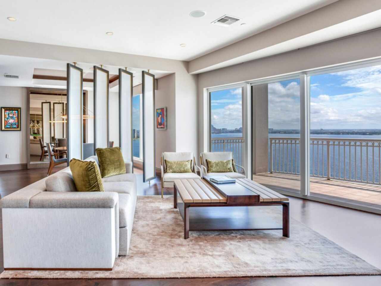 **Electric remained ON and no flooding during recent storm.**This Alagon residence is a whole floor at almost 7, 000 sqft. It has 360-degree views of the water and the city from East Sunrise Bay views to West Sunset views, as well as, North Downtown & water views and South water views. There are 6 balconies wrapped around the front. The unit itself has high-end quality finishes and design. It is a smart home with remote shades, lighting, updated appliances, wood cabinets, and stone countertops. One must see to have the premium experience; the unit is light and airy and can be contemporary or traditional. With a private, two-elevator foyer that is blocked off, that opens with double doors to the exquisite grand entrance. It looks out to the Bay water views with a view of the city. The living and dining rooms are all facing the water and open to a terrace. The gourmet kitchen is large enough for all types of entertainment which opens to the comfortable family room and eat-in area of the kitchen. Again, the water views are all-encompassing. Moving on to the office with Downtown water views which will be a delight to work in. The master suite on the North side of the building has a private sitting room with Downtown water views where you can also catch sunset. The two walk-in closets are on one side of the master next to the huge master bath. The neat thing about the master bedroom is there is a third closet that could be opened to another bedroom and bathroom which would be the 5th bedroom. There are 3 bedrooms and 3 baths all looking to the South and West open Bay, and a living room on the South side of the building. There is also a guest laundry room with a dog or drip shower for utility use. Now for the media room, it’s not just a media room with comfortable chairs to sleep in, but also an entertainment bar and gaming area – again looking out to the open bay with a terrace. The wine room is outside of the game/media room. The unit is on the 20th floor which is incomparable to the next. It has 4 parking spots and storage. The condo has 4 AC units, and 2 tankless water heaters. This, in addition to the amenities which include a rec room, with a kitchen and bar, a full theater, 2 guest suites, a manager, a 24-hour guard, billiards, a conference room, a two-story gated lobby, a gym, pool, spa, and outside dining. The Alagon has easy access to airports, beaches, shopping, school, and Disney. All these qualities make this building the most desirable on Bayshore.