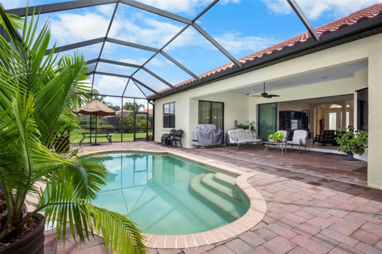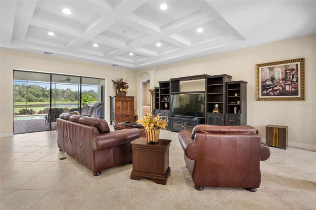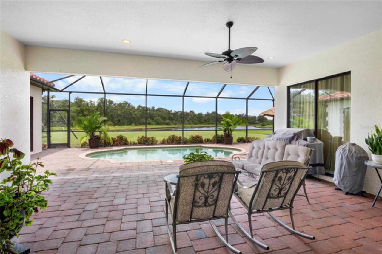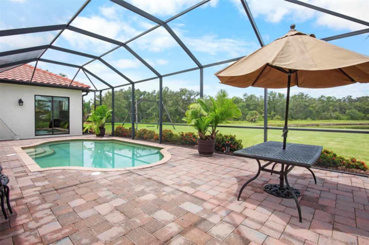 Beautiful home located in the highly sought after neighborhood of Twin Rivers. If you are looking for a large home with plenty of greenspace, look no further. This home has over 3400 square feet and sits on an acre of land. This is a rare find in Parrish. This home has 3 bedrooms, 3 baths with an office, playroom, AND a 19x17 bonus room. The playroom/bonus room area could be used as an in-law suite, place for all of your kids toys or for entertaining large get togethers. The uses are endless! The moment you walk through the front door, you will be amazed by the 11-foot ceilings in the great room and the view out the triple pocket slider. The gourmet kitchen overlooks the great room, which leads to the patio and pool area. The large patio has brick pavers and a saltwater pool with an electric heater. The views on the patio overlook the beautiful pond and preserve area. At night, the sunsets over the pond are breathtaking! This home also has a 4-car garage, tile roof and a brick paver driveway. Twin Rivers has a boat ramp that you can launch a small boat or kayak from and docks for fishing. You will not want to miss this home and the lovely amenities that Twin Rivers has to offer!