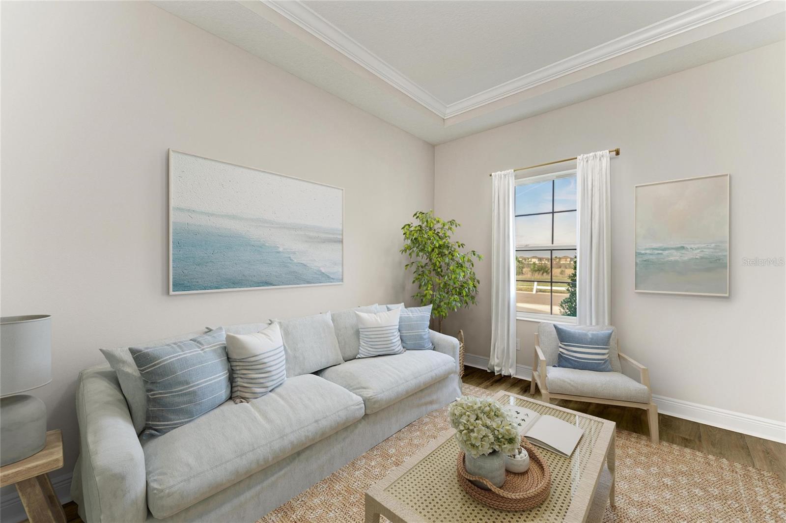 One or more photo(s) has been virtually staged. This Key West II is ready for move in! Discover the Key West II, a bright, airy floor plan designed for effortless indoor-outdoor living, perfectly embracing the Florida lifestyle. This stunning home welcomes you with an extended foyer that guides you seamlessly into expansive open living areas, all illuminated by grand 12-foot ceilings. The heart of this home is the gourmet kitchen, centered around a large island. It features elegant Maddox Harbor cabinets, pristine Frost Whte MSI Quartz countertops, and durable Nutmeg LVP flooring, creating a beautiful and functional space for everyday life and entertaining. The common living areas, which include a versatile den and grand room, provide generous space for relaxation, while the dedicated dining room is ideal for both elegant dinners and casual gatherings. From the main living space, transition effortlessly to your oversized covered lanai, an ideal extension of your home designed for extensive outdoor enjoyment and relaxation. The private owner’s retreat on the lower level offers a true sanctuary, complete with a large, spa-like bathroom and an oversized walk-in closet. Also downstairs, you will find two additional bedrooms and a shared bathroom, perfect for family or guests. The Key West II further enhances its versatility with an upstairs area featuring a fourth bedroom, a full bath, and a bonus room, creating an ideal private oasis for extended family, guests, or a dedicated zone for play or work. This particular home also includes upgraded options such as an additional bonus room, a convenient pool bath, and a fifth bedroom, providing even more space and functionality for your life. Listing Price amount for this Pending Sale includes Design and Structural Options.
