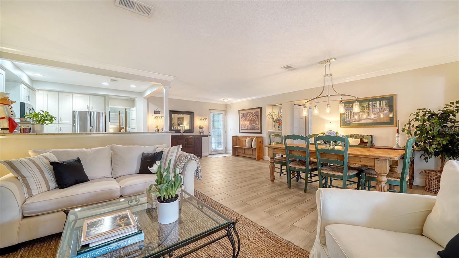 Crown Molding, Living Room/Dining Room Combo, Solid Surface Counters, Stone Counters, Window Treatments
