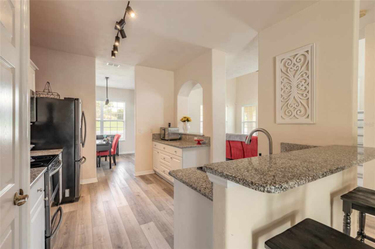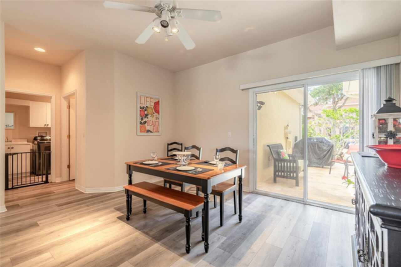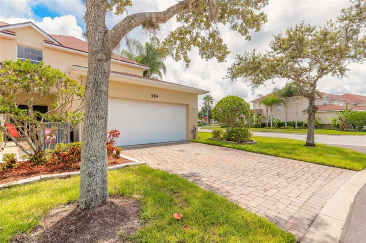 Welcome to your new home in Venetian Bay, one of the area's most sought-after master-planned communities! From the moment you step inside, you'll be greeted by soaring ceilings, upgraded luxury vinyl flooring, and a bright, open layout that feels light, airy, and inviting. The spacious living room opens seamlessly into the heart of the home, a kitchen designed to impress. Here you'll find sleek granite counters paired with crisp white cabinetry, two bar islands, a large black composite farm-style sink, and stainless steel Samsung appliances. With plenty of cabinets for storage, a formal dining area, and sliding glass doors that lead to the back patio, this kitchen and dining setup is truly perfect for gathering and entertaining. A convenient flex space downstairs offers the ideal spot for an office or reading nook, while a half bathroom and inside laundry room with cabinetry and a utility sink add practical touches. Upstairs, both bedrooms feature their own private bathrooms for comfort and privacy. The main bedroom is highlighted by elegant double doors and an upstairs nook that's perfectly sized for a desk or sitting area. Outside, the home continues to impress with a paver driveway, spacious two-car garage with additional rear parking, and low-maintenance living at its best. HOA dues cover lawn care, exterior maintenance, roof, and even pressure washing, giving you more time to enjoy the lifestyle Venetian Bay is known for. Stroll through neighborhood parks, relax at the community pool, or take advantage of optional upgrades like the fitness center, clubhouse bar, and award-winning golf course, all just minutes from your door. This townhome blends modern comfort with effortless living and resort-style amenities, making it the perfect place to call home. All information deemed accurate but cannot be guaranteed. New Roof, HVAC 5 years old, hot water heater 2025.