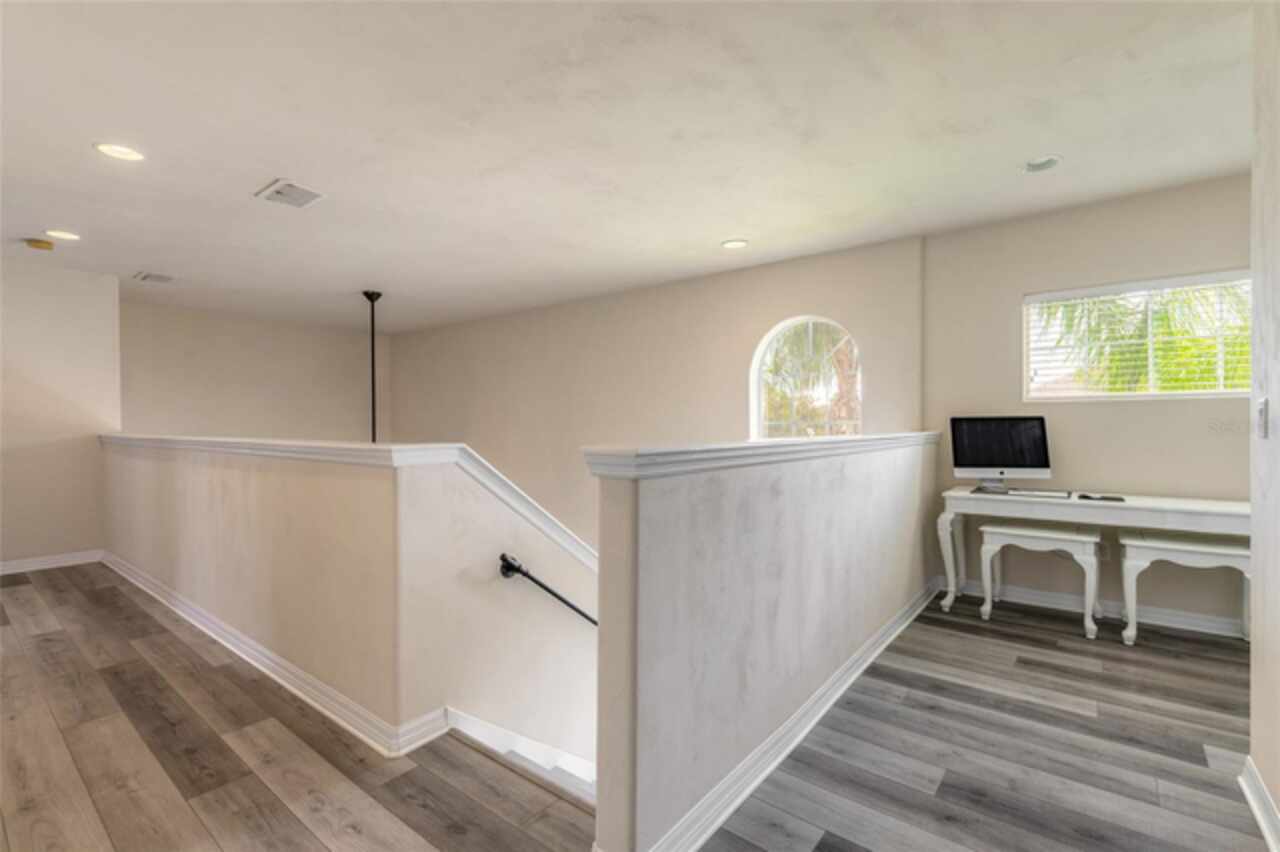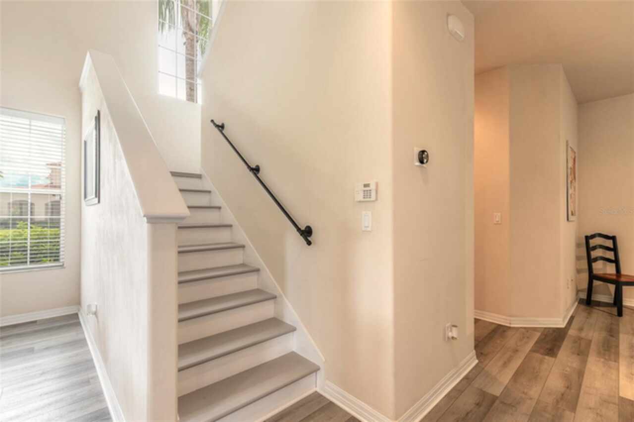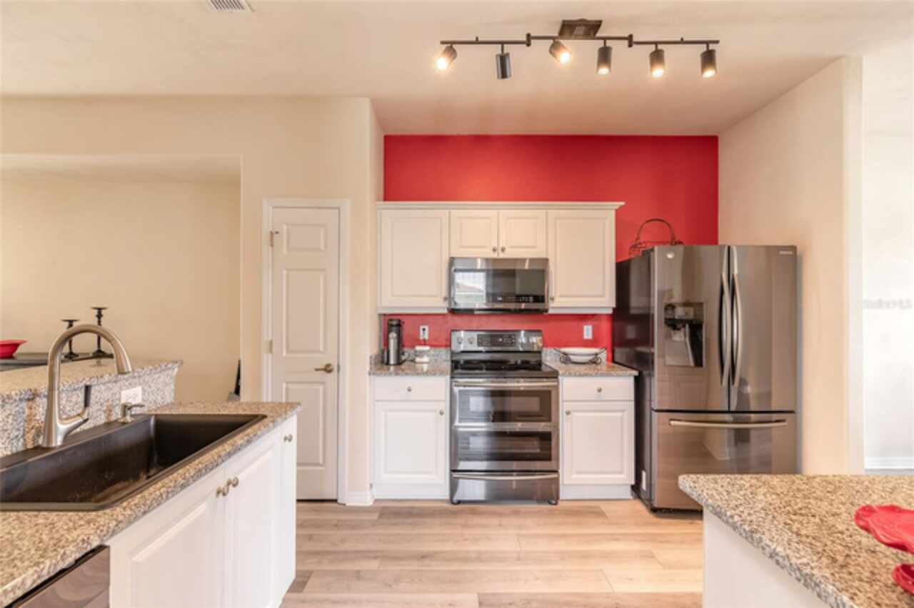 Welcome to your new home in Venetian Bay, one of the area's most sought-after master-planned communities! From the moment you step inside, you'll be greeted by soaring ceilings, upgraded luxury vinyl flooring, and a bright, open layout that feels light, airy, and inviting. The spacious living room opens seamlessly into the heart of the home, a kitchen designed to impress. Here you'll find sleek granite counters paired with crisp white cabinetry, two bar islands, a large black composite farm-style sink, and stainless steel Samsung appliances. With plenty of cabinets for storage, a formal dining area, and sliding glass doors that lead to the back patio, this kitchen and dining setup is truly perfect for gathering and entertaining. A convenient flex space downstairs offers the ideal spot for an office or reading nook, while a half bathroom and inside laundry room with cabinetry and a utility sink add practical touches. Upstairs, both bedrooms feature their own private bathrooms for comfort and privacy. The main bedroom is highlighted by elegant double doors and an upstairs nook that's perfectly sized for a desk or sitting area. Outside, the home continues to impress with a paver driveway, spacious two-car garage with additional rear parking, and low-maintenance living at its best. HOA dues cover lawn care, exterior maintenance, roof, and even pressure washing, giving you more time to enjoy the lifestyle Venetian Bay is known for. Stroll through neighborhood parks, relax at the community pool, or take advantage of optional upgrades like the fitness center, clubhouse bar, and award-winning golf course, all just minutes from your door. This townhome blends modern comfort with effortless living and resort-style amenities, making it the perfect place to call home. All information deemed accurate but cannot be guaranteed. New Roof, HVAC 5 years old, hot water heater 2025.