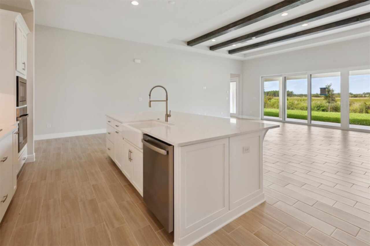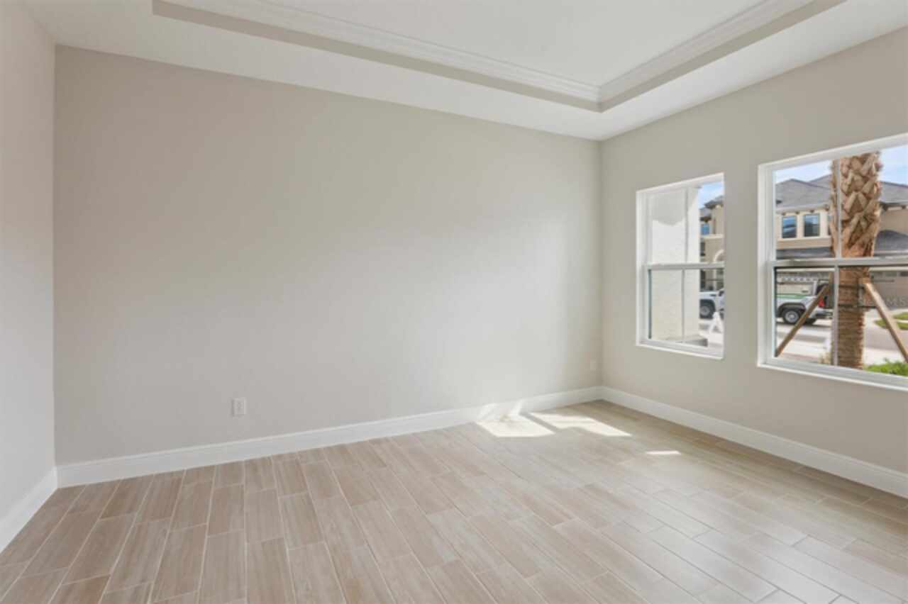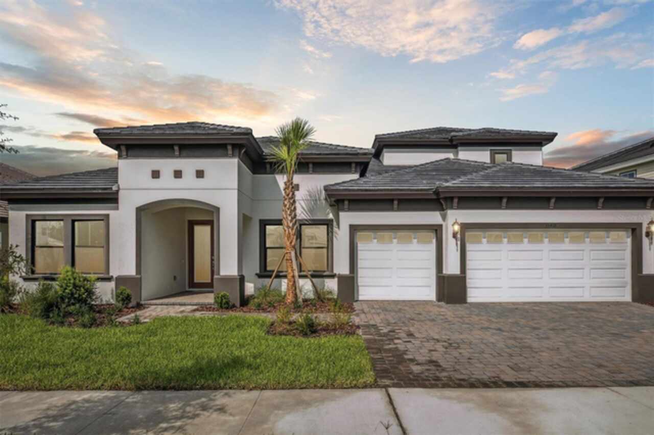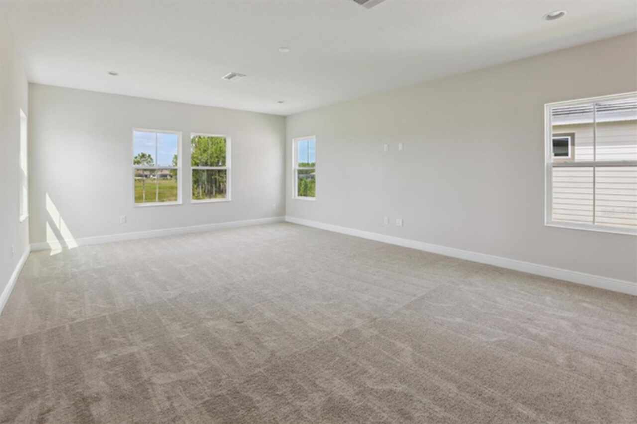 One or more photo(s) has been virtually staged. Cedar Key II - This Cedar Key II home is ready for move-in and features Sonoma Duraform Linen cabinets, Frost Whte MSI Quartz countertops, and Odyssey Renew Birch WLT flooring. The bright, breezy layout flows seamlessly from the foyer into the expansive living spaces. With impressive 12-foot ceilings in the foyer, formal dining room, grand room, and gourmet kitchen, the home offers a strikingly open atmosphere. The lavish downstairs owner's retreat has a double door entry, spacious walk-in closets, and a luxurious owner's bath. Additionally, the home includes ample secondary bedrooms, a generously sized laundry room, and expansive outdoor living space with a covered lanai. Upstairs, you'll find an extended bonus room, an extra bedroom, and a bath.