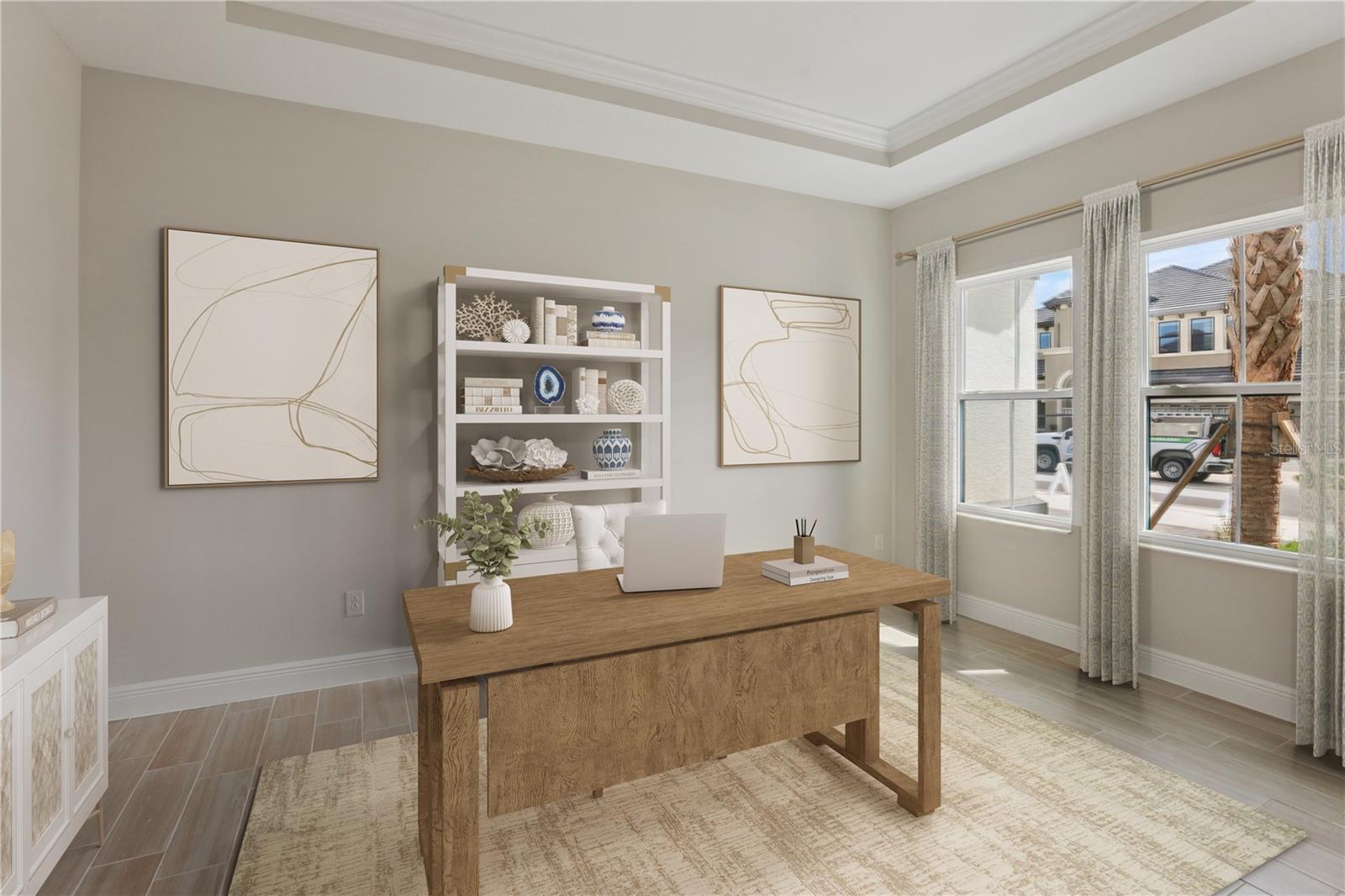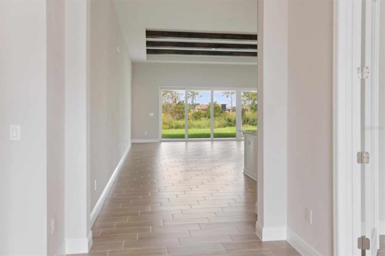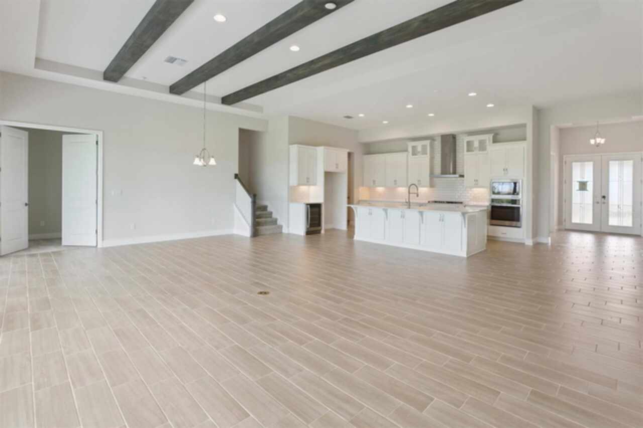 One or more photo(s) has been virtually staged. Cedar Key II - This Cedar Key II home is ready for move-in and features Sonoma Duraform Linen cabinets, Frost Whte MSI Quartz countertops, and Odyssey Renew Birch WLT flooring. The bright, breezy layout flows seamlessly from the foyer into the expansive living spaces. With impressive 12-foot ceilings in the foyer, formal dining room, grand room, and gourmet kitchen, the home offers a strikingly open atmosphere. The lavish downstairs owner's retreat has a double door entry, spacious walk-in closets, and a luxurious owner's bath. Additionally, the home includes ample secondary bedrooms, a generously sized laundry room, and expansive outdoor living space with a covered lanai. Upstairs, you'll find an extended bonus room, an extra bedroom, and a bath.
