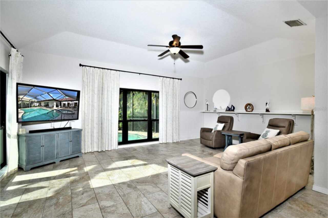 Price Improvement! Prepare to be captivated by this extraordinary Gulf Access waterfront estate, masterfully designed to deliver an unparalleled blend of elegance, comfort, and the ultimate Florida lifestyle in the prestigious Burnt Store Isles community. NEW ROOF IN 2024, IMPACT WINDOWS & DOORS, HURRICANE SHUTTERS & SCREEN + HIGH AND DRY ELEVATION with no flooding from the storms, this is the perfect home for you! From the moment you arrive, you’ll be swept away by the impeccable curb appeal, lush tropical landscaping, & the stunning Royal Poinciana tree gracing the front yard. This remarkable 3, 400 sq ft residence with 4 bedrooms all en-suite, has been meticulously maintained & thoughtfully updated with a new tile roof, soffits, gutters, LED lighting, impact windows, and fresh exterior paint, offering true peace of mind for years to come. Inside, you’ll discover a beautifully appointed Great Room floor plan that welcomes you with a grand corridor foyer, flanked by a formal dining room & an elegant home office—perfect for today’s work-from-home lifestyle. The formal living area flows effortlessly into a breathtaking gourmet kitchen, inviting breakfast nook, & a spacious family room adorned with rich wainscoting, recessed lighting, & a picture window that fills the space with natural light. This residence is offered fully furnished, inviting you to embrace a world of refined coastal luxury from day one. Each living space is tastefully appointed with high-end pieces that perfectly complement the home’s open, airy layout & serene waterfront setting. The chef’s kitchen is sure to impress featuring luxurious Quartz countertops, a designer tile backsplash, top-of-the-line stainless steel appliances, a wine cooler, an oversized island, & a convenient breakfast bar beneath a dramatic skylight. This exceptional home offers four spacious ensuite bedrooms designed for privacy, relaxation, & the ultimate in comfort. Each boasting large windows, generous closet space, & private bathrooms, providing the perfect retreat for family & guests alike. Step through elegant French doors into the luxurious owner’s suite, where you’ll wake each day to tranquil waterfront views of the saltwater canal, pool, & spa. The owner’s ensuite bath is a spa-like sanctuary, complete with an impressive 11’ x 6’ cedar walk-in closet with custom organizers, an expansive marble double vanity, abundant cabinetry, & a grand Roman shower. Step outside and indulge in your private backyard oasis, where a sparkling heated pool & spa await, with updated Pentair wireless controls, heaters, & lighting for effortless enjoyment. Boating enthusiasts will delight in the Golden 10, 000 lb. boat lift (2022) & new concrete dock, providing instant access to sailboat water with no bridges between you & the pristine waters of Charlotte Harbor & the Gulf of Mexico. A comprehensive Xfinity Alarm System & three Ring doorbell locations provide additional peace of mind & added security. Located in the highly desirable Burnt Store Isles—an exclusive Gulf Access waterfront community with a public golf course, friendly deed restrictions, a low voluntary HOA fee, & direct access to endless boating and fishing adventures—this is truly the Florida lifestyle you’ve been dreaming of. Schedule your private showing today and experience firsthand the unmatched luxury, thoughtful updates, & serene beauty of this spectacular waterfront haven.