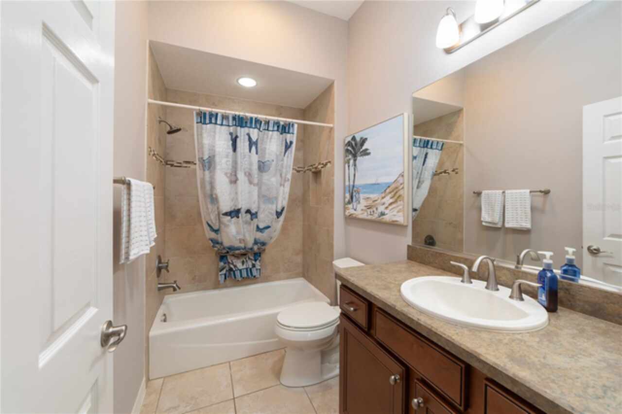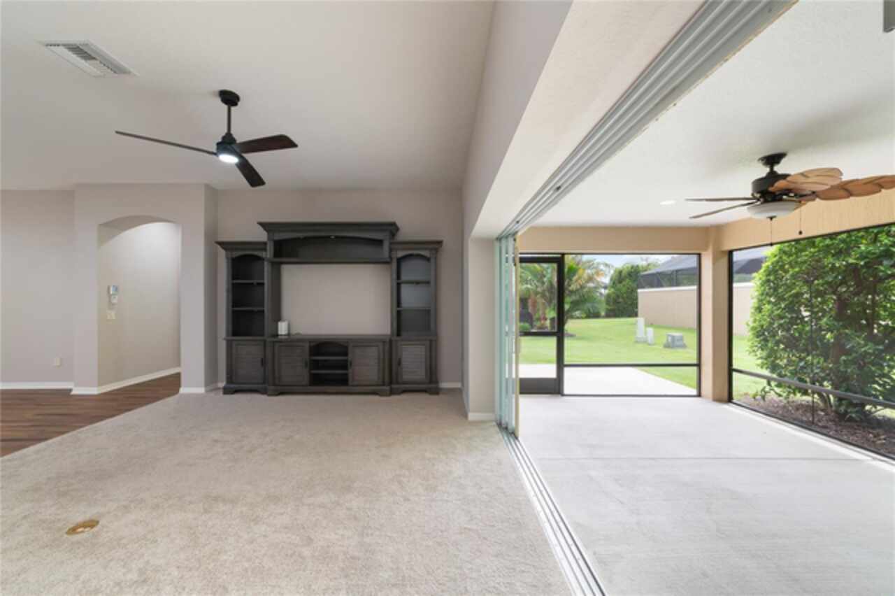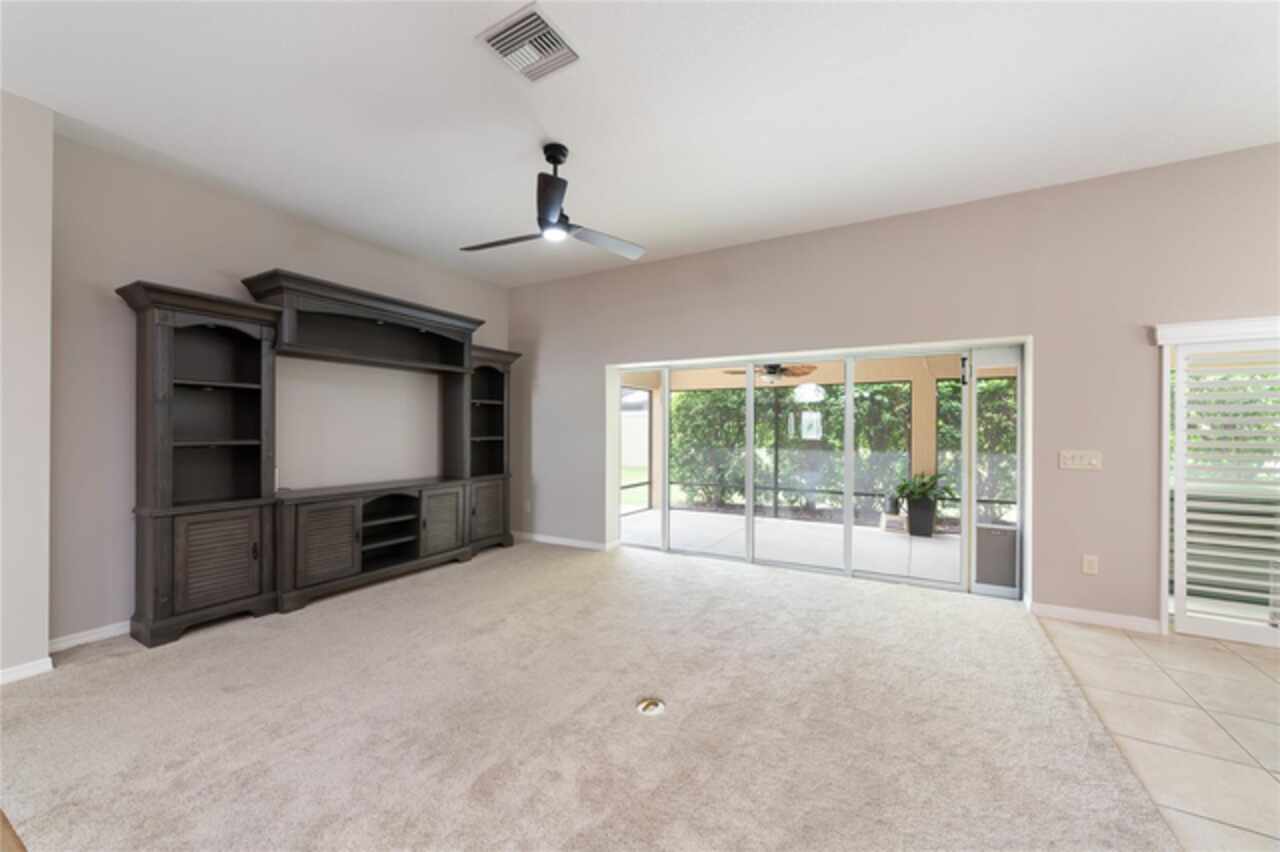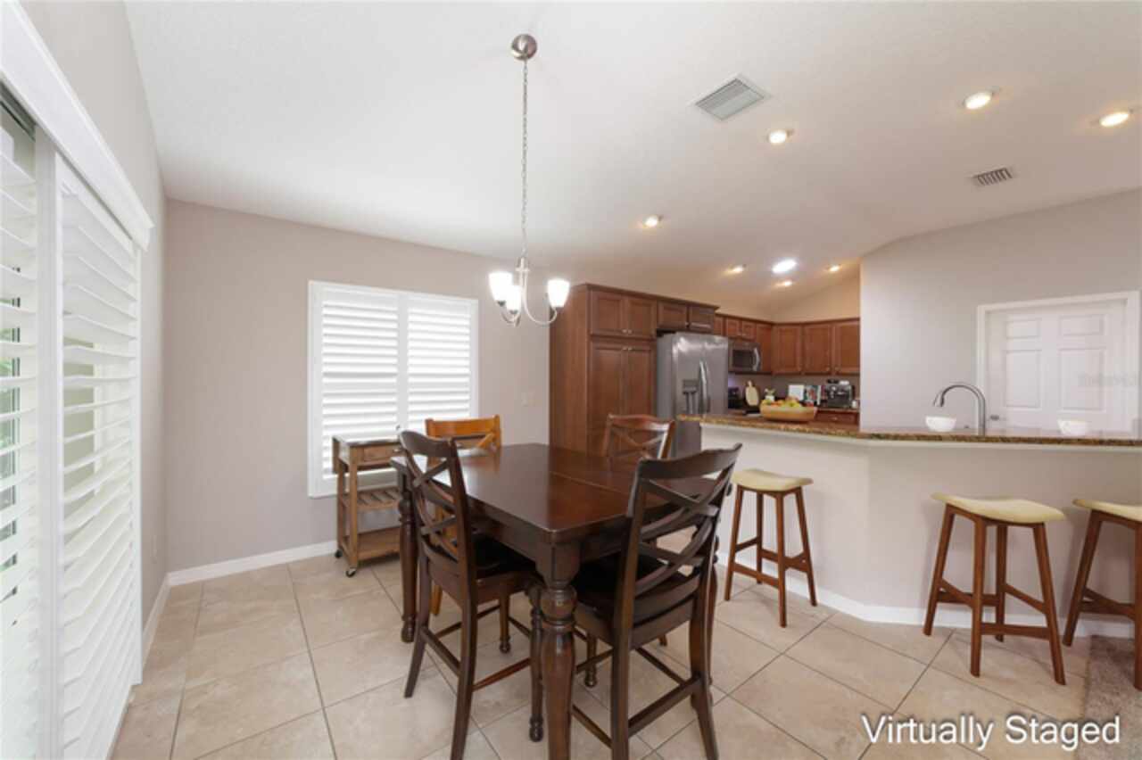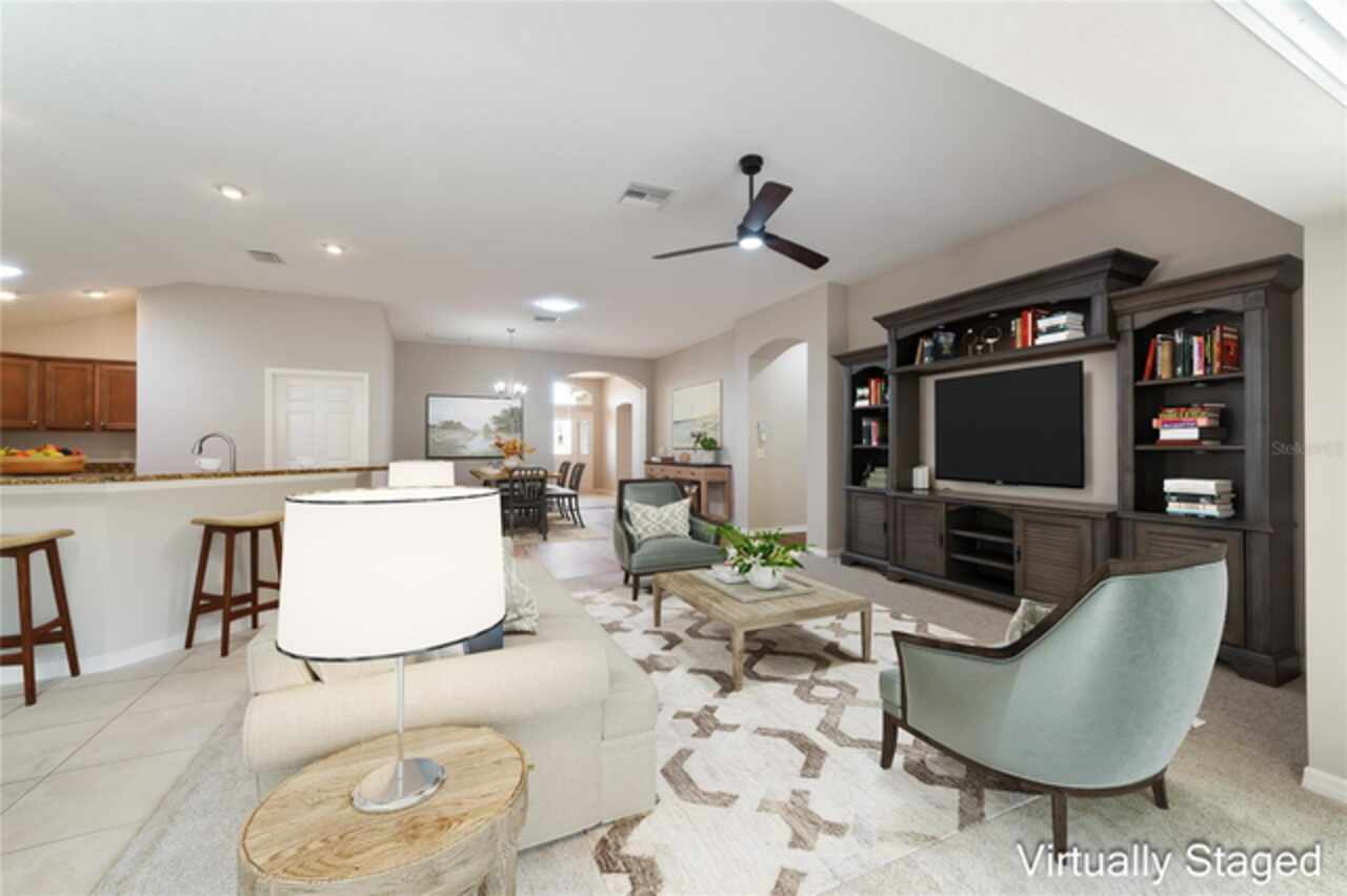 One or more photo(s) has been virtually staged. PRICE REDUCTION! Stunning 3-Bedroom, 2-Bath Lantana in The Villages, FL - Pristine Condition & Prime Location! Welcome to this beautifully maintained Lantana floor plan, offering 3 bedrooms, 2 bathrooms, and an oversized (26 ft) 2-car garage with room for a golf cart. Nestled in a peaceful cul-de-sac just minutes from Brownwood Paddock Square, this home boasts the perfect combination of comfort, style, and convenience. Spacious Living: Large foyer entry sets the tone for this inviting home. Open and bright living spaces with updated flooring and fresh paint throughout. Upgraded ceiling fans complete the modern touches. Hiding sliders off the living and breakfast nook to the screened and private lanai. Updated Kitchen: Enjoy the gourmet kitchen with stainless steel appliances, granite countertops, maple cabinets with double rollouts, a breakfast bar, and a cozy breakfast nook. Elegant Touches: Plantation shutters and five solar tubes throughout the home bring natural light into every room, creating a warm and welcoming atmosphere. The glass inlay front door adds a touch of class. Luxurious Bathrooms: Main bathroom features a stunning Roman shower, dual vanity, plenty of cabinets and a private water closet. Main Bedroom: Large enough for a king-size bed along with two nightstands, dresser and any other type of furniture or seating. The main closet has custom built-in shelving. Two Guest Bedrooms and/or In-Law Suite: Spacious in size and with a tub/shower combination in the guest bathroom. Nice sized linen closet in the hallway. Living Room and Dining Room: Located off the kitchen for convenience with plenty of room for everyday living as well as entertaining guests or family. Relax & Entertain: Screened lanai along with a hot tub and a beautifully landscaped yard with lighted landscaping and rear privacy for outdoor enjoyment. Washer/dryer in utility room with cabinets overhead and utility tub. Upgraded Features: New blower for HVAC (under warranty), new garage door motor, and a painted garage floor. A year-old screen on the garage. Convenience & Comfort: Stucco exterior, ample storage space in this home along with pull down staircase for attic. Plus, the home is located close to all the activities and amenities at Brownwood Paddock Square. This home is move-in ready and waiting for you to enjoy the best of The Villages Florida’s lifestyle! Contact me today to schedule a private showing.