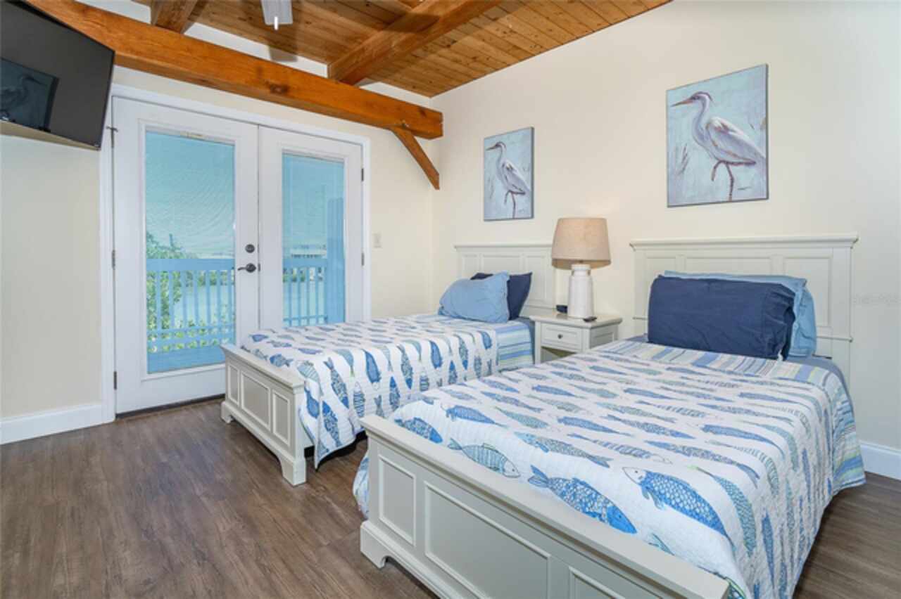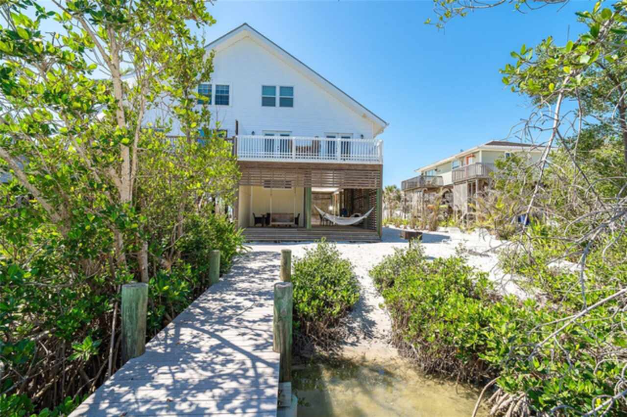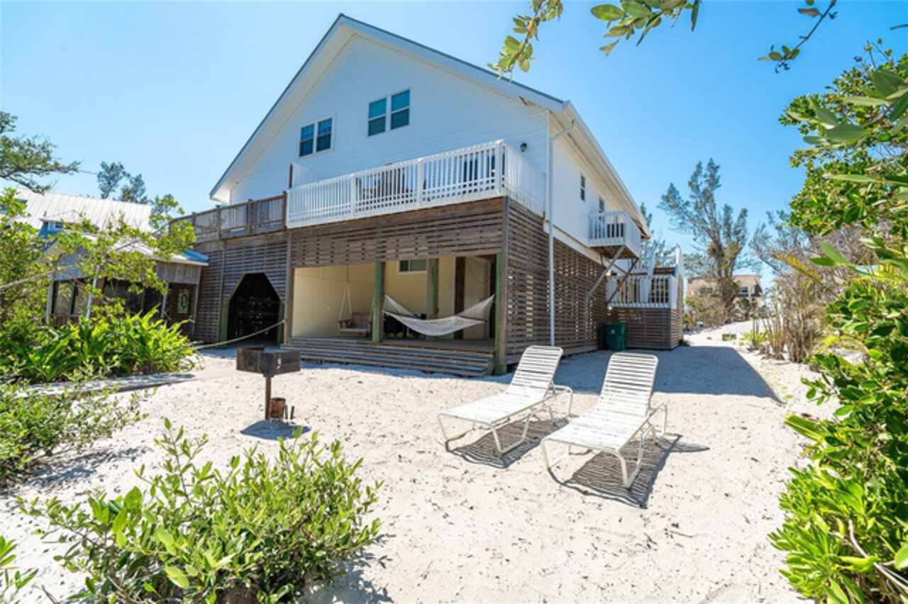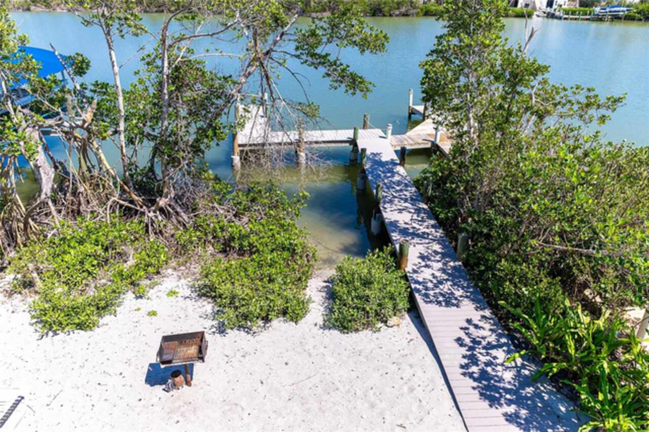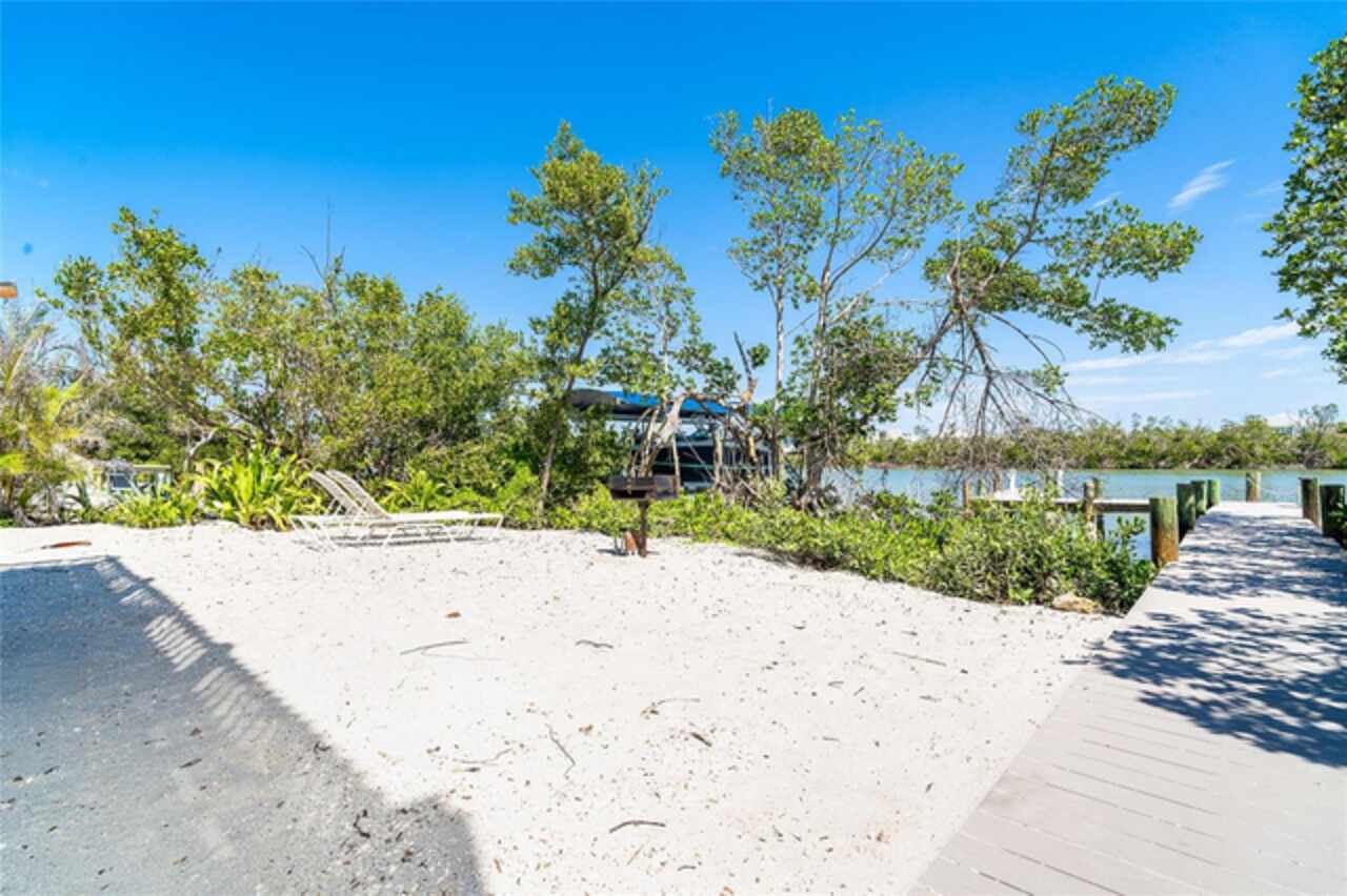 Half Duplex 3 bedroom 2 bathroom 2 floors across the sand road from the Gulf and Tennis courts!! Water views from both the front and back decks with a dock on Bocilla Lagoon! Spacious and airy, with wood beams that give a cozy yet beachy feel. Unit was updated in 2020 with new appliances, paint, furnishings, new refrigerator in 2023, new dock in 2023 and new roof in 2024. New corian countertops March 2025. Colony Don Pedro Association amenities include community heated pool and tennis. They are currently in the process of being repaired from the hurricanes. Don Pedro-Knight-Palm Island is a bridgeless, barrier island accessible only via private boat or a 4 minute car passenger ferry ride. Islands ae situated between Ft. Myers/Naples to the south and Sarasota/Tampa to the north. Buy your piece of paradise and enjoy the island life: glorious sunsets, searching for shells and shark's teeth on the pristine uncrowded beaches, boating, fishing, kayaking, paddleboarding and just breathing in the salt air!! Rental inome provided upon request.