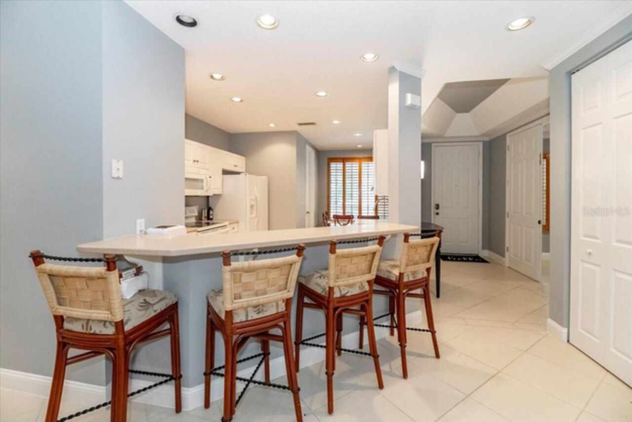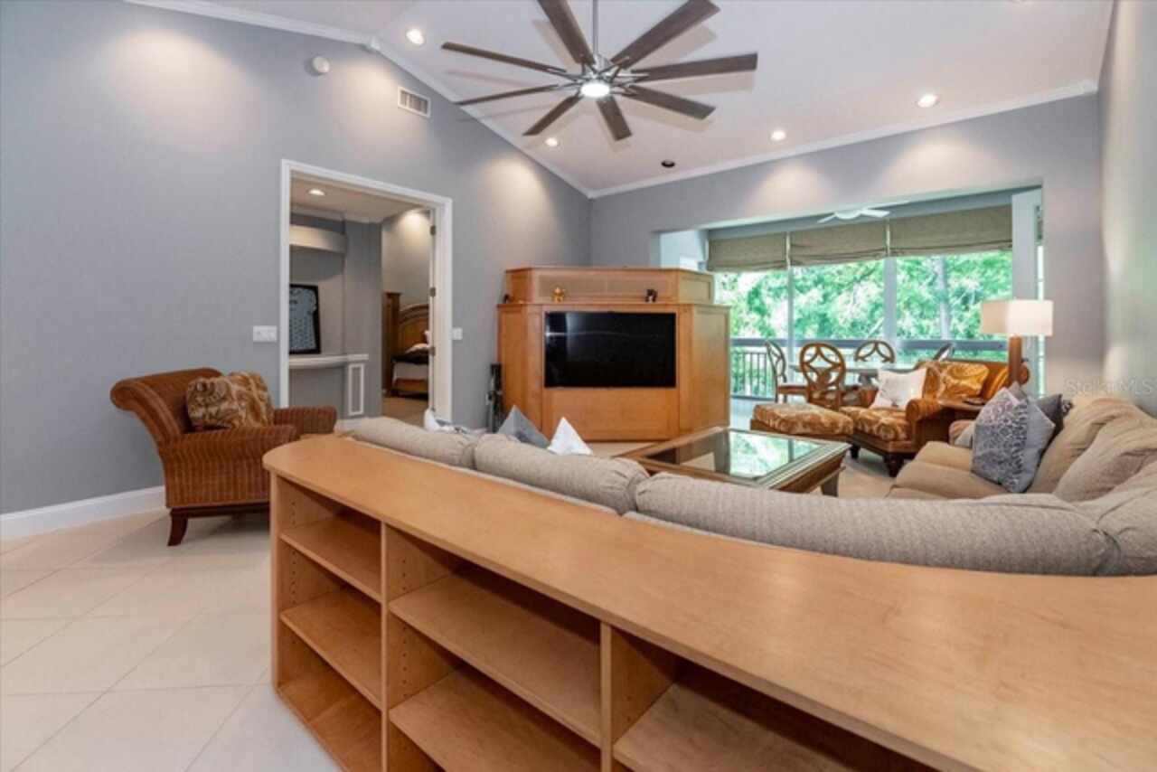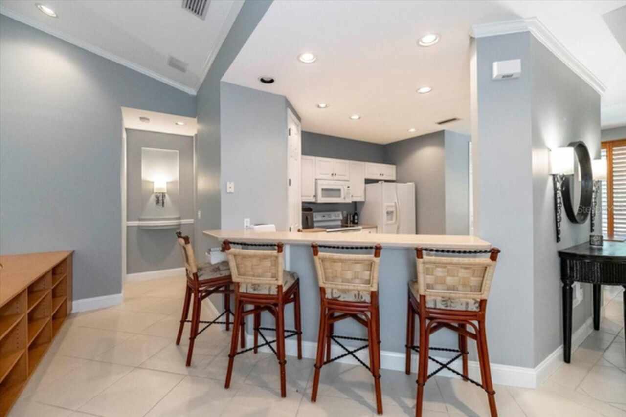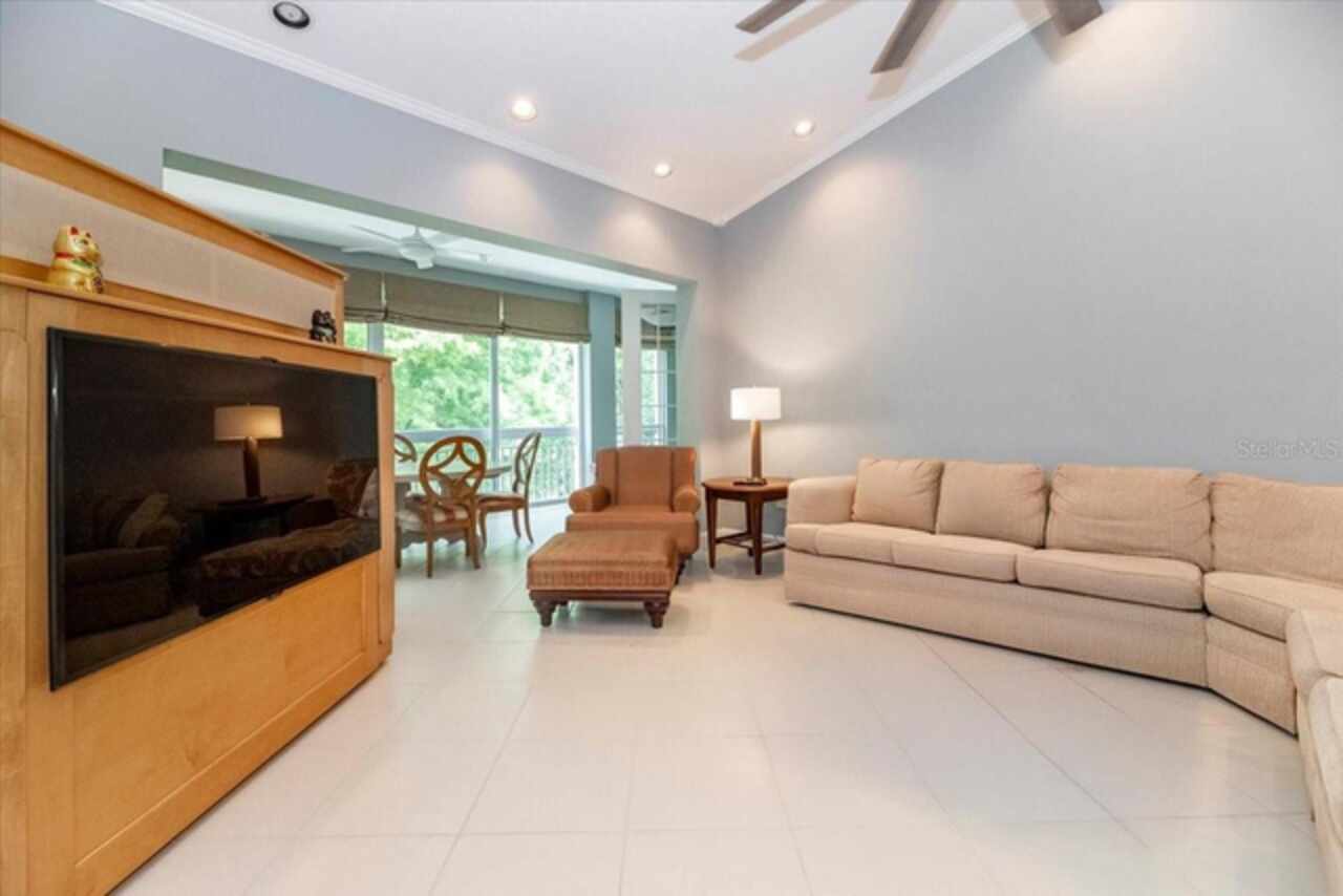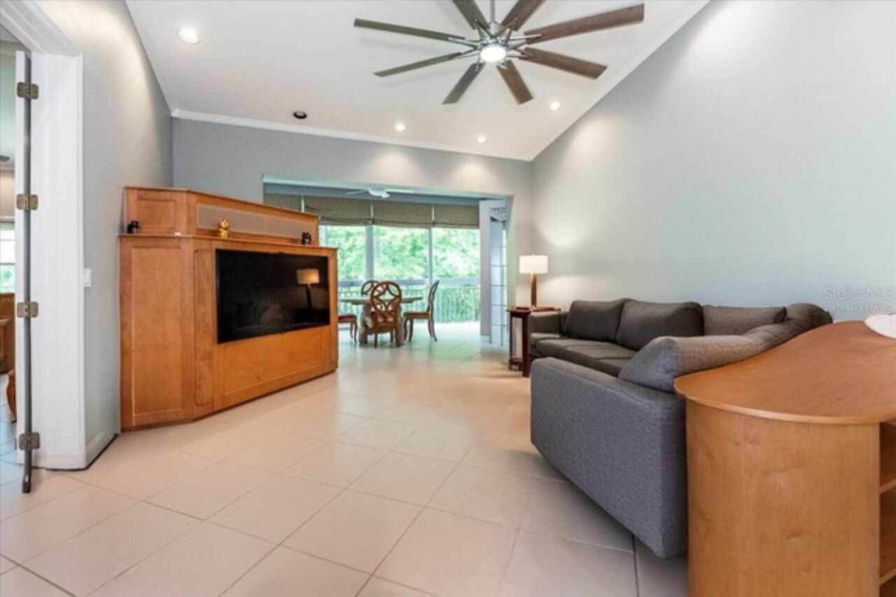 Motivated Seller! This beautifully maintained and thoughtfully updated villa, located within the secure gates of Bollettieri Villas at IMG Academy, presents an exceptional opportunity for those seeking both convenience and functionality. With three spacious bedrooms, three full bathrooms, and an additional bonus room ideally suited for a 4th bedroom, home office, study, or gym, this residence offers over 2, 000 square feet of refined living. The villa is partially furnished and designed for comfort, with cathedral ceilings throughout most rooms, plantation shutters, and remote-controlled Roman shades that blend style with convenience. The living area opens to tranquil views of the surrounding preserve, offering a serene backdrop of privacy and natural beauty. A new canvas awning with a metal frame is scheduled for installation at the end of June, providing the rare luxury of three covered parking spaces—a feature seldom found in the community. Interior upgrades include an HVAC system (2015) with humidistat and ultraviolet purification to support air quality, a custom-built entertainment center with integrated storage and surround sound, and a fully renovated primary bath featuring a jetted Kohler tub, Silestone wall accent, and a walk in shower with glass enclosure. Crown molding, soffit lighting, diagonal 18”x18” tile flooring, and Silestone surfaces throughout the kitchen and baths all contribute to the home's understated sophistication. Recent updates in 2023 include fresh interior paint, updated ceiling fans, and new light fixtures. The gated front balcony provides a safe, private outdoor retreat—perfect for morning coffee or an afternoon with your canine companion. Residents enjoy access to a heated community pool, spa, and fitness room, as well as the convenience of a golf cart shuttle and walkable proximity to the IMG campus. The neighborhood also allows for flexible leasing options, with a one-month minimum rental policy. Just a 10-minute drive to grocery stores and local shopping, and under 30 minutes to the beaches, downtown Sarasota, SRQ Airport, and UTC Mall, this villa offers an ideal blend of comfort, convenience, and quiet sophistication. An especially appealing residence for young athletes and families seeking space, safety, and a strong sense of community.