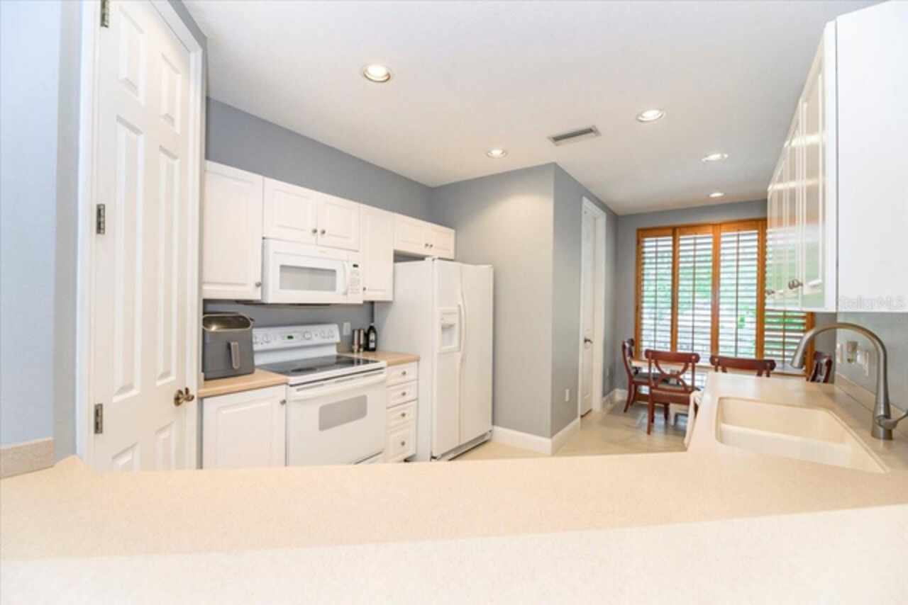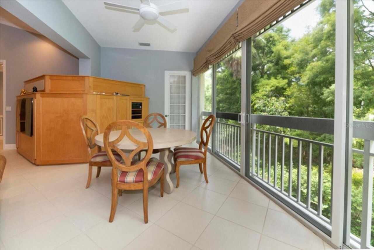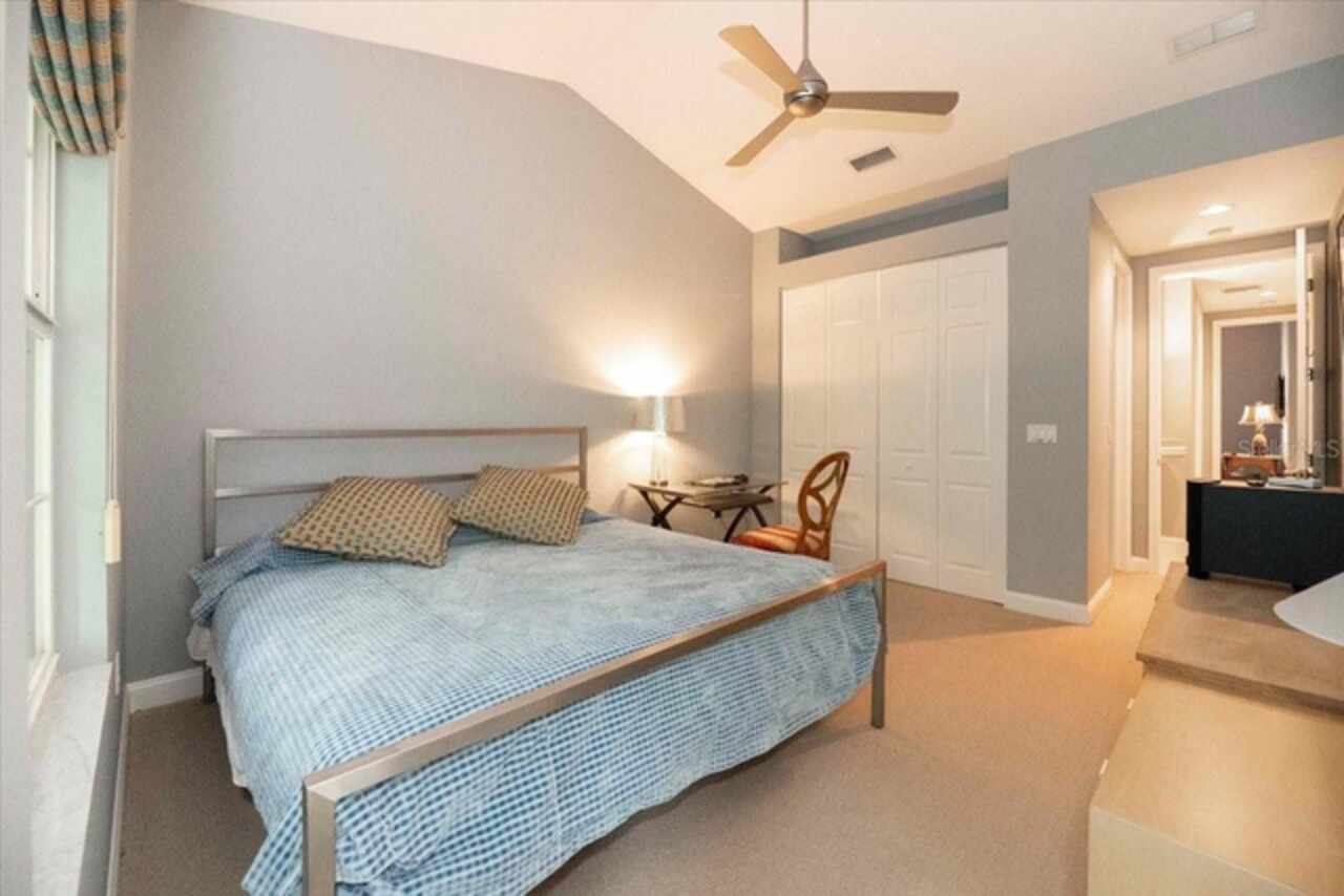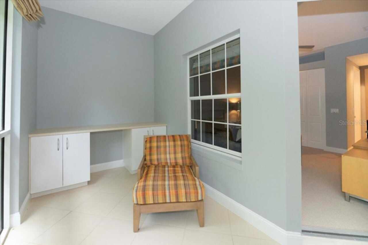 Motivated Seller! This beautifully maintained and thoughtfully updated villa, located within the secure gates of Bollettieri Villas at IMG Academy, presents an exceptional opportunity for those seeking both convenience and functionality. With three spacious bedrooms, three full bathrooms, and an additional bonus room ideally suited for a 4th bedroom, home office, study, or gym, this residence offers over 2, 000 square feet of refined living. The villa is partially furnished and designed for comfort, with cathedral ceilings throughout most rooms, plantation shutters, and remote-controlled Roman shades that blend style with convenience. The living area opens to tranquil views of the surrounding preserve, offering a serene backdrop of privacy and natural beauty. A new canvas awning with a metal frame is scheduled for installation at the end of June, providing the rare luxury of three covered parking spaces—a feature seldom found in the community. Interior upgrades include an HVAC system (2015) with humidistat and ultraviolet purification to support air quality, a custom-built entertainment center with integrated storage and surround sound, and a fully renovated primary bath featuring a jetted Kohler tub, Silestone wall accent, and a walk in shower with glass enclosure. Crown molding, soffit lighting, diagonal 18”x18” tile flooring, and Silestone surfaces throughout the kitchen and baths all contribute to the home's understated sophistication. Recent updates in 2023 include fresh interior paint, updated ceiling fans, and new light fixtures. The gated front balcony provides a safe, private outdoor retreat—perfect for morning coffee or an afternoon with your canine companion. Residents enjoy access to a heated community pool, spa, and fitness room, as well as the convenience of a golf cart shuttle and walkable proximity to the IMG campus. The neighborhood also allows for flexible leasing options, with a one-month minimum rental policy. Just a 10-minute drive to grocery stores and local shopping, and under 30 minutes to the beaches, downtown Sarasota, SRQ Airport, and UTC Mall, this villa offers an ideal blend of comfort, convenience, and quiet sophistication. An especially appealing residence for young athletes and families seeking space, safety, and a strong sense of community.