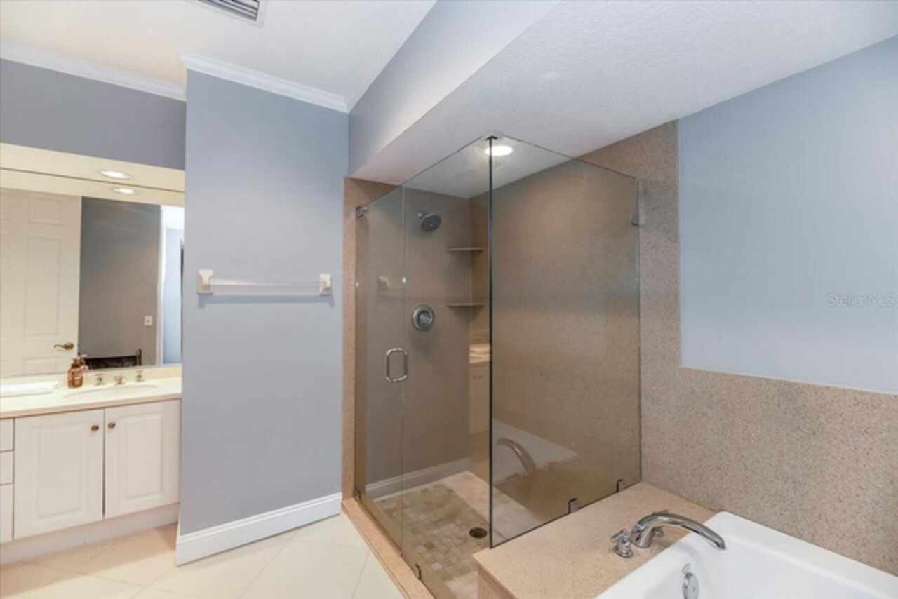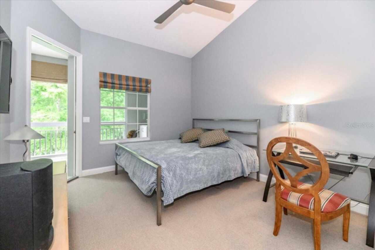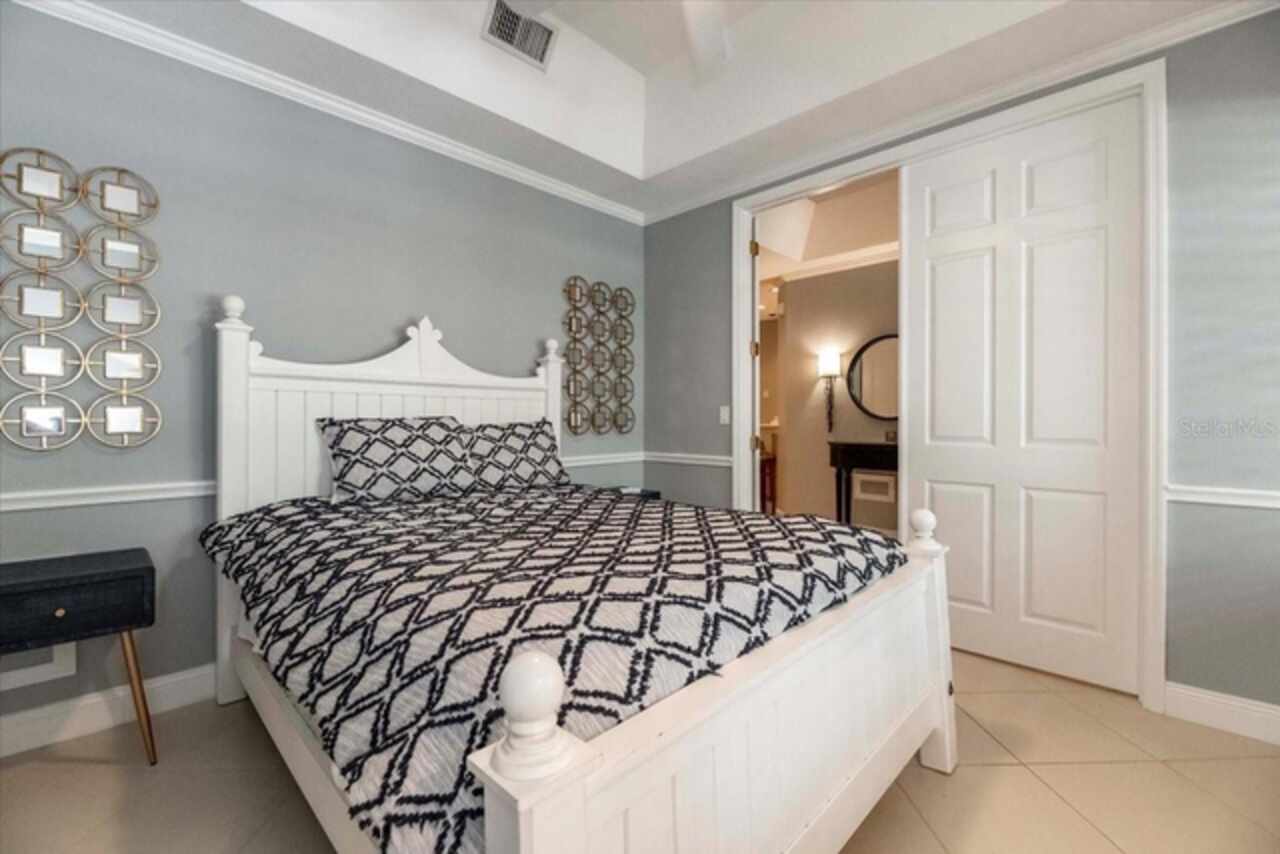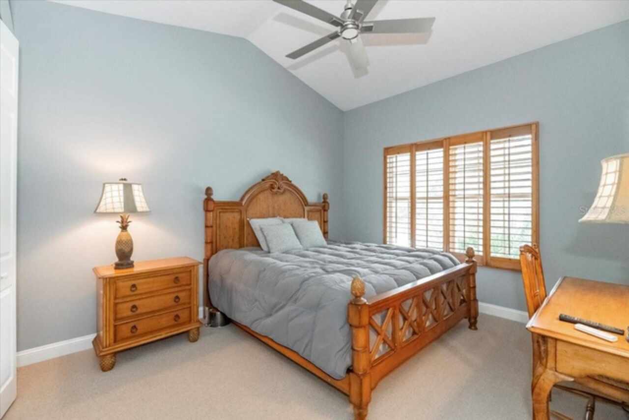 Motivated Seller! This beautifully maintained and thoughtfully updated villa, located within the secure gates of Bollettieri Villas at IMG Academy, presents an exceptional opportunity for those seeking both convenience and functionality. With three spacious bedrooms, three full bathrooms, and an additional bonus room ideally suited for a 4th bedroom, home office, study, or gym, this residence offers over 2, 000 square feet of refined living. The villa is partially furnished and designed for comfort, with cathedral ceilings throughout most rooms, plantation shutters, and remote-controlled Roman shades that blend style with convenience. The living area opens to tranquil views of the surrounding preserve, offering a serene backdrop of privacy and natural beauty. A new canvas awning with a metal frame is scheduled for installation at the end of June, providing the rare luxury of three covered parking spaces—a feature seldom found in the community. Interior upgrades include an HVAC system (2015) with humidistat and ultraviolet purification to support air quality, a custom-built entertainment center with integrated storage and surround sound, and a fully renovated primary bath featuring a jetted Kohler tub, Silestone wall accent, and a walk in shower with glass enclosure. Crown molding, soffit lighting, diagonal 18”x18” tile flooring, and Silestone surfaces throughout the kitchen and baths all contribute to the home's understated sophistication. Recent updates in 2023 include fresh interior paint, updated ceiling fans, and new light fixtures. The gated front balcony provides a safe, private outdoor retreat—perfect for morning coffee or an afternoon with your canine companion. Residents enjoy access to a heated community pool, spa, and fitness room, as well as the convenience of a golf cart shuttle and walkable proximity to the IMG campus. The neighborhood also allows for flexible leasing options, with a one-month minimum rental policy. Just a 10-minute drive to grocery stores and local shopping, and under 30 minutes to the beaches, downtown Sarasota, SRQ Airport, and UTC Mall, this villa offers an ideal blend of comfort, convenience, and quiet sophistication. An especially appealing residence for young athletes and families seeking space, safety, and a strong sense of community.