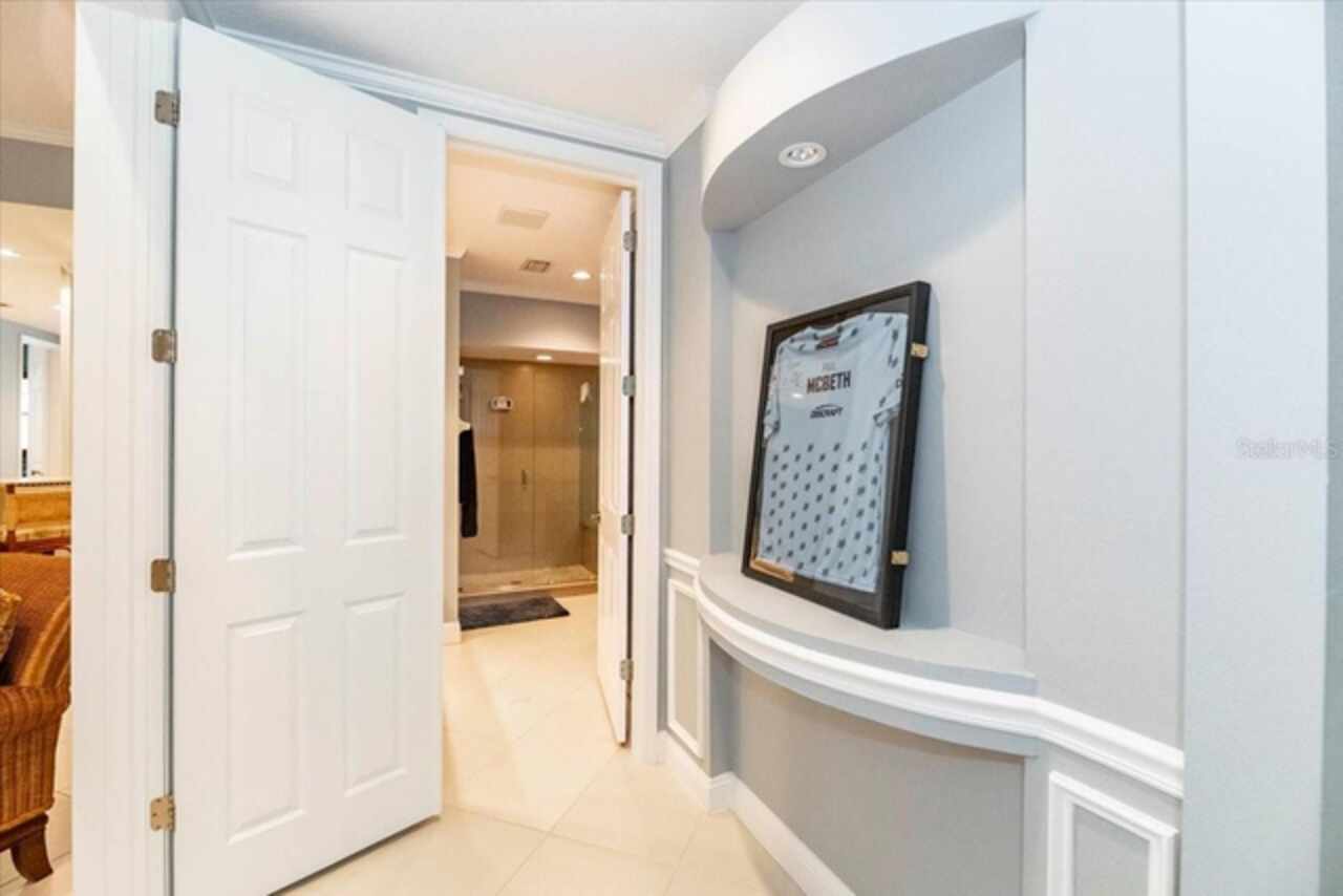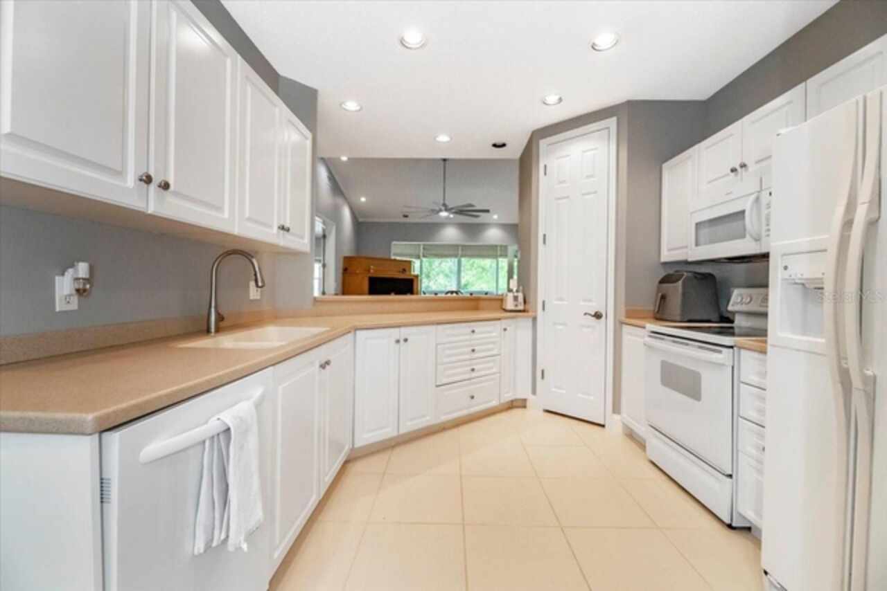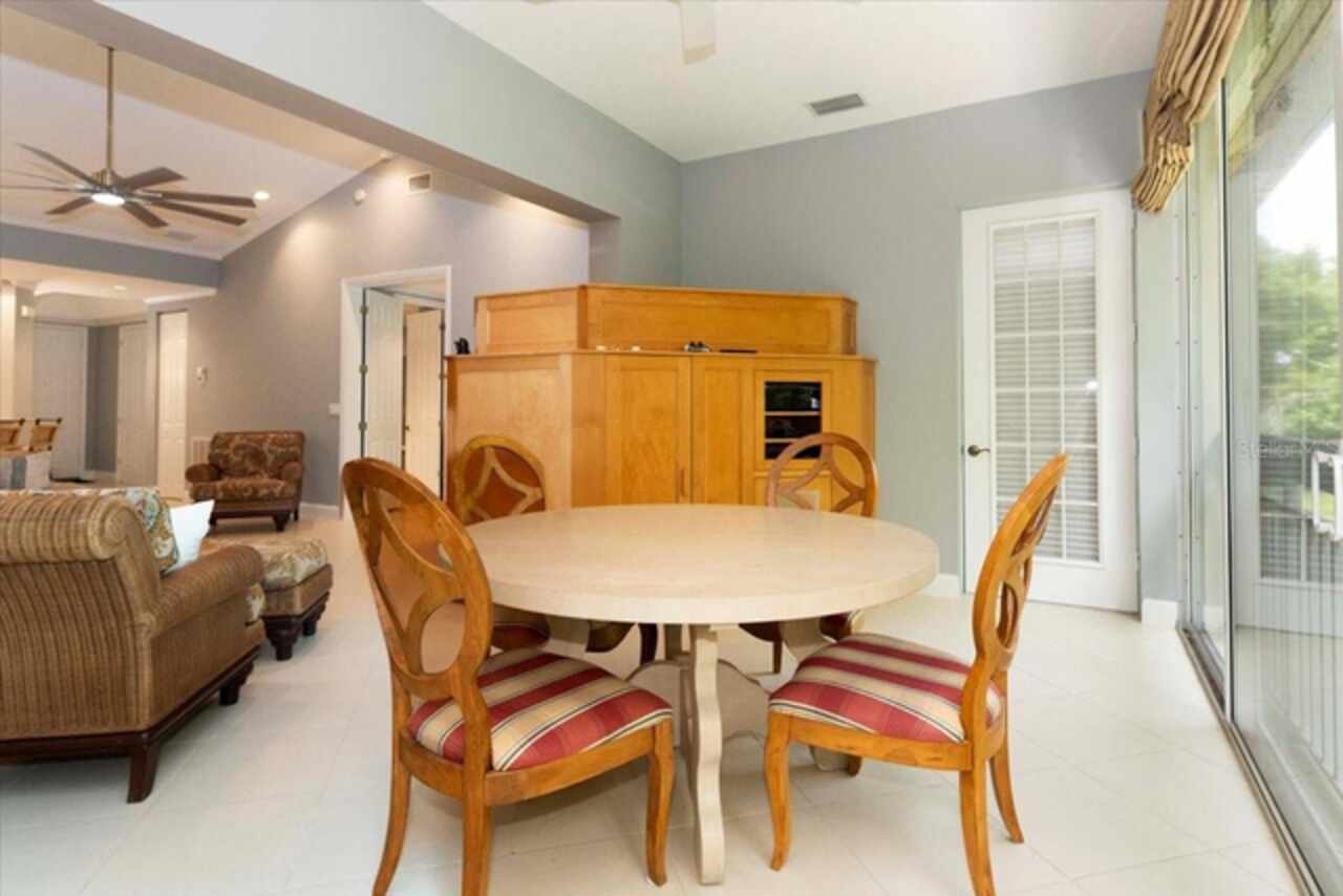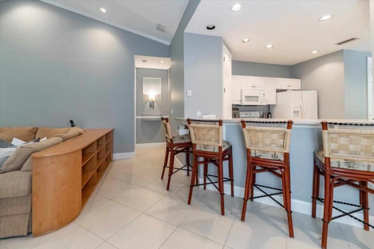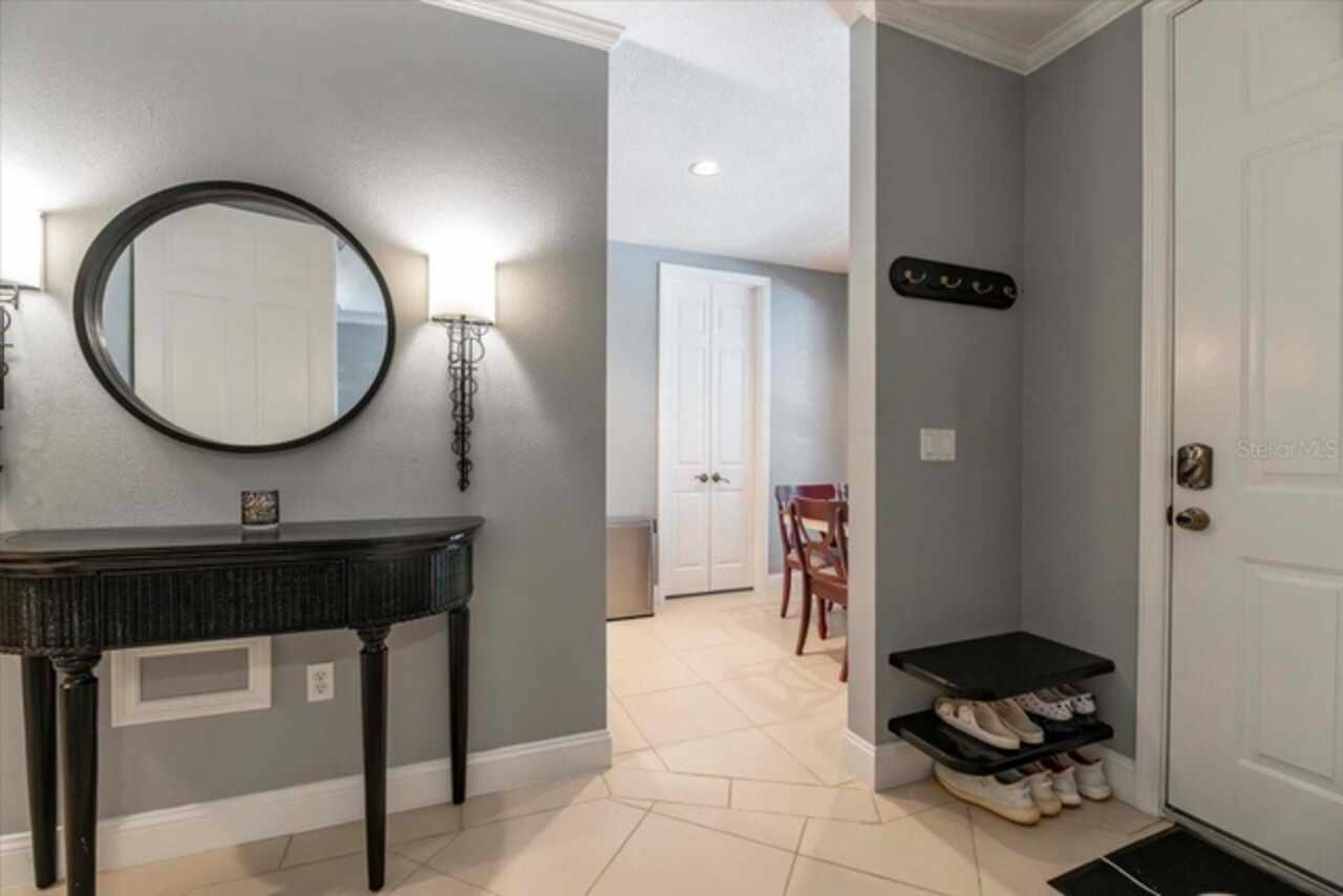 Motivated Seller! This beautifully maintained and thoughtfully updated villa, located within the secure gates of Bollettieri Villas at IMG Academy, presents an exceptional opportunity for those seeking both convenience and functionality. With three spacious bedrooms, three full bathrooms, and an additional bonus room ideally suited for a 4th bedroom, home office, study, or gym, this residence offers over 2, 000 square feet of refined living. The villa is partially furnished and designed for comfort, with cathedral ceilings throughout most rooms, plantation shutters, and remote-controlled Roman shades that blend style with convenience. The living area opens to tranquil views of the surrounding preserve, offering a serene backdrop of privacy and natural beauty. A new canvas awning with a metal frame is scheduled for installation at the end of June, providing the rare luxury of three covered parking spaces—a feature seldom found in the community. Interior upgrades include an HVAC system (2015) with humidistat and ultraviolet purification to support air quality, a custom-built entertainment center with integrated storage and surround sound, and a fully renovated primary bath featuring a jetted Kohler tub, Silestone wall accent, and a walk in shower with glass enclosure. Crown molding, soffit lighting, diagonal 18”x18” tile flooring, and Silestone surfaces throughout the kitchen and baths all contribute to the home's understated sophistication. Recent updates in 2023 include fresh interior paint, updated ceiling fans, and new light fixtures. The gated front balcony provides a safe, private outdoor retreat—perfect for morning coffee or an afternoon with your canine companion. Residents enjoy access to a heated community pool, spa, and fitness room, as well as the convenience of a golf cart shuttle and walkable proximity to the IMG campus. The neighborhood also allows for flexible leasing options, with a one-month minimum rental policy. Just a 10-minute drive to grocery stores and local shopping, and under 30 minutes to the beaches, downtown Sarasota, SRQ Airport, and UTC Mall, this villa offers an ideal blend of comfort, convenience, and quiet sophistication. An especially appealing residence for young athletes and families seeking space, safety, and a strong sense of community.