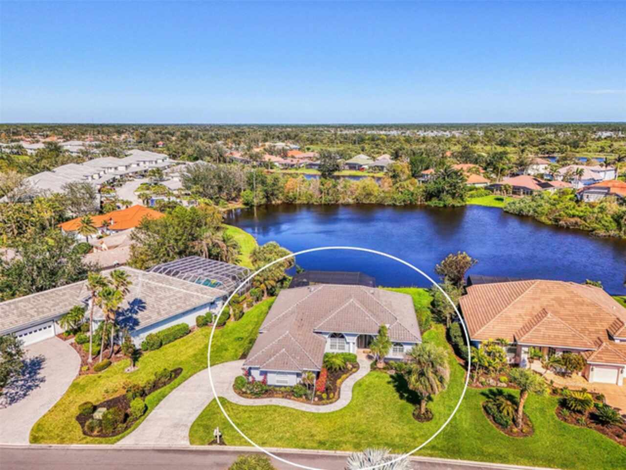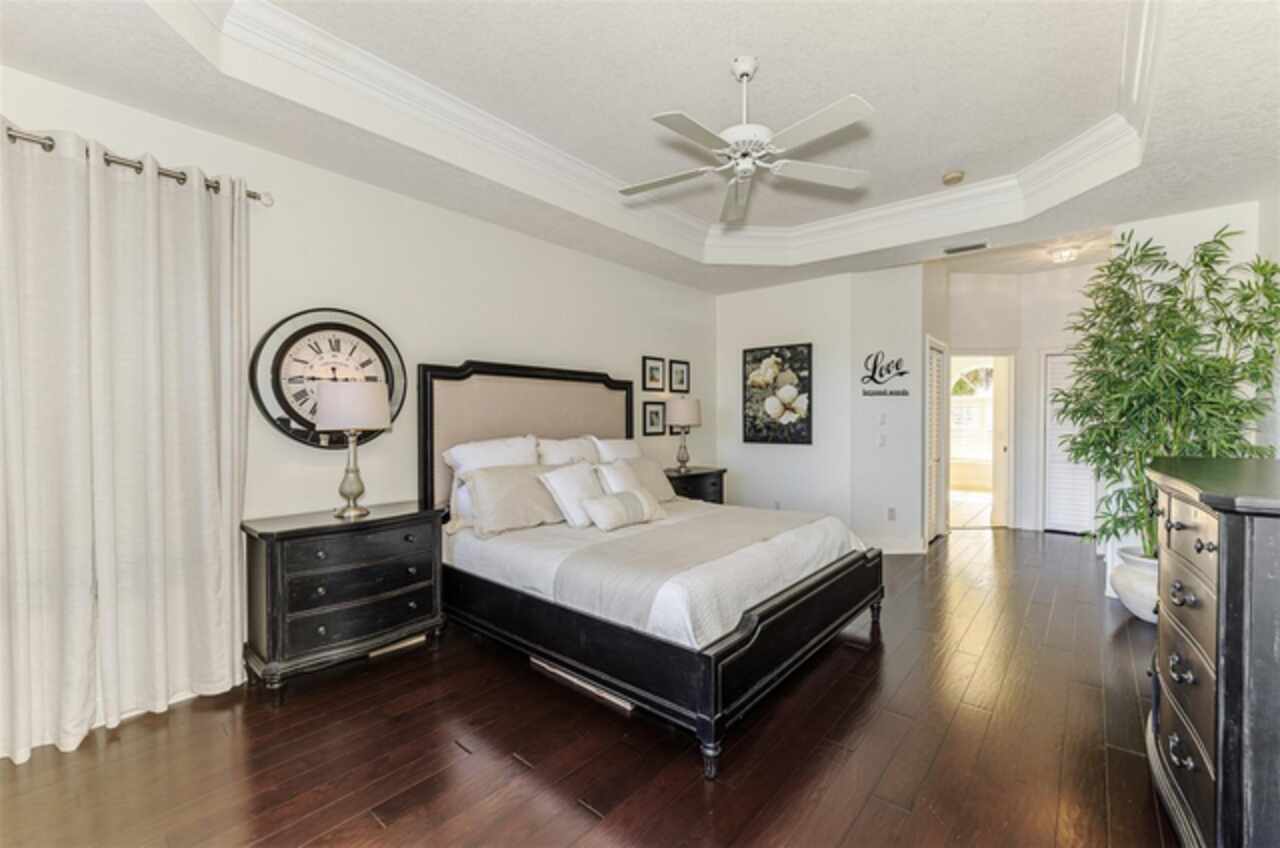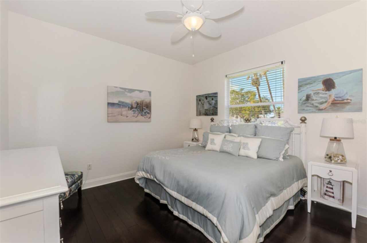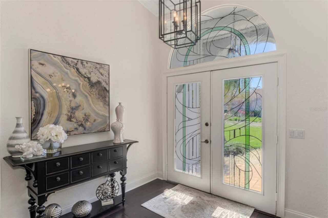 Indulge in a lifestyle where the beauty of nature meets the simplicity of living in the delightful community of Riverwood. A impeccably maintained custom Yorktowne estate home in the desired Eagle Trace neighborhood. This well appointed home features stunning hardwood floors throughout the living area into the bedrooms. The formal dining area, enhanced with a most elegant chandelier is ideal for special gatherings while the updated eat in kitchen with wood cabinets, granite counter tops & stainless steel appliances provide for a clutter-free space for casual dining and entertaining. The third bedroom currently used as a media room offers versatility with pocketdoor access into the kitchen area. The sliding glass doors will lead you to the spacious lanai with an inviting pool for year round fun and relaxation. Take in the beautiful water and preserve views from the gorgeous "Cinema" picture screen enclosure . The primary suite, with access to the lanai, includes a walk-in closet, tub and separate shower. A split floor plan provides privacy for you and your guests. Added features include; NEW ROOF (2021), NEW POOL CAGE (2023), HVAC (2021), Hurricane Shutters, crown molding, plantation shutters and modern light fixtures. This is Florida Living at its Best! Don't let this extraordinary opportunity slip away! GOLF CLUB NAMED *TOP 50 US COURSES* *GOLF ADVISOR* *2018*, ACTIVITY CENTER CAMPUS INCLUDES LAP & RESORT STYLE POOL, FITNESS CENTER, PICKLE-BALL COURTS, SMALL AND LARGE DOG PARKS, TENNIS COURTS, LAWN CROQUET, BOCCE COURTS, CRAFT ROOM, LIBRARY AND SOCIAL ACTIVITIES! Additional fees apply for Riverwood Golf Club & Private Beach Club on Manasota Key. Riverwood is Close to Tampa Bay Rays Spring Training Facility, Atlanta Braves Spring Training Facility, Gulf Beaches, Carlotte Harbor, Myakka River, Punta Gorda, Englewood and Boca Grande. Riverwood, a Perfect Blend of Florida's Nature and Resort Lifestyle.