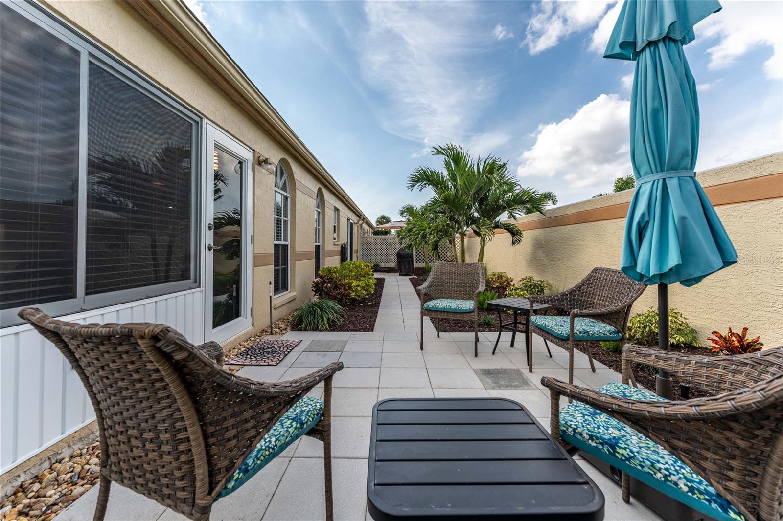Welcome Home to Lakebridge — Your Ideal Maintenance-Free Lifestyle Awaits! Discover the charm of carefree living at Lakebridge Condominiums, a highly desirable gated community offering convenience, comfort, and resort-style amenities. This single-story, 3-bedroom, 2-bath condo is designed for easy living, featuring a bright and airy lanai, open floor plan, and tasteful updates throughout. Step inside to find an immaculately maintained home with vaulted ceilings in the great room, creating a spacious atmosphere filled with natural light. The primary suite offers a generous walk-in closet and a beautifully updated en suite bath. The kitchen boasts classic alabaster cabinetry, Corian countertops, and a convenient laundry area with a full-size washer and dryer. Enjoy added perks such as a 12’ x 20’ garage with painted floors and walls, plus a private, beautifully landscaped backyard — perfect for relaxing or entertaining outdoors. The tile roof was replaced in 2021 and is covered by the association for peace of mind. Lakebridge residents enjoy access to excellent community amenities including a clubhouse, two swimming pools, tennis courts, and lushly landscaped grounds. Perfectly located near IMG Academy, State College of Florida, and just minutes from Anna Maria Island’s world-famous beaches, SRQ Airport, shopping, dining, golf courses, and scenic parks and trails — this home truly offers the best of Bradenton living. Move-in ready and beautifully maintained – schedule your showing today and start living the Lakebridge lifestyle!