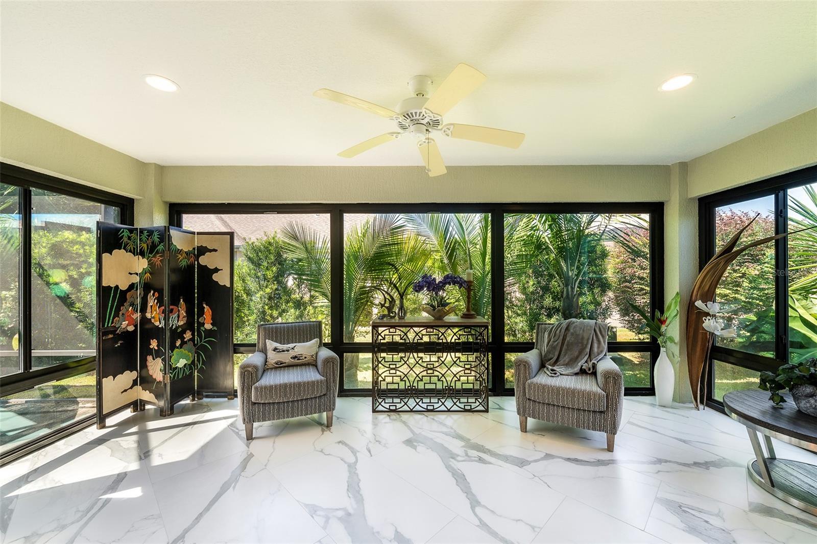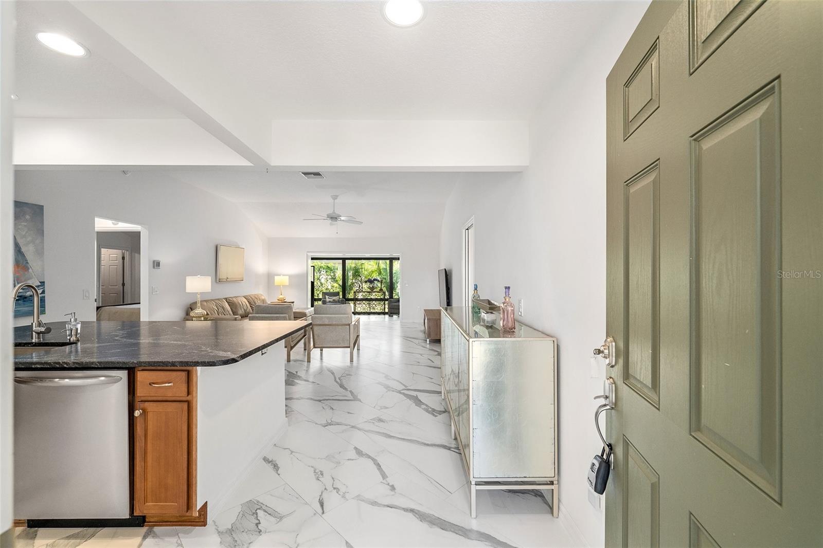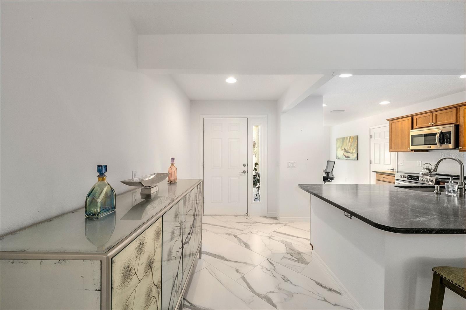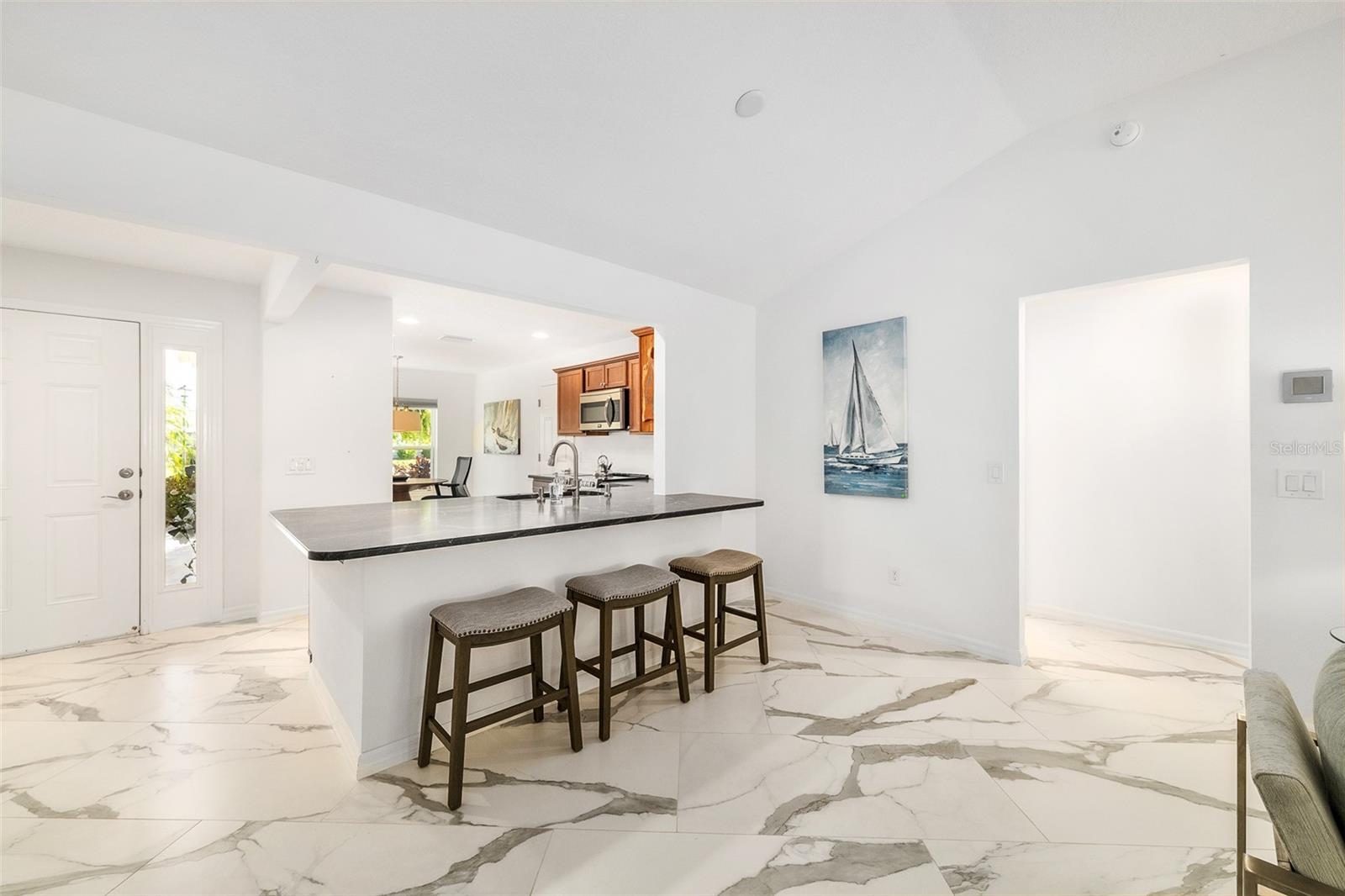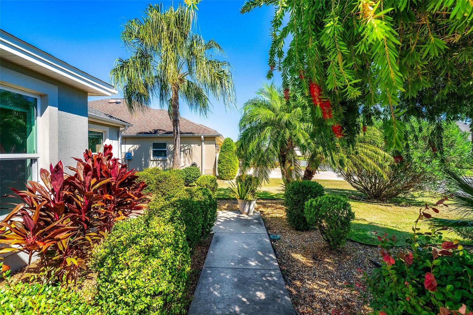 Beautifully updated "turn-key" and move-in ready 3-bedroom, 2-bath home in The Village of Dunedin, ideally located near Brownwood Paddock Square. Surrounded by lush tropical landscaping, this property offers rare privacy and resort-style ambiance. Inside, you’ll find custom tile flooring, a bright, open layout, and a 200 sq ft Florida Room that’s enclosed and under air—adding extra living space not reflected in the MLS square footage. The kitchen features quality cabinetry, a cozy dinette area, and a custom bar-height countertop perfect for entertaining. The split-bedroom floor plan provides privacy for guests, and both bathrooms are tastefully updated with modern finishes and a walk-in shower. Enjoy indoor-outdoor living with a screened birdcage patio, ideal for relaxing or entertaining year-round. Additional features include: • 1, 589 sq ft under air + 200 sq ft bonus area • Custom thermopane windows in Florida Room • Garage with epoxy flooring & pull-down attic stairs • Turn-key and move-in ready • Indoor laundry room • Concrete block stucco construction • Bond paid-in-full. This home is in excellent condition and located in one of the most desirable neighborhoods in The Villages—close to golf, recreation, shopping, dining, and nightly entertainment at Brownwood Paddock Square. Make plans to visit this fine home today!