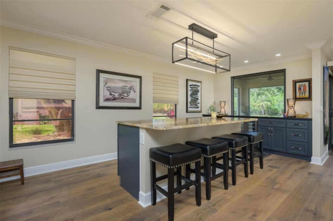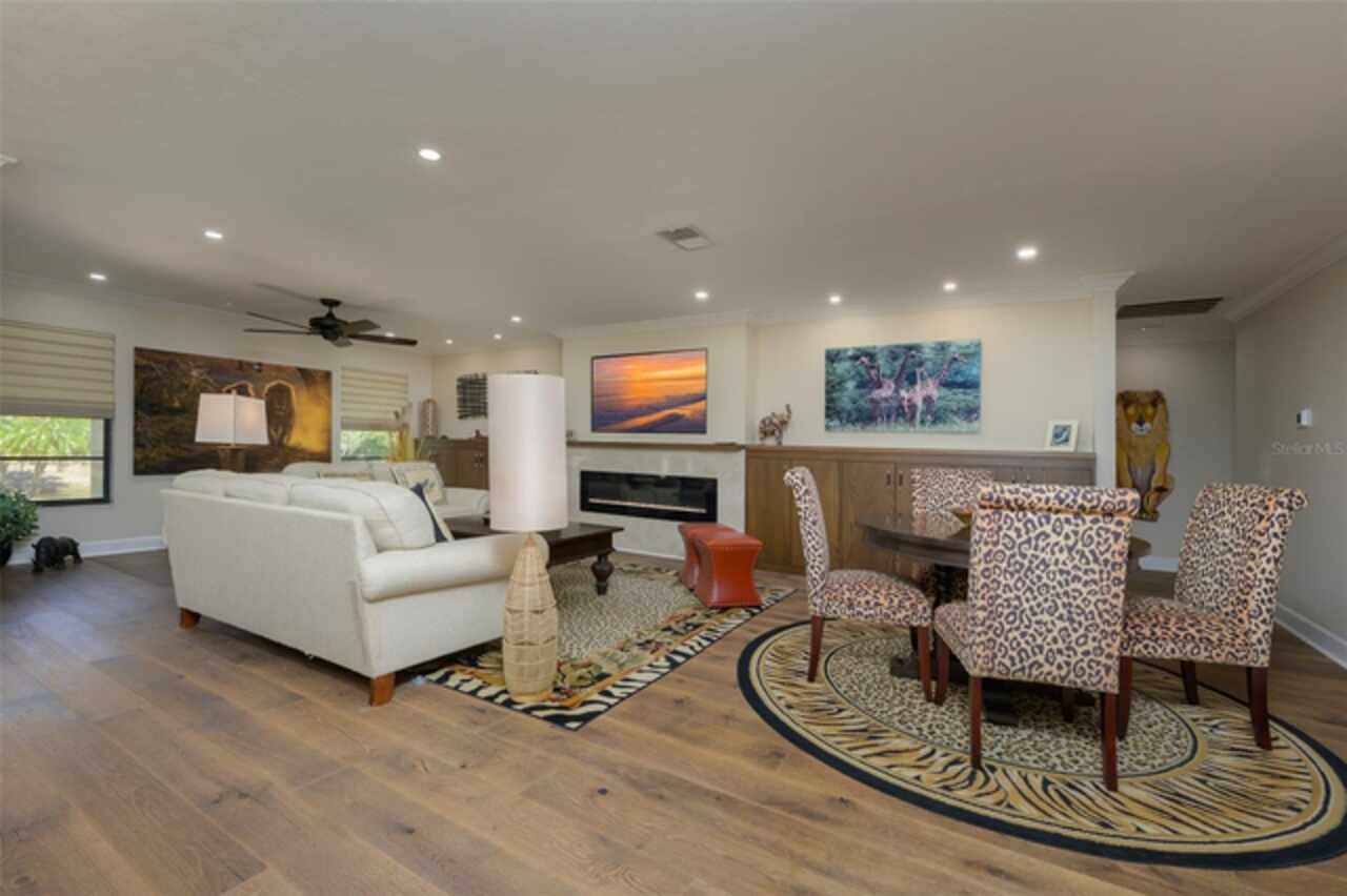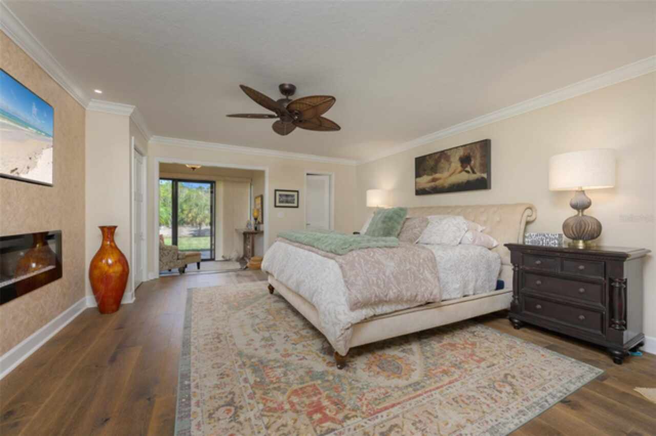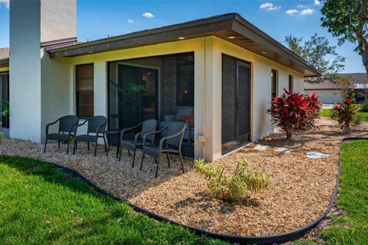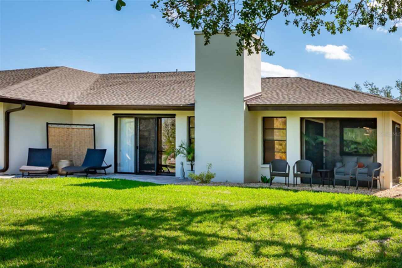 Step into unparalleled luxury with this completely updated 3-bedroom, 2-bath end-unit villa in the coveted Ballantrae community of Palmer Ranch. Every detail has been meticulously redesigned for modern living. Gourmet Chef’s Kitchen: Reimagined with solid wood cabinetry, quartz countertops/backsplash, and a stunning leathered granite center island, seamlessly opening to the main living area. Includes a sophisticated dry bar with a wine cooler and icemaker. Elegant Interior: Features DuChateau engineered hardwood floors and an open-concept layout. The spacious living room boasts an electric fireplace encased in custom mahogany built-ins. Tranquil Primary Suite: A private retreat with a sitting area, terrace access, and a walk-in custom closet. The spa-like en-suite bath offers dual vanities, a large soaker tub, and a walk-in shower. Prime Location & Lifestyle: Enjoy tranquil bayou views from the zeroscaped yard, shaded by a magnificent oak tree. Ballantrae is a peaceful 101-villa community with over 35 acres of pristine grounds. Palmer Ranch Convenience: Golf cart-friendly community near Prestancia golf. Located minutes from I-75 and Sarasota's finest dining and shopping. Enjoy the future SSQ retail destination (Whole Foods, HomeSense) and the new Trader Joe’s nearby. This rare end-unit gem offers the perfect blend of upscale finishes and premier Palmer Ranch convenience.
