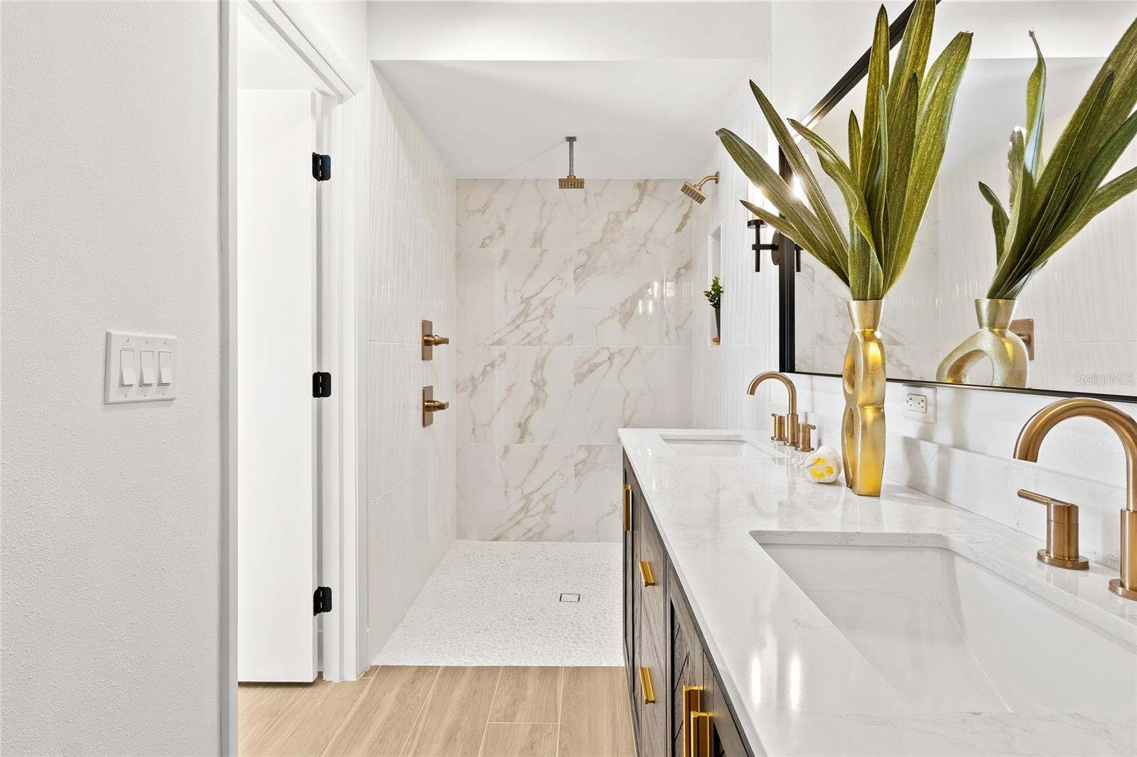 Welcome to Country Place! Tucked away in one of Sarasota’s most established and desirable neighborhoods, this stunning 4-bedroom, 3-bath pool home has been completely reimagined inside and out, offering 2, 288 square feet of modern design and effortless functionality. Every detail has been thoughtfully curated to create a residence that feels both stylish and timeless. Step inside to an open, light-filled layout featuring new wood-look porcelain tile flooring and base trim throughout. The chef’s kitchen is a showpiece equipped with soft-close cabinetry, white glass appliances, quartz countertops, and an expansive island perfect for gathering and entertaining. The adjoining living and dining spaces flow seamlessly to the screened pool area, where a resurfaced pool with new tile and fresh landscaping provide the perfect backdrop for relaxation and outdoor living. The private owner’s suite is a serene retreat, showcasing a solid wood double vanity, designer fixtures, and a spa-like shower with elegant champagne bronze and matte black finishes. Two additional fully renovated bathrooms feature the same high-end details, including Kohler cast iron bathtub, Delta faucets, and soft-close double vanities. Major system upgrades include a new shingle roof, 5-ton HVAC system, new sewer and water supply lines, new skylight, and fresh interior and exterior paint - ensuring peace of mind and true move-in readiness. With a spacious two-car garage, thoughtful layout, and refined finishes throughout, this home perfectly balances sophistication and everyday comfort. Country Place offers a quiet, convenient Sarasota location close to Siesta Key Beach, shopping, dining, and top-rated schools - a true hidden gem for those seeking space, privacy, and modern luxury. Don’t miss the opportunity to experience this remarkable home where craftsmanship, comfort, and contemporary Florida design come together flawlessly.