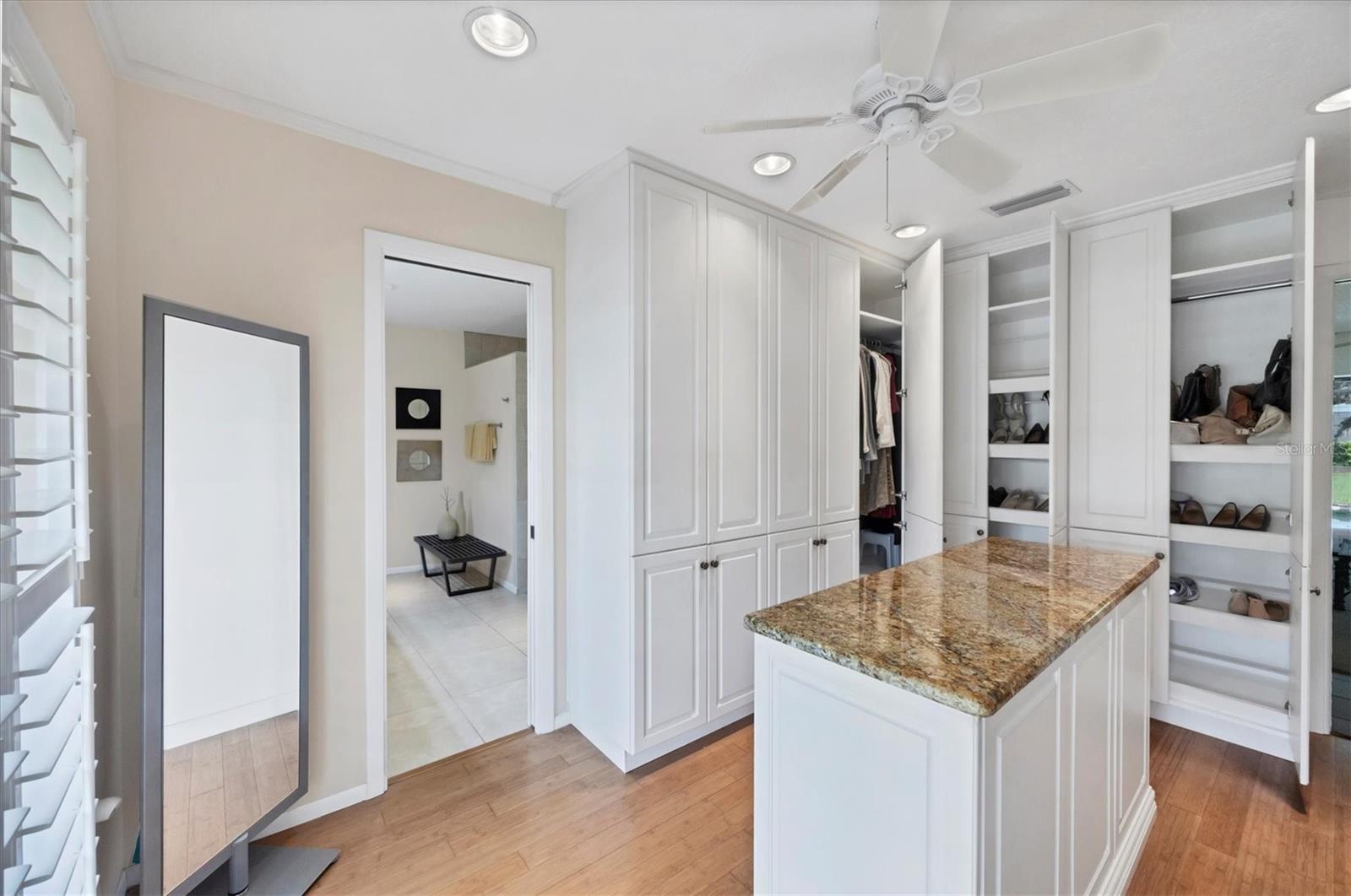 Ceiling Fans(s), Eat-in Kitchen, Kitchen/Family Room Combo, Primary Bedroom Main Floor, Solid Wood Cabinets, Split Bedroom, Thermostat, Walk-In Closet(s), Window Treatments