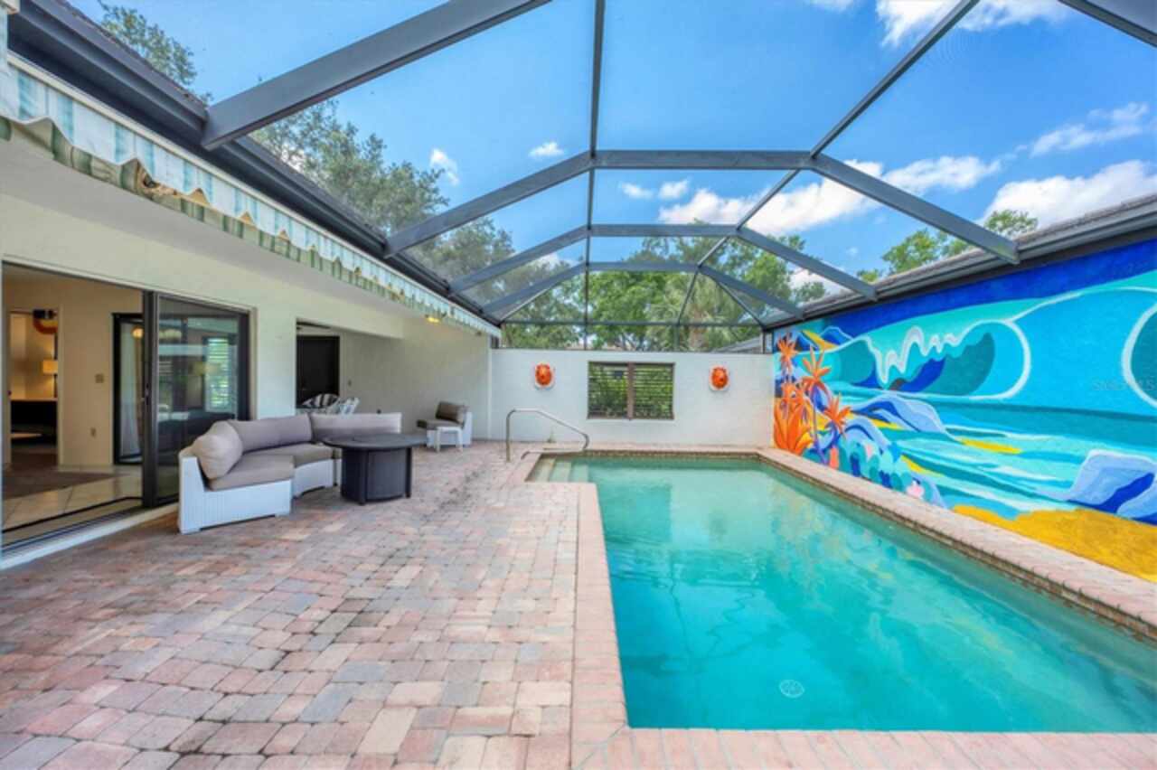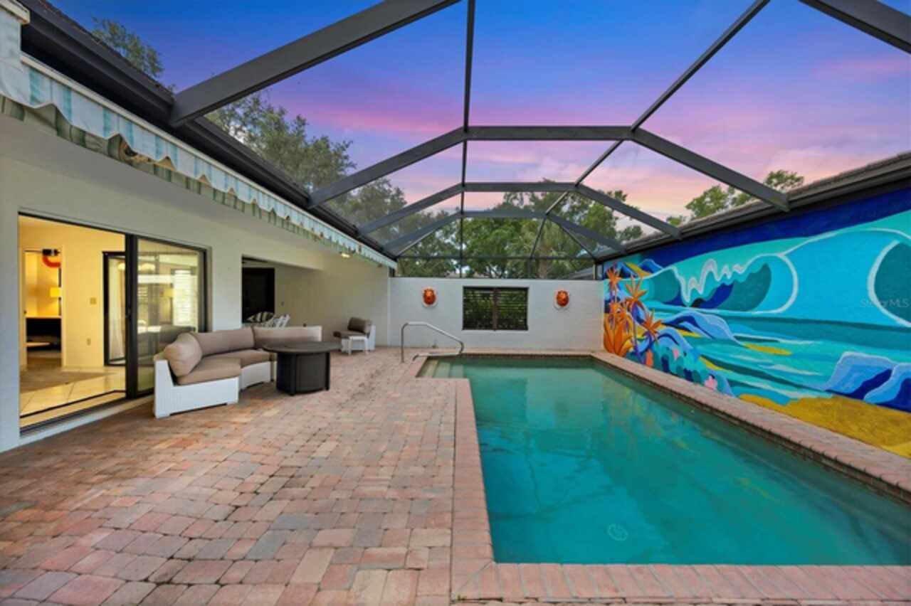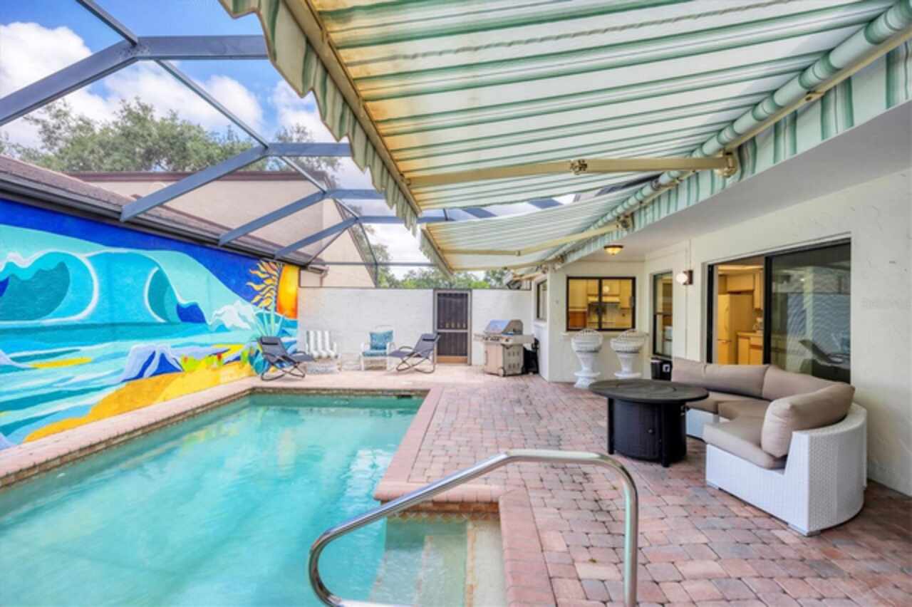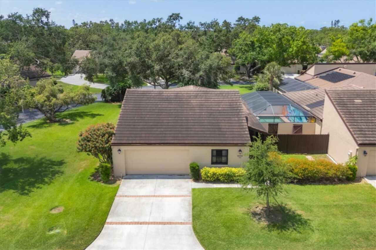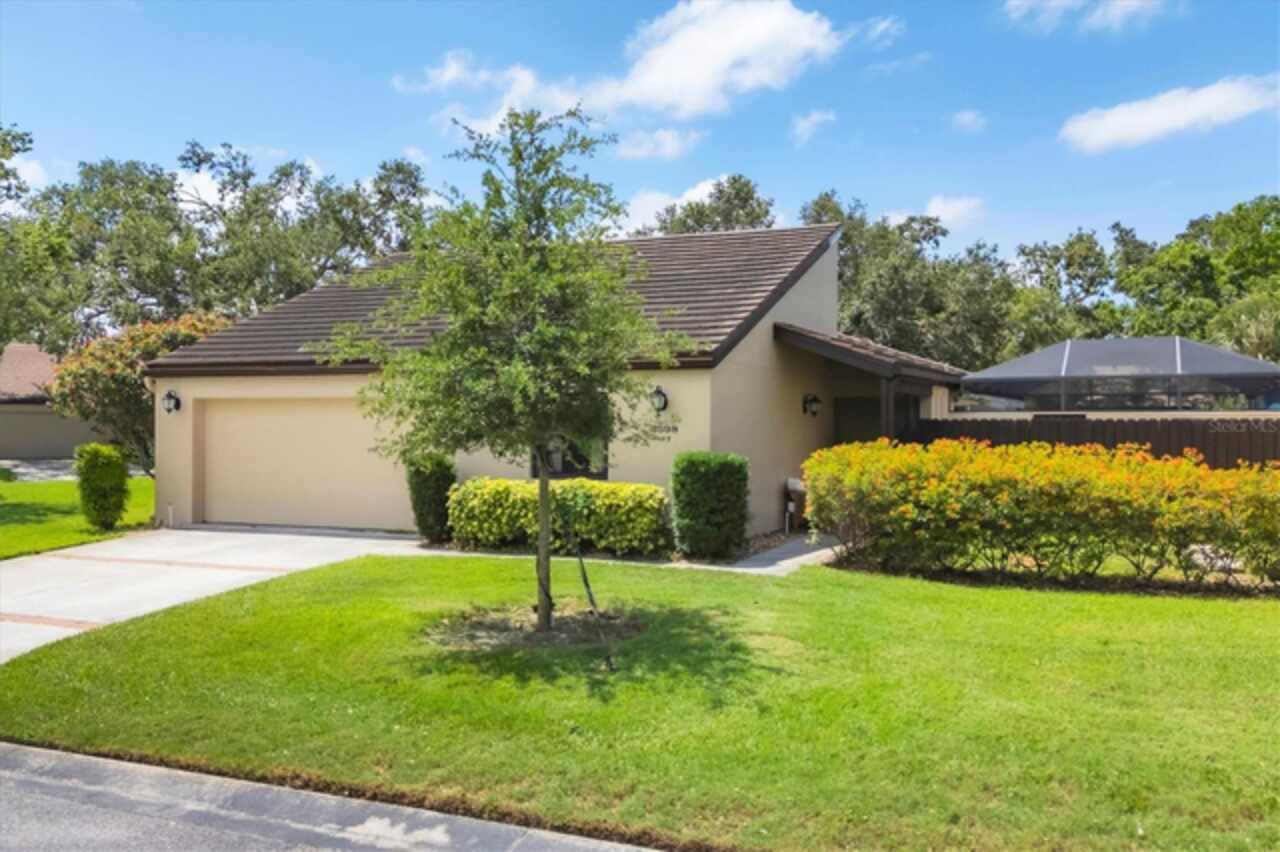 Attention Investors...THIS PooL VillA IS RENTED OUT UNTIL October 2026 @ $2, 500/month. Welcome to GLEN OAKS MANOR...A boutique enclave of large Courtyard Pool Villas occupying dedicated space INSIDE it's OWN PARK designed as a canopy tree neighborhood complete with lakes, paths, gazebos, park benches a beautiful variety of trees and plants AND it is a dog friendly neighborhood. This is an END and CORNER unit that is practically free-standing affording 8 more windows than an interior unit. Be one with nature in your large 33x24 VERY PRIVATE screened courtyard with your own VERY PRIVATE POOL. While this is a villa, it is NOT a condo and has a home owner's Association. Opposite the courtyard is an added bonus...an atrium with water and electric in place...great for an orchid garden, fountain, kitty corral, aviary and it is a great space that brightens the home up! This is a SPLIT FLOOR PLAN with the bedrooms at opposite ends of the home. As another bonus, there is a staircase to a storage room in the attic! The garage door had new rack/rollers, infrastructure and opener have just been updated and the door is hurricane wind rated. The HVAC is only 2 years old. This home is sold furnished as a convenience to the seller and it obviously captures the "70's theme" as it was an air BNB rental. It is currently rented out on an annual lease. Price reduced to $448, 900