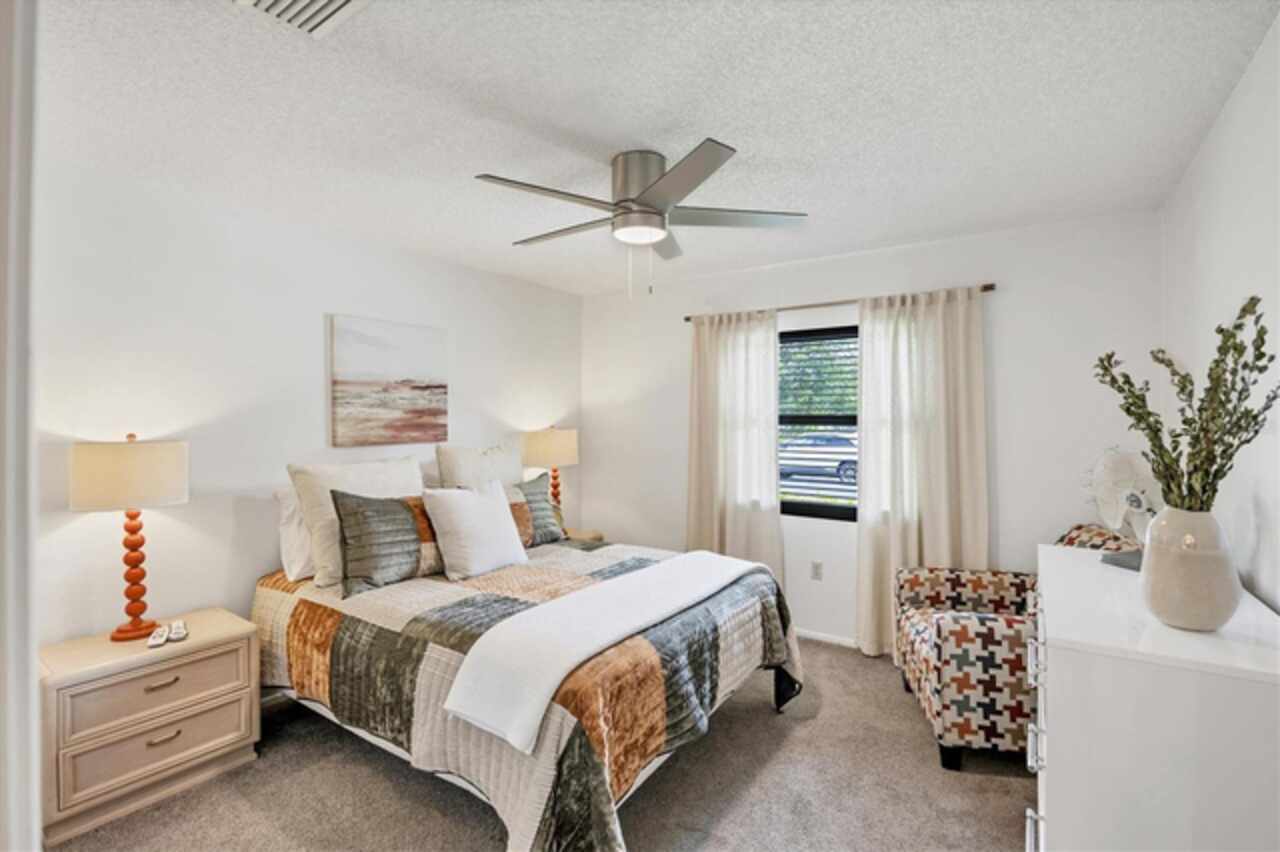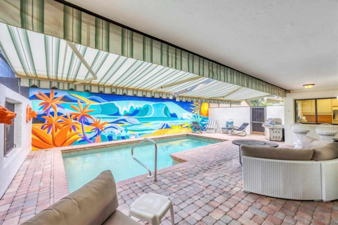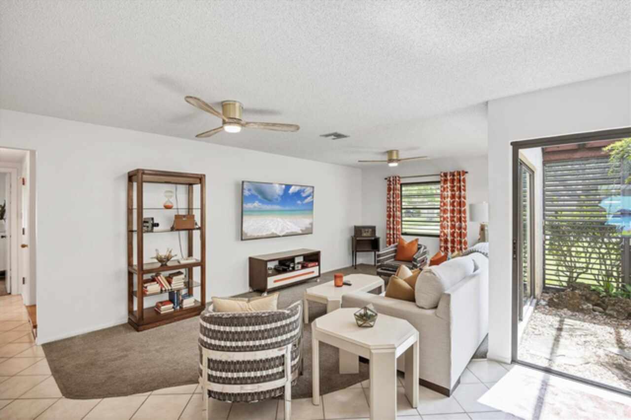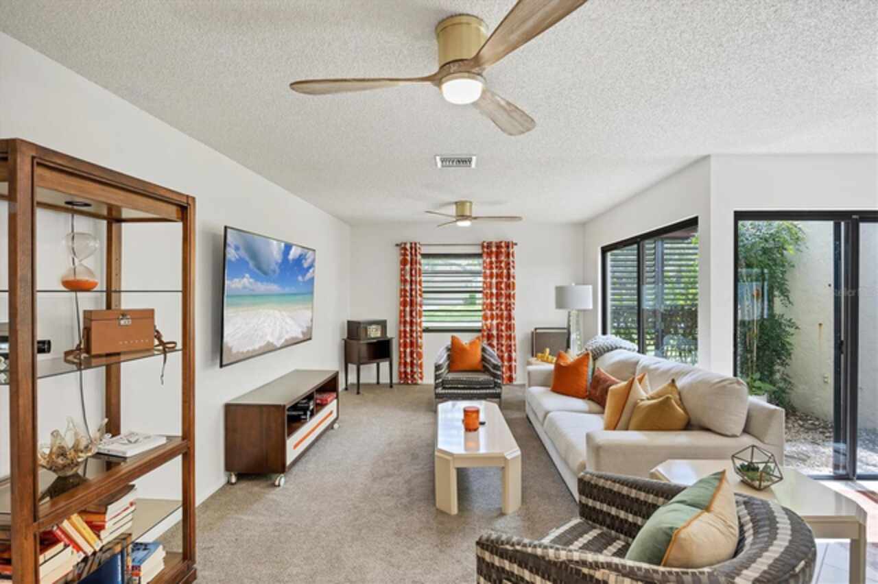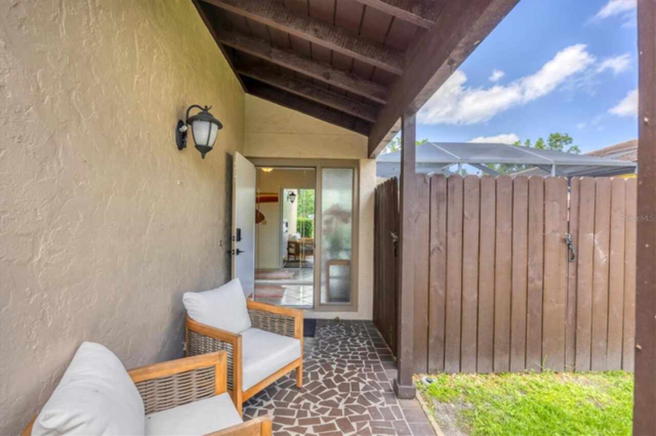 Attention Investors...THIS PooL VillA IS RENTED OUT UNTIL October 2026 @ $2, 500/month. Welcome to GLEN OAKS MANOR...A boutique enclave of large Courtyard Pool Villas occupying dedicated space INSIDE it's OWN PARK designed as a canopy tree neighborhood complete with lakes, paths, gazebos, park benches a beautiful variety of trees and plants AND it is a dog friendly neighborhood. This is an END and CORNER unit that is practically free-standing affording 8 more windows than an interior unit. Be one with nature in your large 33x24 VERY PRIVATE screened courtyard with your own VERY PRIVATE POOL. While this is a villa, it is NOT a condo and has a home owner's Association. Opposite the courtyard is an added bonus...an atrium with water and electric in place...great for an orchid garden, fountain, kitty corral, aviary and it is a great space that brightens the home up! This is a SPLIT FLOOR PLAN with the bedrooms at opposite ends of the home. As another bonus, there is a staircase to a storage room in the attic! The garage door had new rack/rollers, infrastructure and opener have just been updated and the door is hurricane wind rated. The HVAC is only 2 years old. This home is sold furnished as a convenience to the seller and it obviously captures the "70's theme" as it was an air BNB rental. It is currently rented out on an annual lease. Price reduced to $448, 900