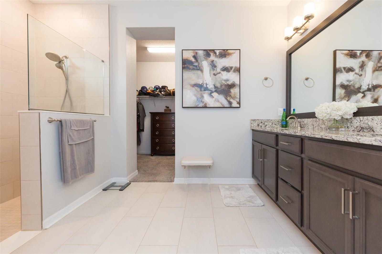 Welcome to the Kimblewick, a beautifully designed 4-bedroom, 3.5-bathroom pool home with den/office and upstairs loft with views of the pond and conservation. The main floor features a luxurious primary suite featuring his/hers dual vanities with granite counters, large walk-in closet and walk-in shower. High ceilings and natural light enhance the open-concept living area, seamlessly flowing into the chef’s kitchen with stainless steel appliances and elegant quartz counters. The formal dining room is adjacent to the kitchen for easy entertaining. Just across the hallway is the den/office featuring glass French door entry. Upstairs, you'll find three additional bedrooms, 2 full bathrooms, and a versatile loft space ideal for a playroom or just relaxing. Relax on the oasis of your covered lanai and enjoy the salt-water and heated pool all year round! The home overlooks the pond and views of the conservation beyond. Enjoy the Florida Lifestyle! Located in the heart of Wesley Chapel, with top-rated Wiregrass Ranch schools, minutes from 3 area hospitals, Wesley Chapel Premium Outlets, restaurants and easy access to I75 & 275. The upcoming Downtown area will make Wesley Chapel a walkable neighborhood with restaurants, shopping and much more!