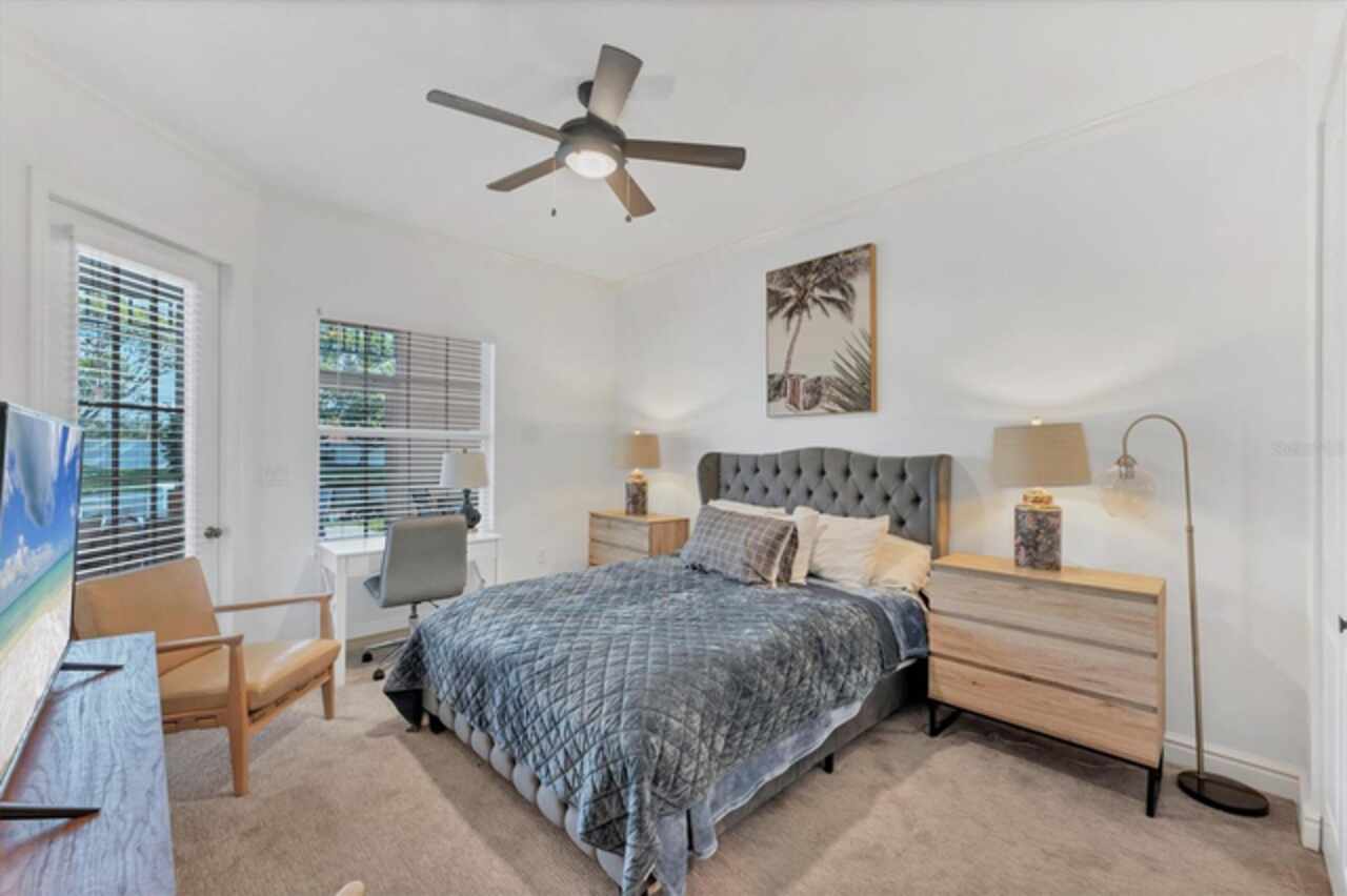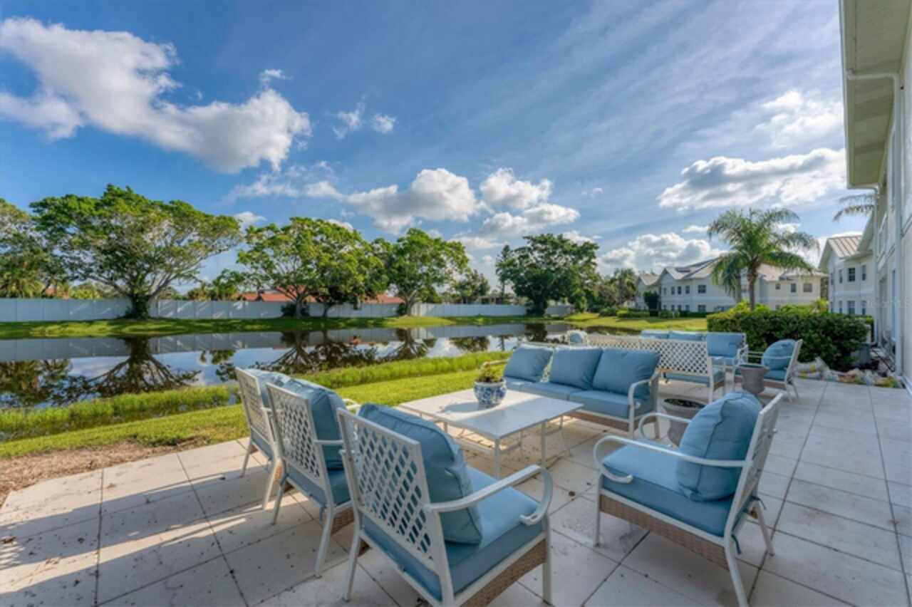 Gorgeous! Luxuriously FURNISHED 3 bedroom, 3 Full bathroom LAKESIDE villa with huge back patio and amazing interior natural light! Kitchen offers stainless steel appliances, subway tile backsplash, Quartz countertops, blonde wood cabinets, farmhouse large sink, pantry closet, and eat-in space. Interior features include wood-look luxury vinyl flooring, custom shelving in all bedroom closets, updated bathrooms, Florida Room with dining area + seating area + desk area. The seller has the flex space shown as a dining room, but new owner can transform it into a 4th bedroom, home office, home gym, etc. Owners enjoy access to heated pool and hot tub, fitness room, 1 month minimum rental policy, and close proximity to IMG Academy facilities. Dont wait to see this one!