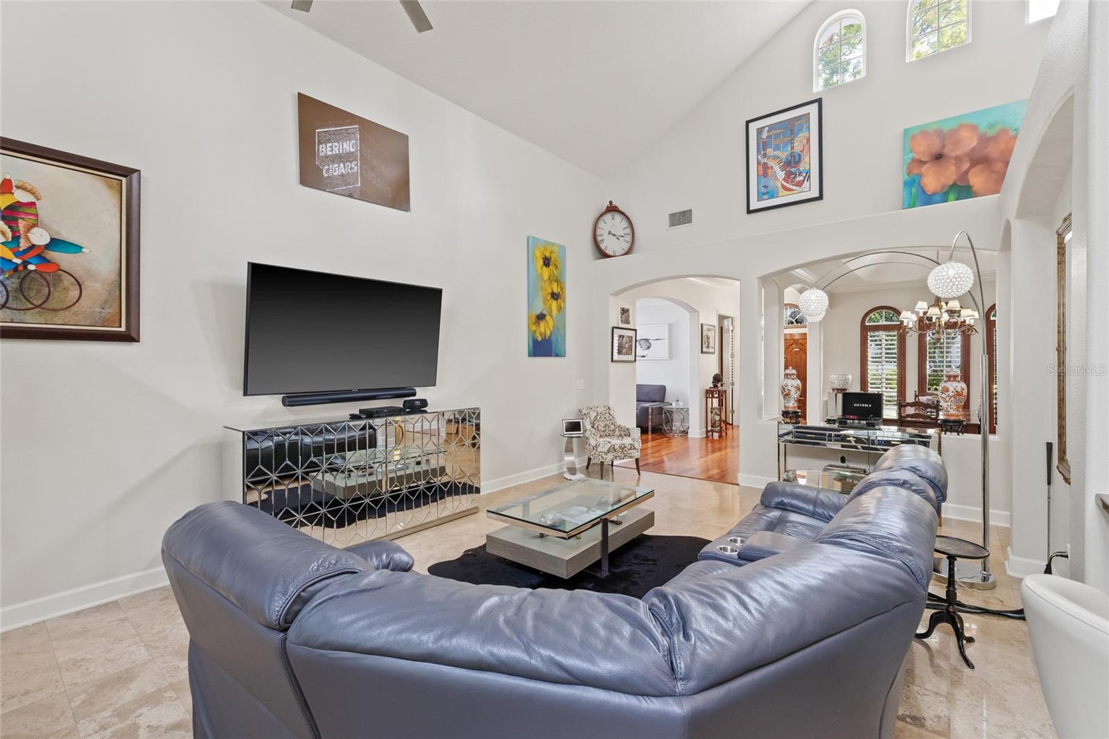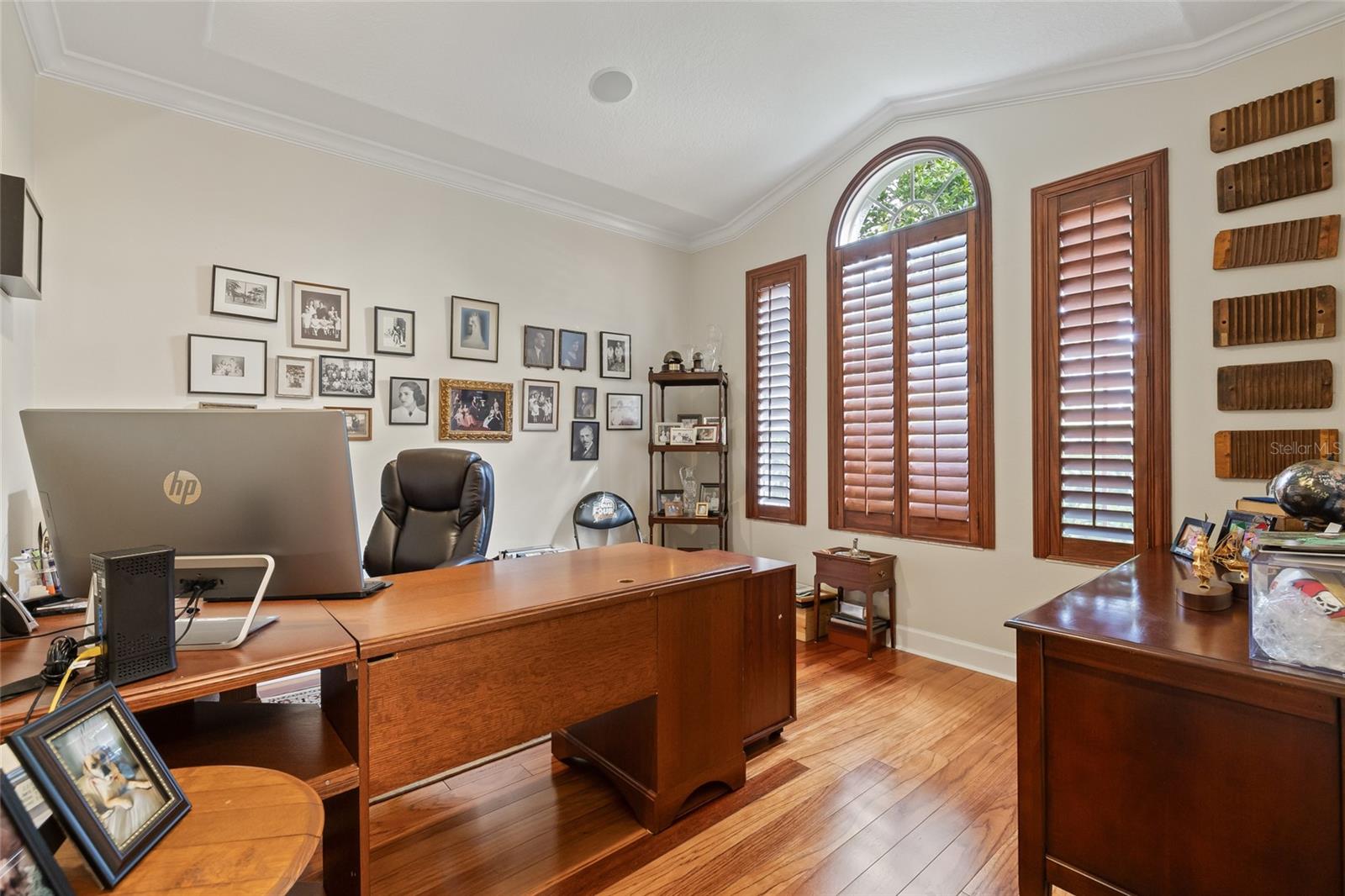 Contemporary South Tampa home in prime location! This stunning 3-bedroom, 2-bathroom home with a tandem 2-car garage sits on a spacious, fenced-in lot in one of South Tampa’s most desirable locations and zoned for Plant High School district. Step inside to soaring cathedral ceilings and an open-concept floor plan designed for effortless living. The chef’s kitchen features a gas stove, stainless steel appliances, granite countertops, and hardwood cabinetry. Gorgeous Brazilian hardwood and travertine flooring flow throughout the home, adding warmth and sophistication. The light-filled primary suite offers a spa-like ensuite bathroom with dual vanities, garden tub and a large glass-enclosed shower, and a generous walk-in closet outfitted with custom built-ins. There is a dedicated office, laundry room and upstairs bonus room/loft. Step out onto your covered lanai that overlooks lush, mature landscaping that is maintained by a sprinkler system. Additional highlights include an air purification system for enhanced indoor air quality, plantation shutters and a gas, tankless hot water heater. Located just minutes from Tampa International Airport, Amalie Arena, and Downtown, this home offers unparalleled convenience. Walk to nearby restaurants, shopping, and everything South Tampa has to offer!