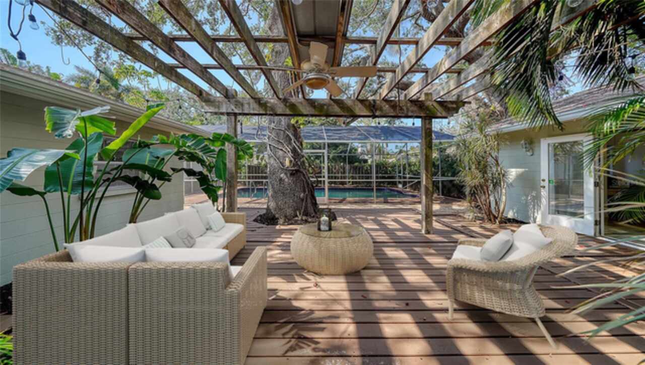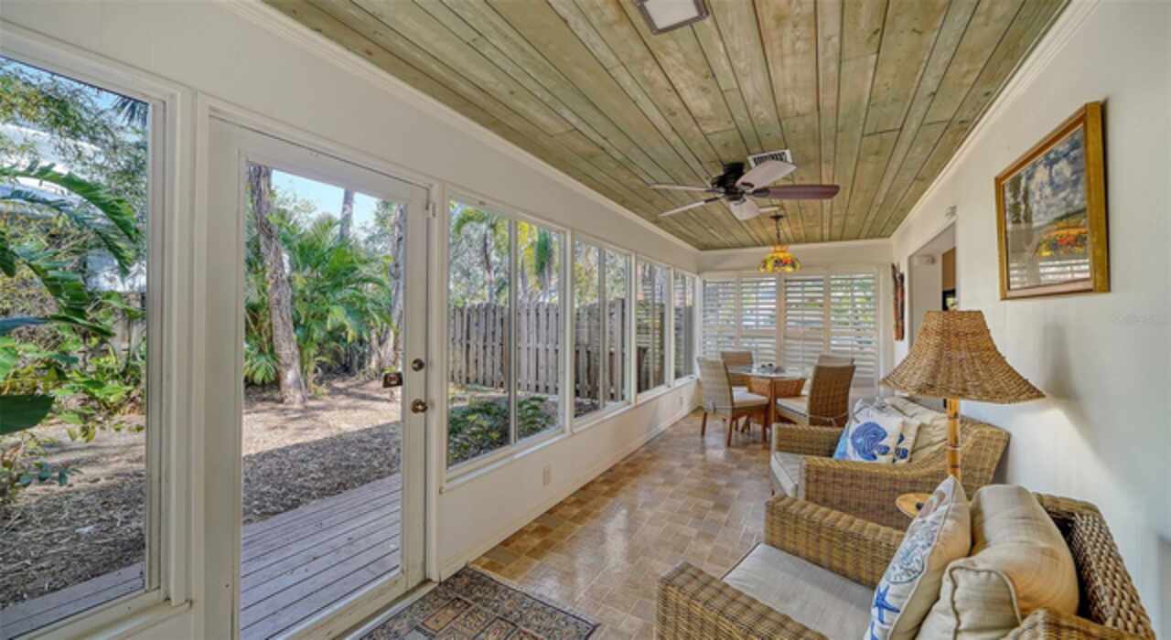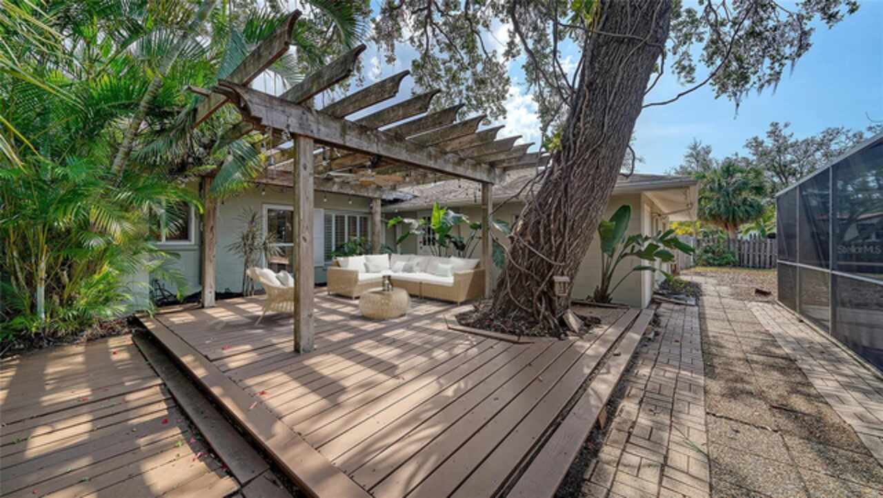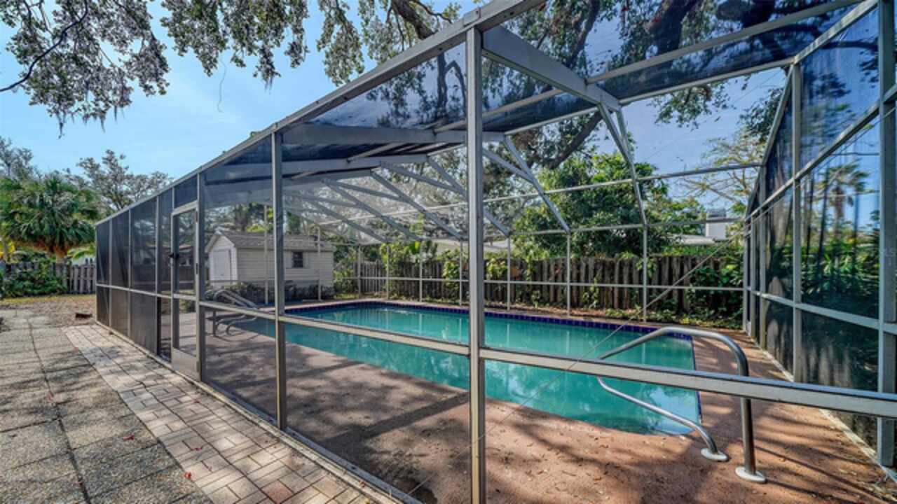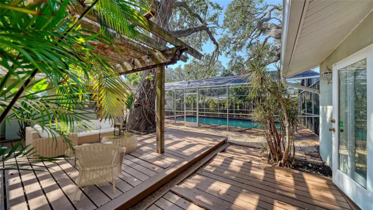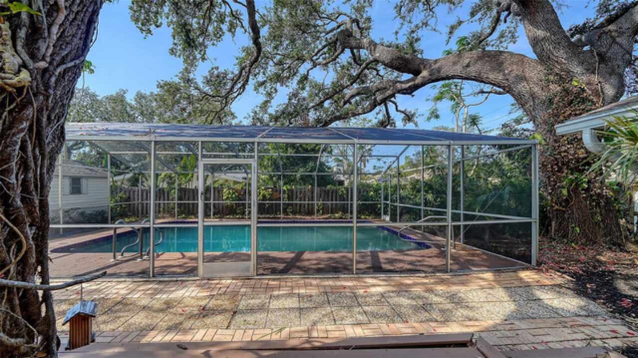 Under contract-accepting backup offers. Discover a rare, expansive property nestled in one of Sarasota’s most coveted “West of Trail” neighborhoods. This .35-acre property sits gracefully above special flood zones and offers convenient access to Downtown Sarasota, Siesta Key, and the prestigious Field Club. Located within the esteemed Southside Elementary School District, this home combines the quiet charm of the Granada neighborhood with easy access to Sarasota’s growing attractions. Follow the winding red brick path inside to a welcoming living room featuring a wood-burning fireplace and cozy atmosphere. The updated kitchen boasts quartz countertops, custom cabinetry, and sunlit views across the serene back courtyard. A distinctive sitting room with tongue-and-groove ceilings, a café dining area, and a peaceful reading nook overlooks one of the many tranquil courtyard settings. In the primary suite, you will find vaulted ceilings, a spacious ensuite bath, and French doors that open onto a pergola-adorned back deck. Two guest bedrooms—one currently configured as an office—are thoughtfully positioned across the home with convenient access to an additional guest bath. Completing this graceful estate is a generously sized screened pool nestled under mature oaks—a perfect backdrop for leisurely outdoor entertaining. This tranquil courtyard residence may serve as your gateway into one of Sarasota’s most cherished neighborhoods, or its impressive 128 feet of lot frontage could provide a remarkable canvas for your forever home. Enjoy the comforts of mainland living while being just minutes away from the powdery sands of Siesta Key beaches and the cultural attractions of downtown Sarasota.