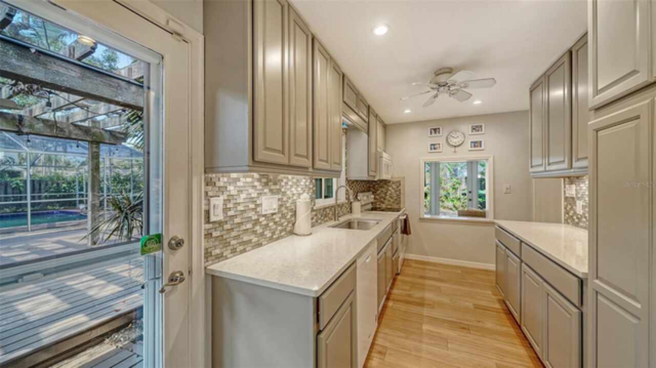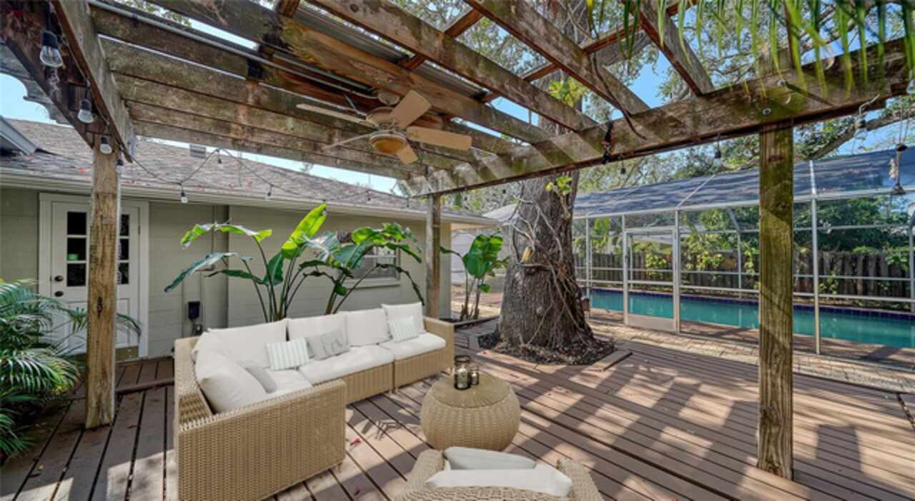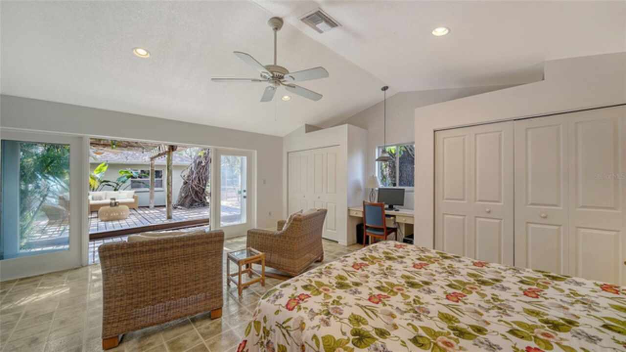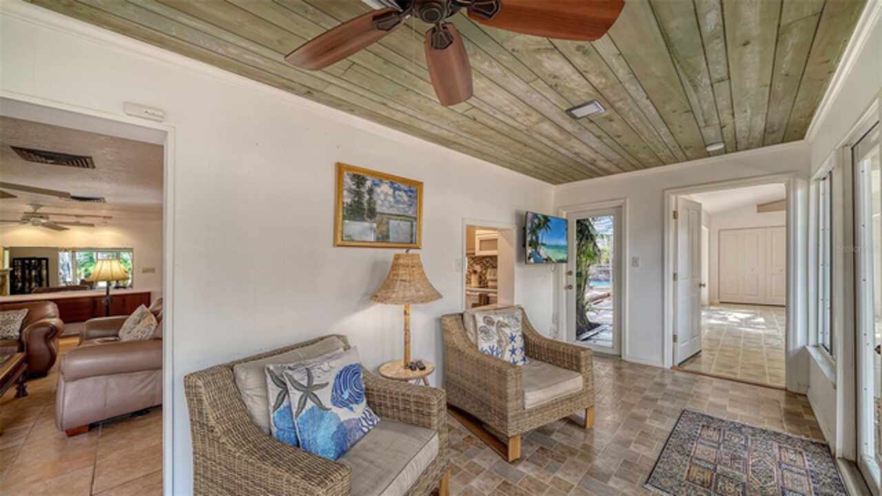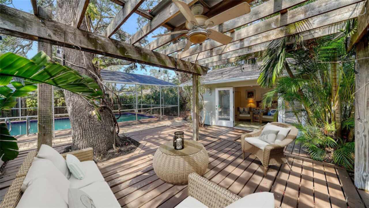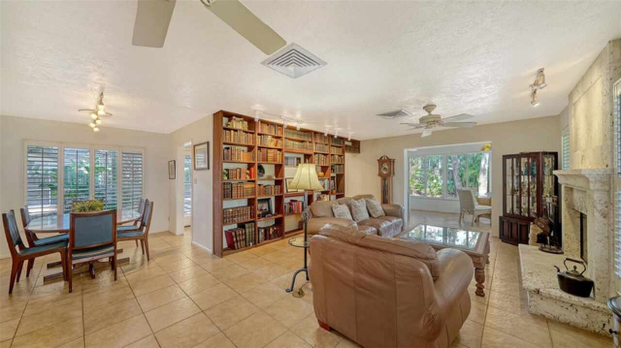 Under contract-accepting backup offers. Discover a rare, expansive property nestled in one of Sarasota’s most coveted “West of Trail” neighborhoods. This .35-acre property sits gracefully above special flood zones and offers convenient access to Downtown Sarasota, Siesta Key, and the prestigious Field Club. Located within the esteemed Southside Elementary School District, this home combines the quiet charm of the Granada neighborhood with easy access to Sarasota’s growing attractions. Follow the winding red brick path inside to a welcoming living room featuring a wood-burning fireplace and cozy atmosphere. The updated kitchen boasts quartz countertops, custom cabinetry, and sunlit views across the serene back courtyard. A distinctive sitting room with tongue-and-groove ceilings, a café dining area, and a peaceful reading nook overlooks one of the many tranquil courtyard settings. In the primary suite, you will find vaulted ceilings, a spacious ensuite bath, and French doors that open onto a pergola-adorned back deck. Two guest bedrooms—one currently configured as an office—are thoughtfully positioned across the home with convenient access to an additional guest bath. Completing this graceful estate is a generously sized screened pool nestled under mature oaks—a perfect backdrop for leisurely outdoor entertaining. This tranquil courtyard residence may serve as your gateway into one of Sarasota’s most cherished neighborhoods, or its impressive 128 feet of lot frontage could provide a remarkable canvas for your forever home. Enjoy the comforts of mainland living while being just minutes away from the powdery sands of Siesta Key beaches and the cultural attractions of downtown Sarasota.