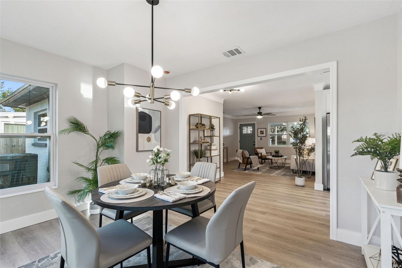 Under contract-accepting backup offers. Welcome home to this beautiful 2 bedroom 2 bath NON FLOOD ZONE St Petersburg BLOCK CONSTRUCTION home! If you are looking for the perfect starter or family home, look no further. This home has been TOTALLY RENOVATED by the owner and includes upgrades perfectly fit for a first time home buyer or growing family. The totally remodeled kitchen features solid wood cabinets, granite countertops, stainless steel appliances, custom backsplash, and a designer faucet. The bathroom features the same level of upgrades including custom vanity, granite countertops, designer tile, and new hardware. Other upgrades include NEW WATER HEATER (2025), NEW ROOF (2025), NEW IMPACT WINDOWS (2025), NEW GARAGE DOOR & MOTOR (2025), new flooring throughout, new paint, new LED light fixtures, and MORE!! All of these amenities and upgrades are complimented by the unique curb appeal of the home which sits on a quiet street! This home has many desirable features and is a must see. Please call us or use ShowingTime to set up a showing today!