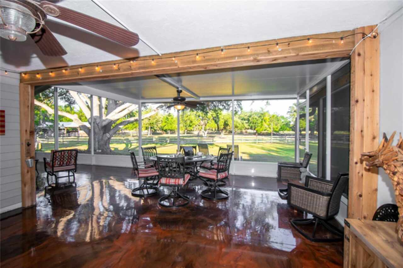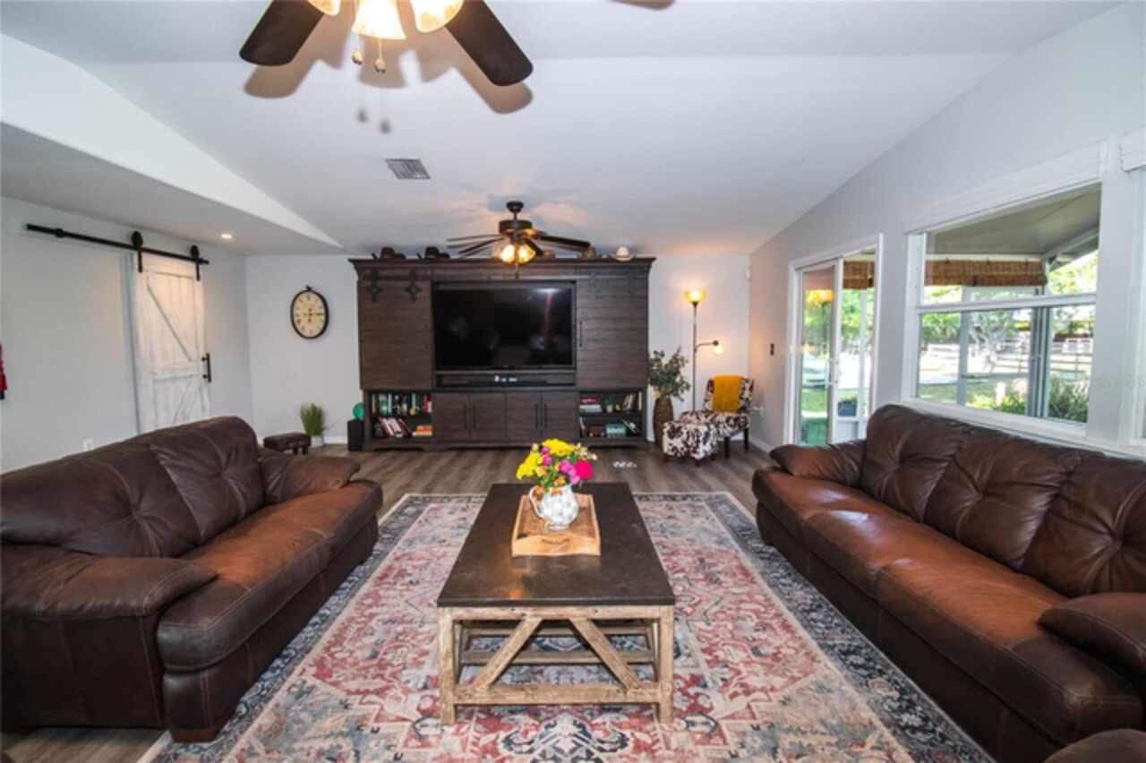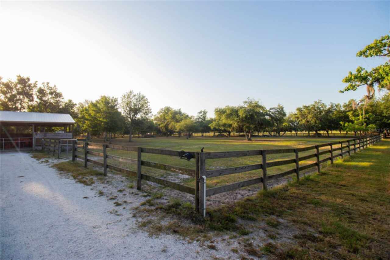 Welcome to Cool Ranch – Your Private Paradise in Old Myakka Just minutes from the Fruitville Road corridor, down scenic canopy roads and tucked away in serene privacy, you'll find Cool Ranch—a beautifully maintained 5+ acres gated estate in the heart of Old Myakka. Surrounded by majestic oak trees and peaceful pastures, this one-of-a-kind property offers the perfect blend of country charm, modern updates, and tranquil living. This newly renovated three-bedroom, two-bathroom ranch-style home offers an open-concept layout with vaulted ceilings and plank flooring throughout. The bright, beautifully designed kitchen features a large center island with seating, double ovens, abundant cabinetry, pantry storage, and a reverse osmosis system—ideal for both cooking and entertaining. A whole-home water softener system adds extra convenience. Slide open the glass doors to an expansive screened lanai and enjoy peaceful mornings with coffee while watching deer and wildlife just steps away. Whether you're entertaining guests or unwinding in solitude, this home was designed to bring the outdoors in and a lifestyle of comfort and connection with nature. The spacious primary suite features scenic views of the pond and pastures, a large walk-in closet, and a spa-like en-suite bath. One of the guest rooms connects to a versatile bonus room with exterior access—ideal as a home office, gym, nursery, or fourth bedroom. Another guest room opens to a private hot tub area surrounded by a serene Zen garden, perfect for sunbathing, stargazing, or relaxing evenings with friends. Additional features include: Dedicated laundry room with exterior entry Custom-built dog wash with hot/cold water Outdoor “summer shower” for post-beach or post-workout refresh Additional outdoor shower near the hot tub Small vegetable garden with tomatoes and peppers Also located on the property is a fully equipped guest cottage with a full-size kitchen—perfect for a mother-in-law suite, guest accommodations, or short-term rental income potential. Equestrian lovers will feel right at home with: Three fully fenced pastures ideal for riding, training, or grazing. Stocked Pond A 75x30 barn with two 12x12 stalls (with space to add more) A climate-controlled tack and feed room Ample storage for farm equipment and gear With TeraNova Equestrian Center just minutes away, you’ll have convenient access to top-tier competitions and events. The Sarasota Polo Club is also a short drive—perfect for weekend outings filled with picnics and polo matches. Recent updates & location highlights include: Brand new roof (March 2025) with a 20-year transferable warranty 7 minutes to Myakka State Park 9 minutes to TeraNova Equestrian Center 15 minutes to the Sarasota Polo Grounds 20 minutes to shopping, dining, and everyday essentials 15 minutes to I-75 18 miles to Sarasota-Bradenton International Airport 17 miles to the nearest beach Whether you're seeking a peaceful retreat, an equestrian escape, or an ideal income-producing property, Cool Ranch offers the lifestyle you've been dreaming of—where modern comfort meets timeless country charm.