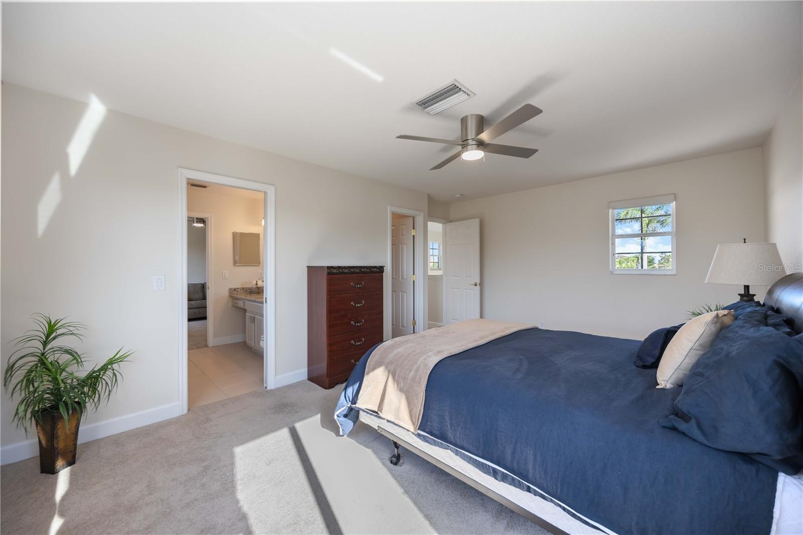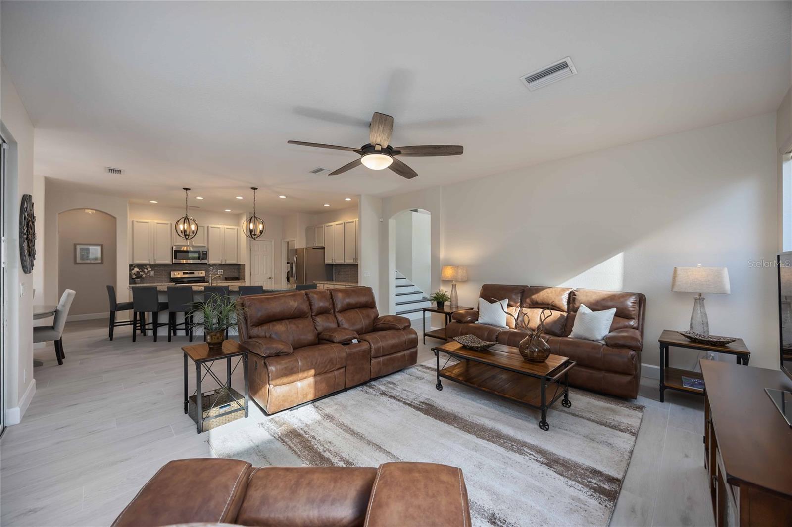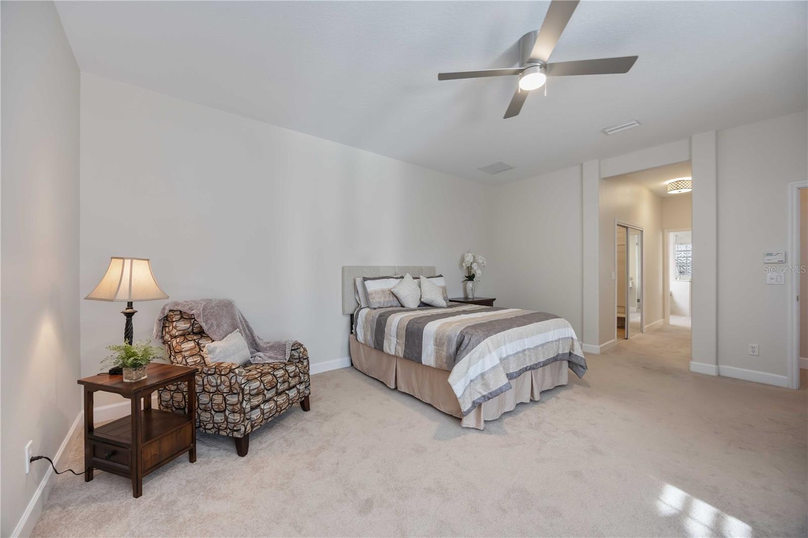 Ceiling Fans(s), High Ceilings, Kitchen/Family Room Combo, Open Floorplan, Primary Bedroom Main Floor, Solid Surface Counters, Thermostat, Walk-In Closet(s)