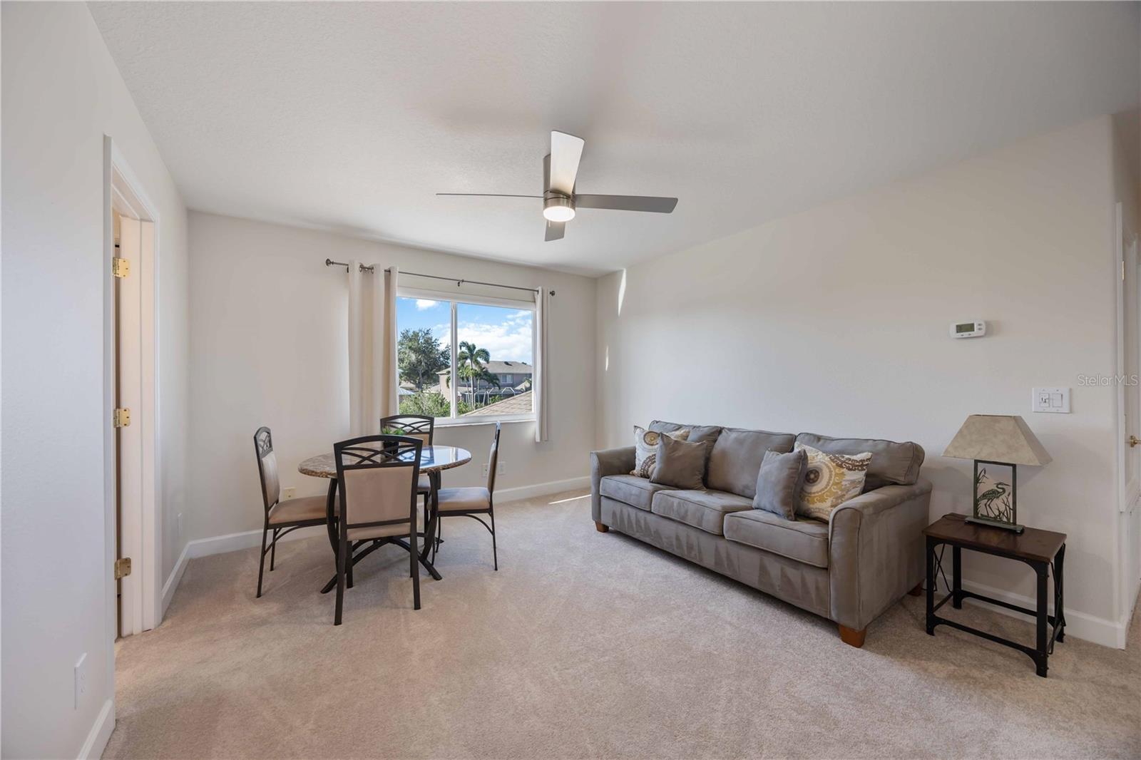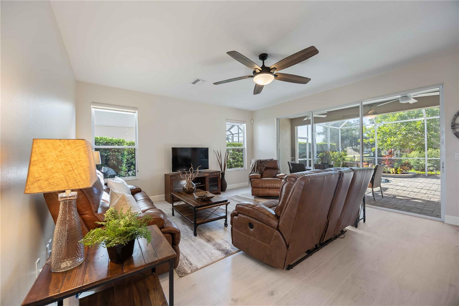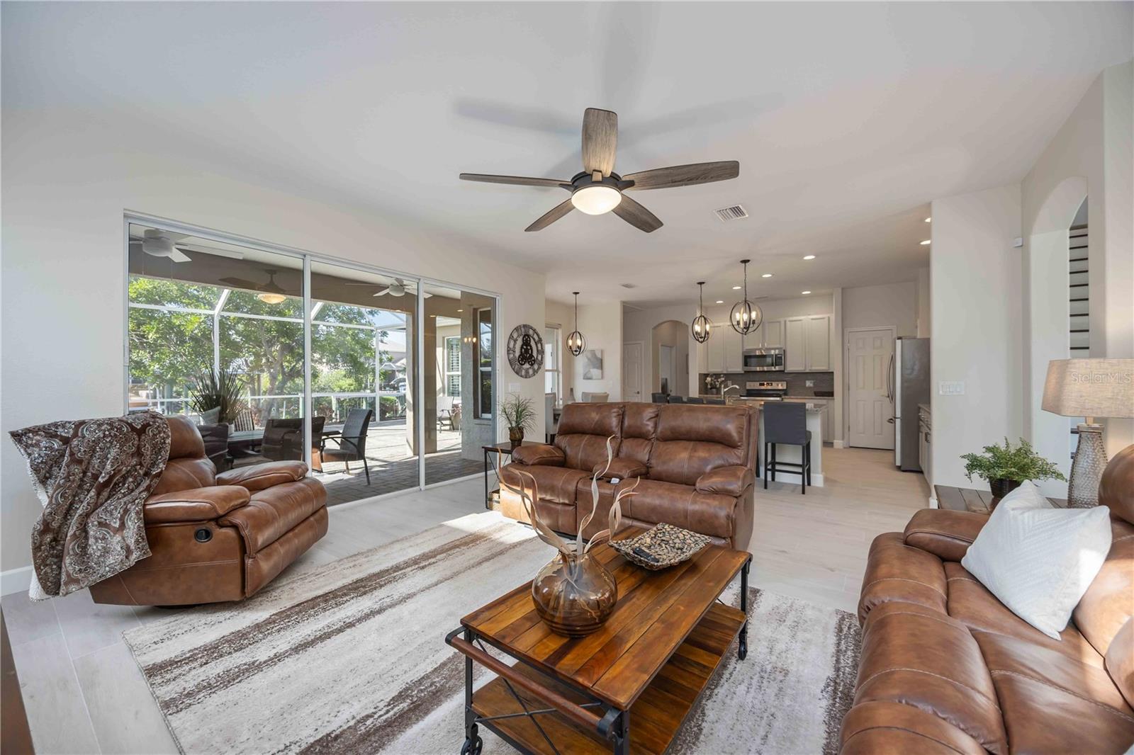 Ceiling Fans(s), High Ceilings, Kitchen/Family Room Combo, Open Floorplan, Primary Bedroom Main Floor, Solid Surface Counters, Thermostat, Walk-In Closet(s)