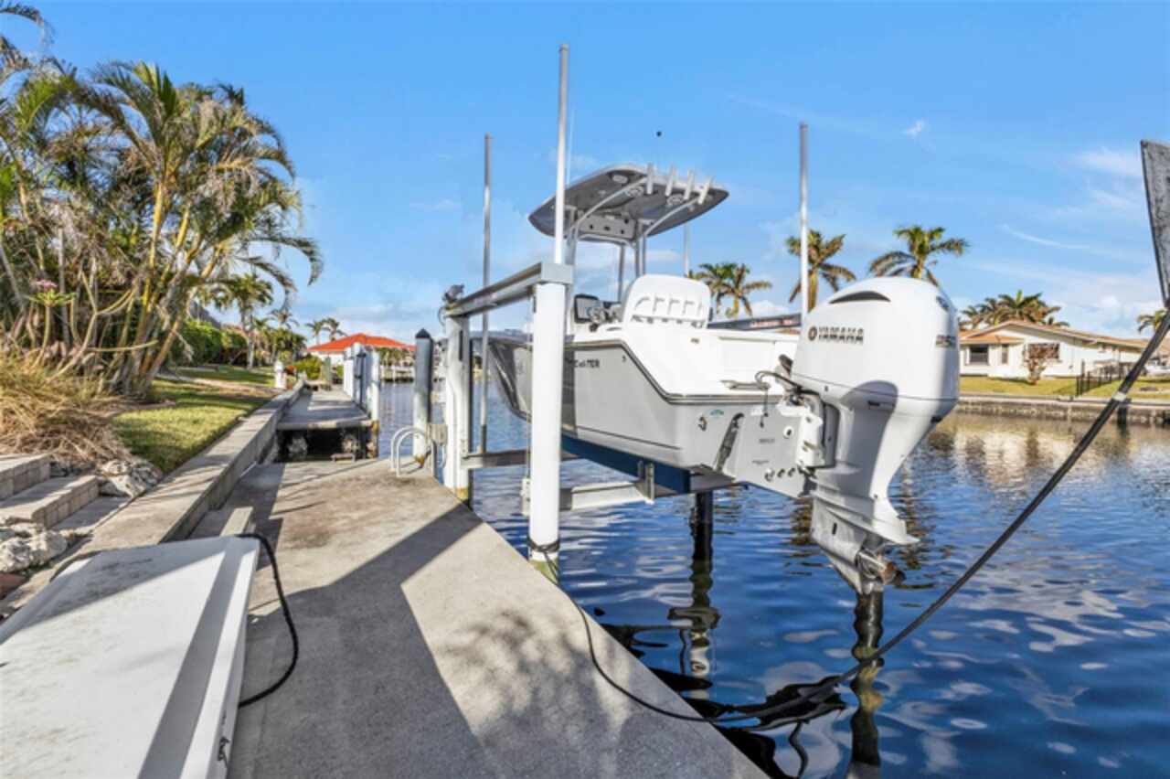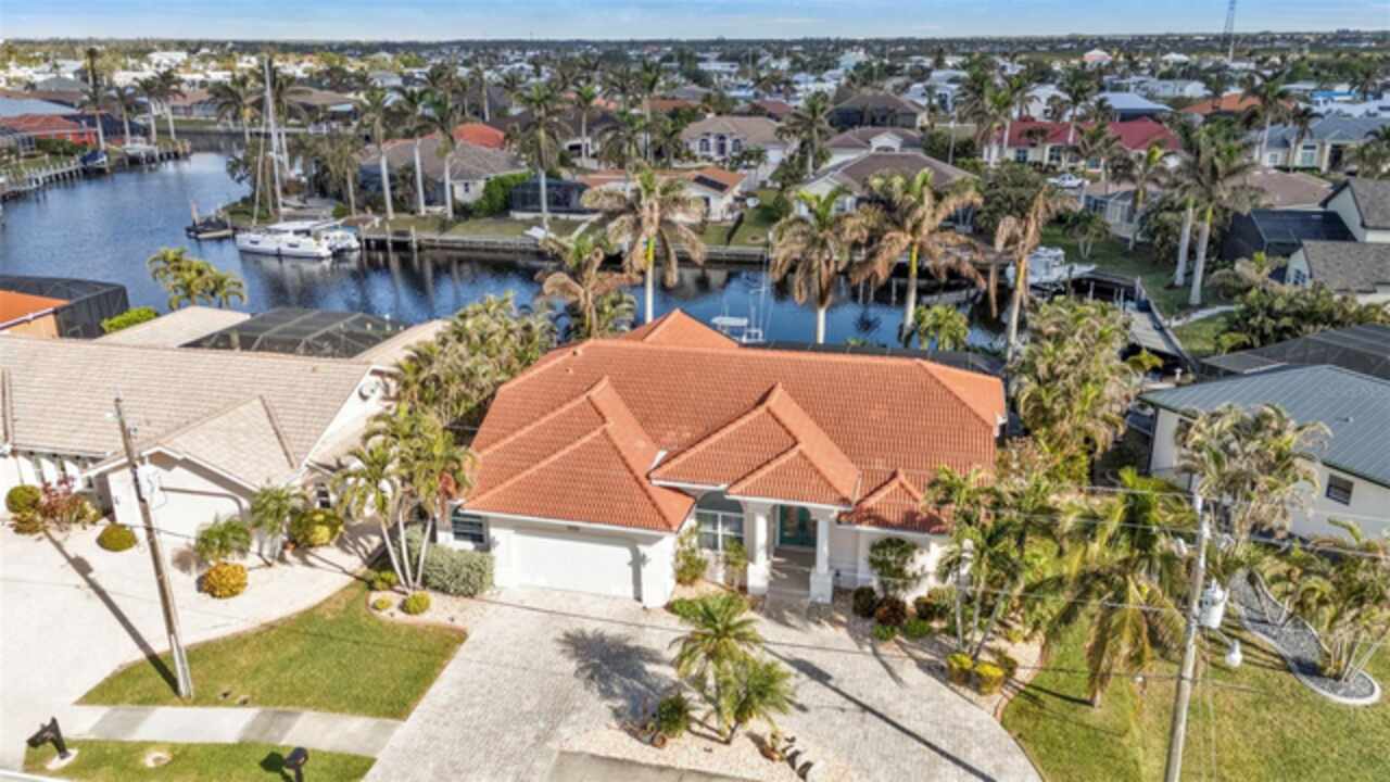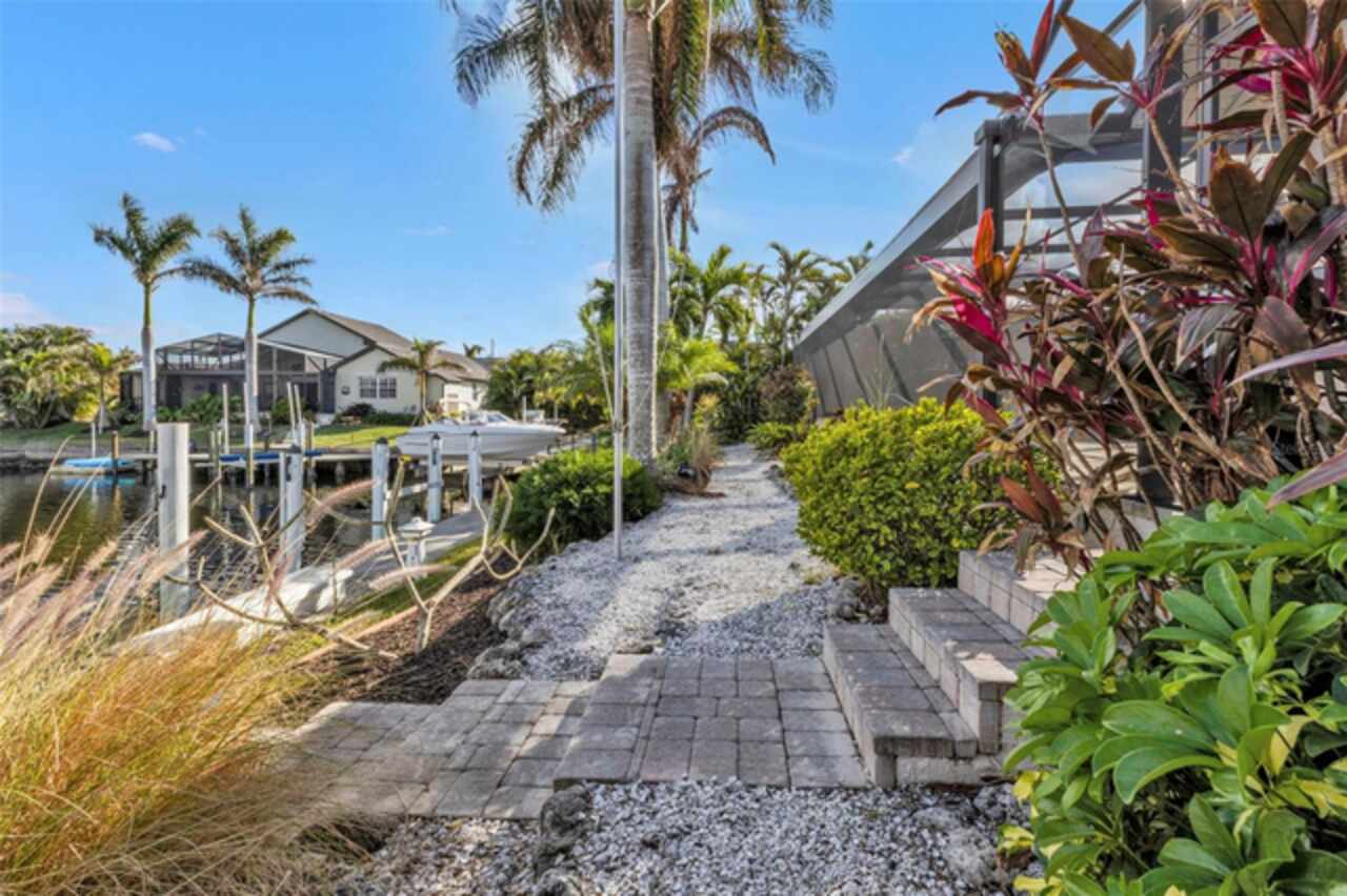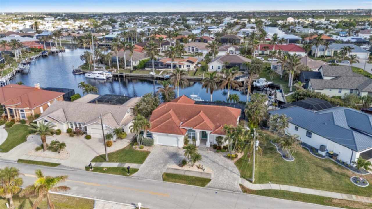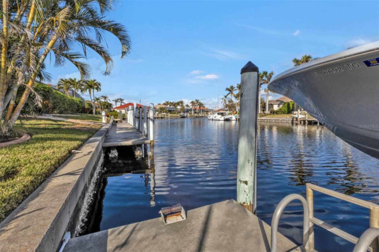 Custom Waterfront Paradise with Sailboat Access in Punta Gorda Isles! Perfectly situated on a serene canal with direct access to Charlotte Harbor and beyond! This custom-built 3-bedroom, 2-bathroom home is a true Florida gem, offering luxury, comfort, and stunning water views. Enter through the leaded double-entry doors into a beautifully designed space featuring tile flooring throughout, volume ceilings, and an open floor plan that seamlessly blends indoor and outdoor living. The spacious living and dining areas have panoramic views of the pool, lanai, and canal, setting the tone for relaxation and entertainment. The chef’s kitchen boasts granite countertops, a breakfast bar, stainless steel appliances, and a sunny dining nook perfect for casual meals. The living room is filled with natural light with large windows and sliding glass doors, creating a warm and inviting atmosphere. The luxurious king-size master suite features a spacious sitting area, dual closets, and an en-suite bathroom complete with a jetted tub, walk-in shower, dual sinks, and a private water closet. The split-bedroom floor plan ensures privacy, with two large guest bedrooms on the opposite side of the home. One guest room even includes a Murphy bed, ideal for flexible use of the space. Step outside to your tropical oasis, where pocketing sliding glass doors open to the expansive lanai and pool area. The saltwater pool system, updated in 2024, is perfect for year-round enjoyment, while the paver deck and lush landscaping create a private retreat. Brand new pool heater added in 2025. Oversized garage has ample workspace and storage for all of your projects. A 55’ concrete dock with water, electric, and a 6, 000 lb. boat lift are steps away, making boating a breeze. Additional highlights include, 2019 Roof and impact windows for peace of mind, lanai has hurricane shutters on an inside track, circular paver driveway for added curb appeal. Located in the heart of Punta Gorda Isles, this home is close to restaurants, shops, and entertainment, while offering the ultimate in waterfront living. Don’t wait—schedule your private showing today and start living your best Florida life!