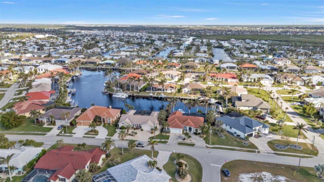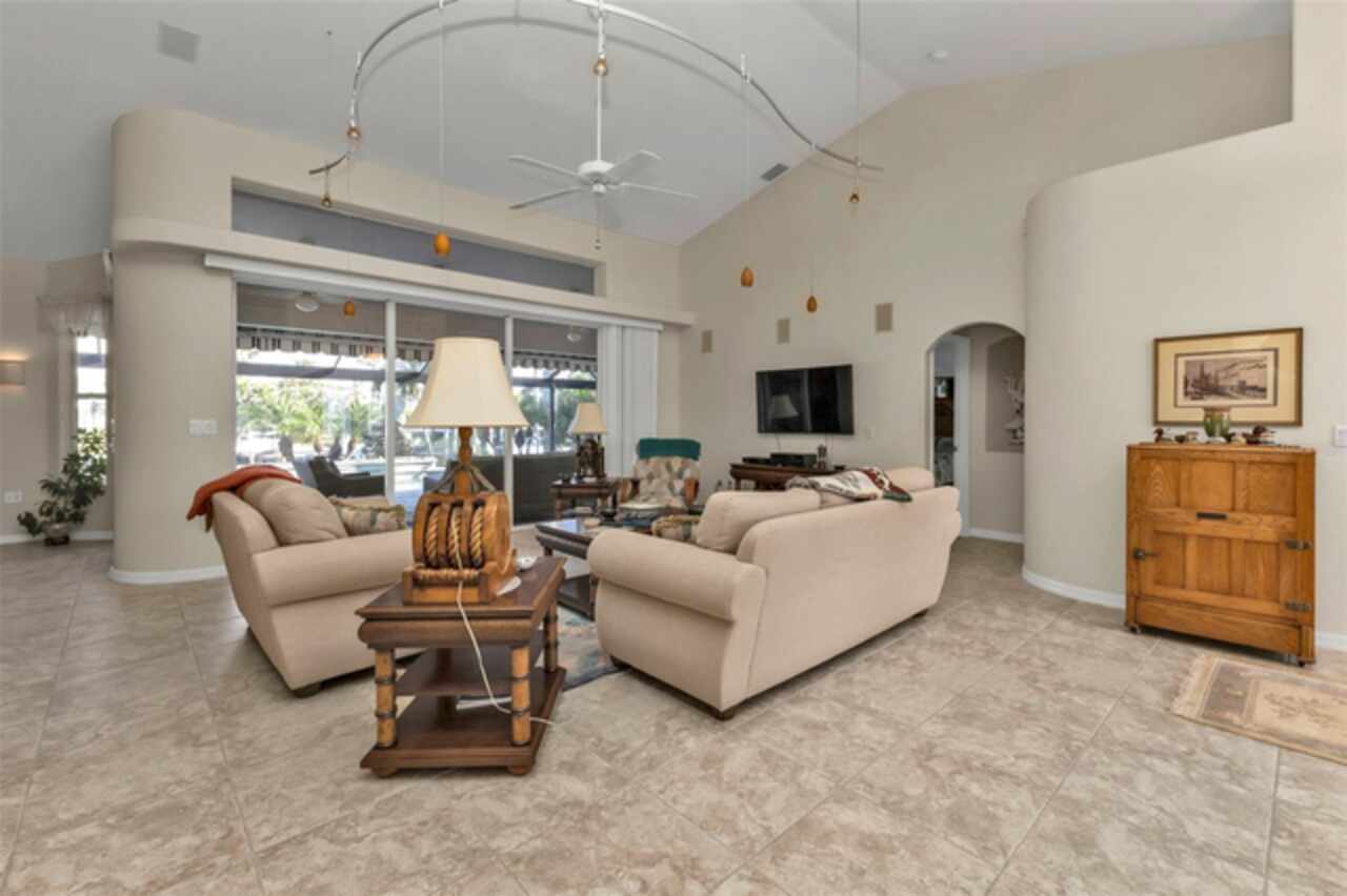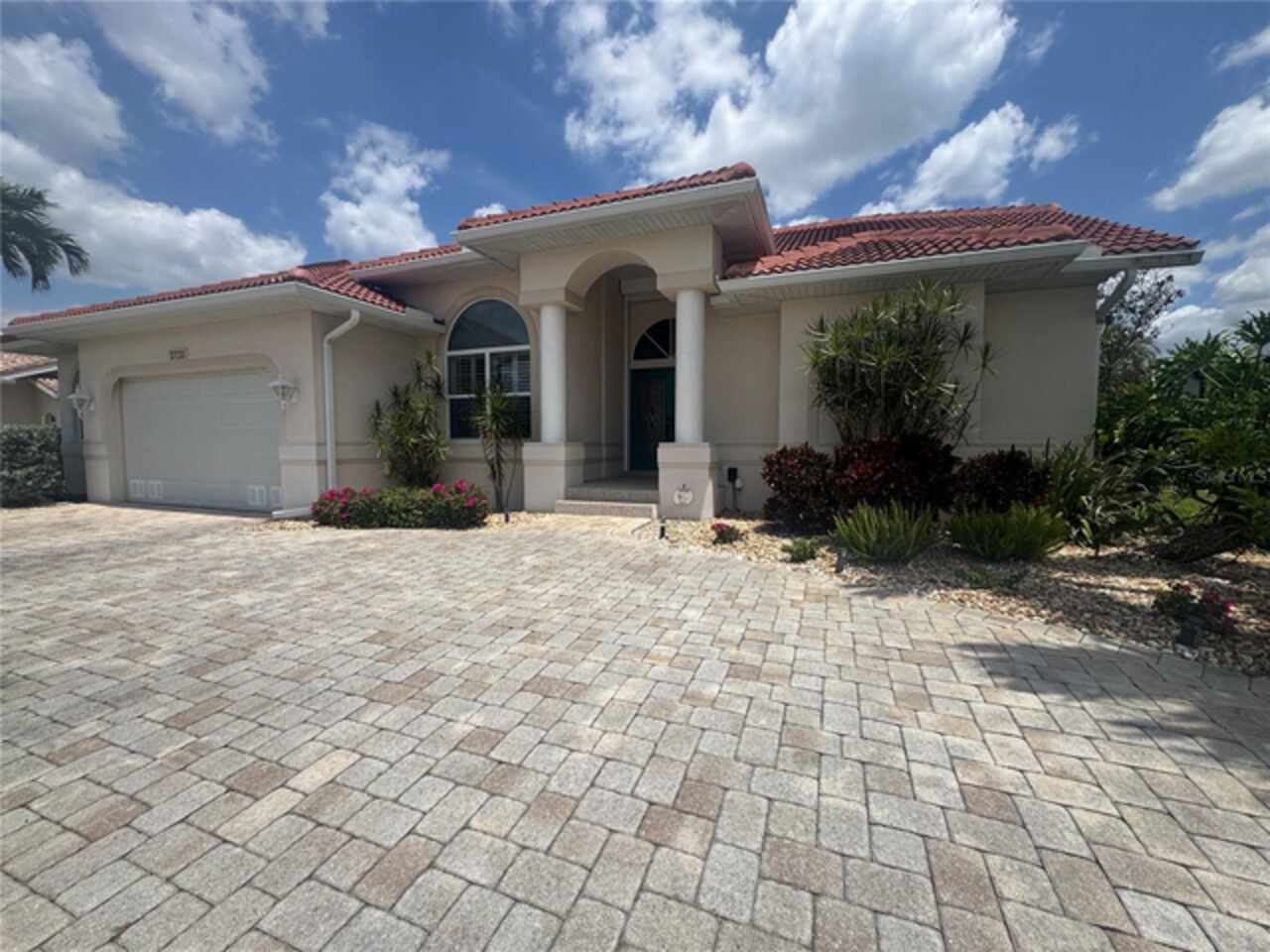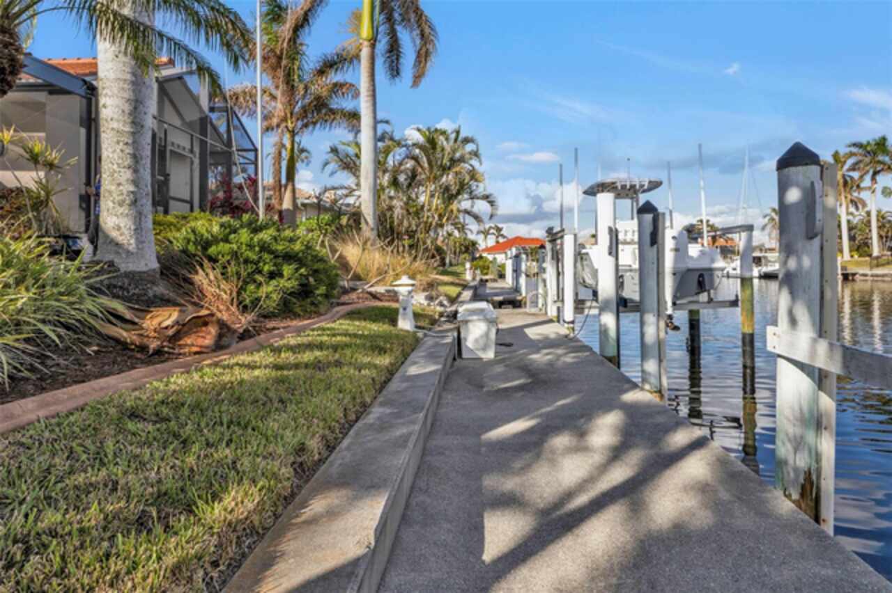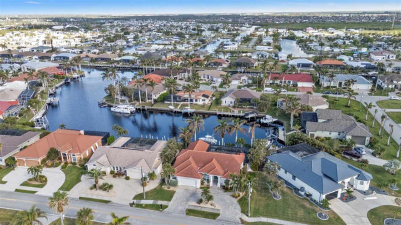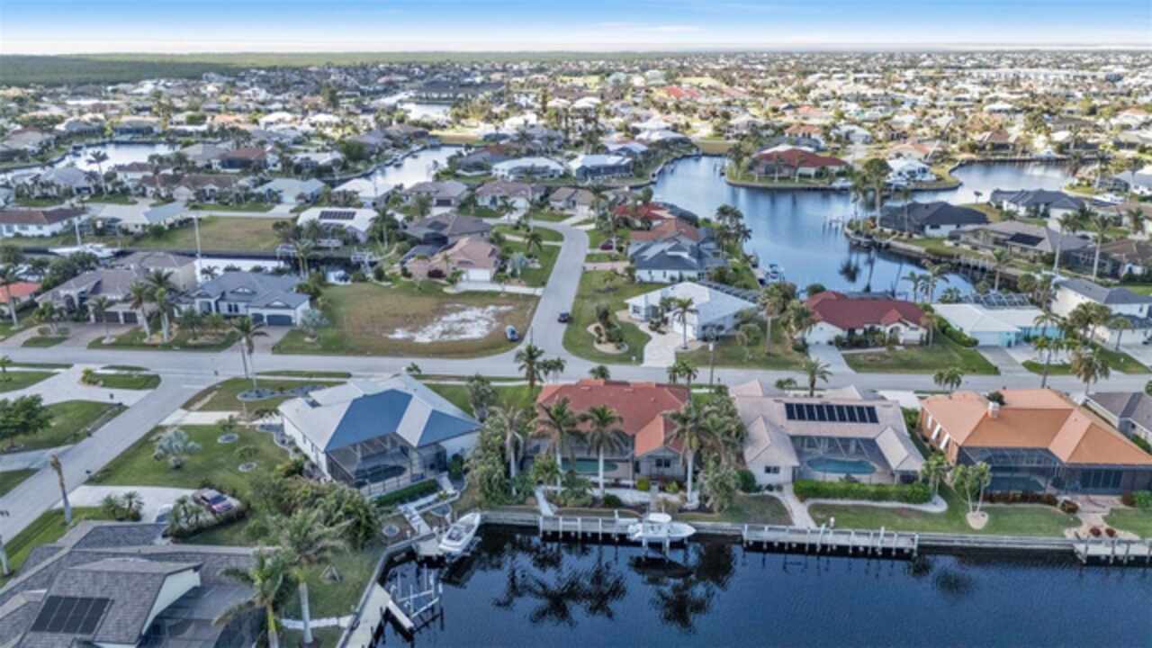 Custom Waterfront Paradise with Sailboat Access in Punta Gorda Isles! Perfectly situated on a serene canal with direct access to Charlotte Harbor and beyond! This custom-built 3-bedroom, 2-bathroom home is a true Florida gem, offering luxury, comfort, and stunning water views. Enter through the leaded double-entry doors into a beautifully designed space featuring tile flooring throughout, volume ceilings, and an open floor plan that seamlessly blends indoor and outdoor living. The spacious living and dining areas have panoramic views of the pool, lanai, and canal, setting the tone for relaxation and entertainment. The chef’s kitchen boasts granite countertops, a breakfast bar, stainless steel appliances, and a sunny dining nook perfect for casual meals. The living room is filled with natural light with large windows and sliding glass doors, creating a warm and inviting atmosphere. The luxurious king-size master suite features a spacious sitting area, dual closets, and an en-suite bathroom complete with a jetted tub, walk-in shower, dual sinks, and a private water closet. The split-bedroom floor plan ensures privacy, with two large guest bedrooms on the opposite side of the home. One guest room even includes a Murphy bed, ideal for flexible use of the space. Step outside to your tropical oasis, where pocketing sliding glass doors open to the expansive lanai and pool area. The saltwater pool system, updated in 2024, is perfect for year-round enjoyment, while the paver deck and lush landscaping create a private retreat. Brand new pool heater added in 2025. Oversized garage has ample workspace and storage for all of your projects. A 55’ concrete dock with water, electric, and a 6, 000 lb. boat lift are steps away, making boating a breeze. Additional highlights include, 2019 Roof and impact windows for peace of mind, lanai has hurricane shutters on an inside track, circular paver driveway for added curb appeal. Located in the heart of Punta Gorda Isles, this home is close to restaurants, shops, and entertainment, while offering the ultimate in waterfront living. Don’t wait—schedule your private showing today and start living your best Florida life!