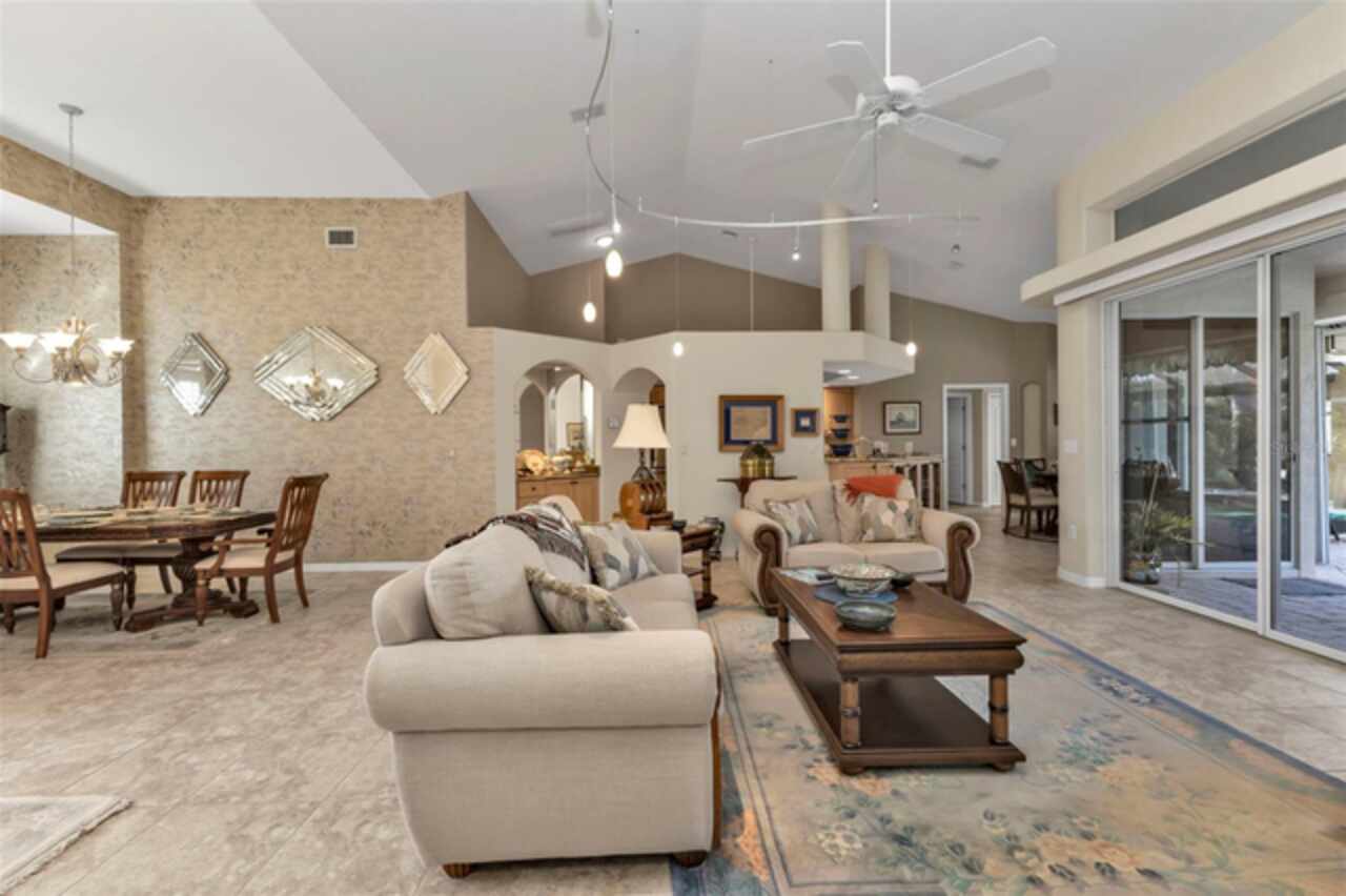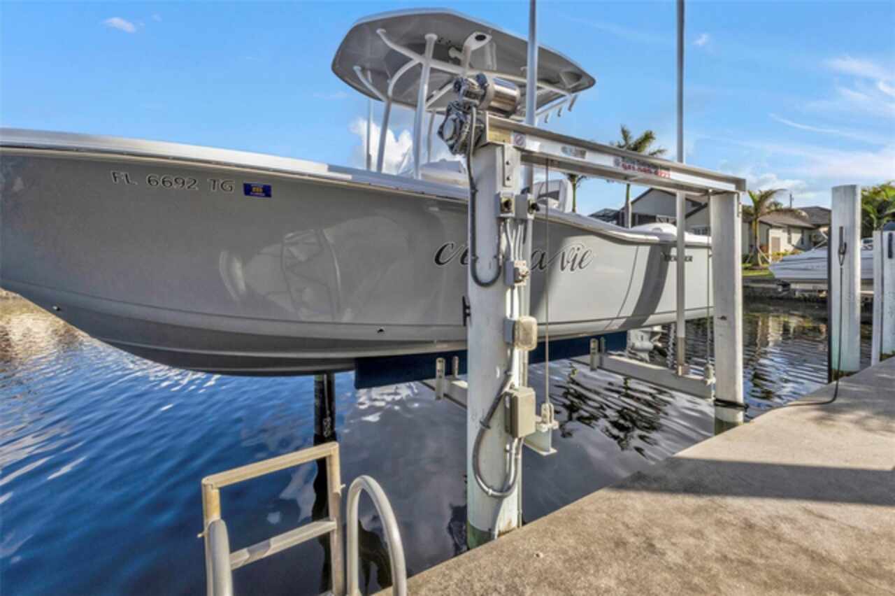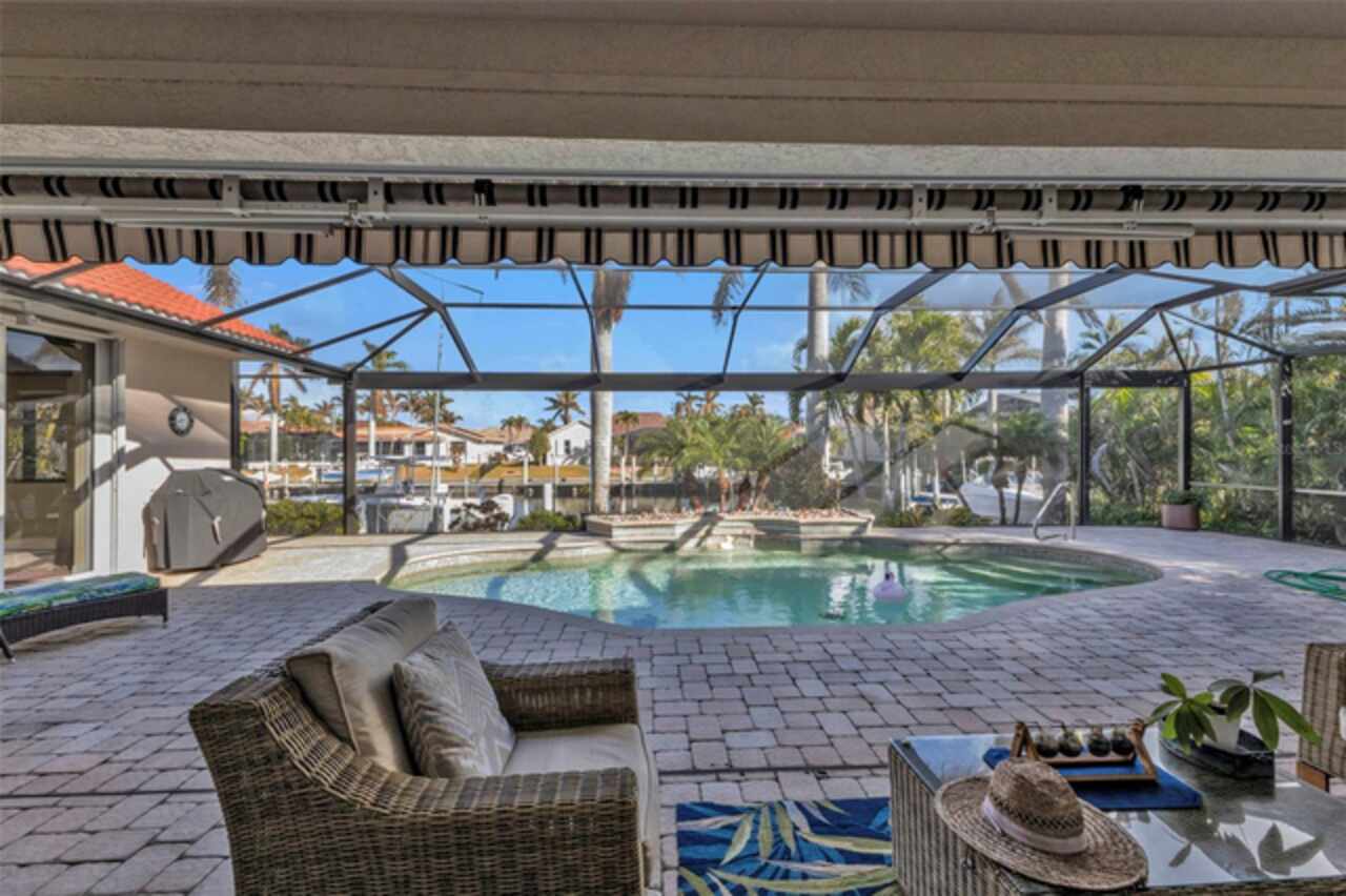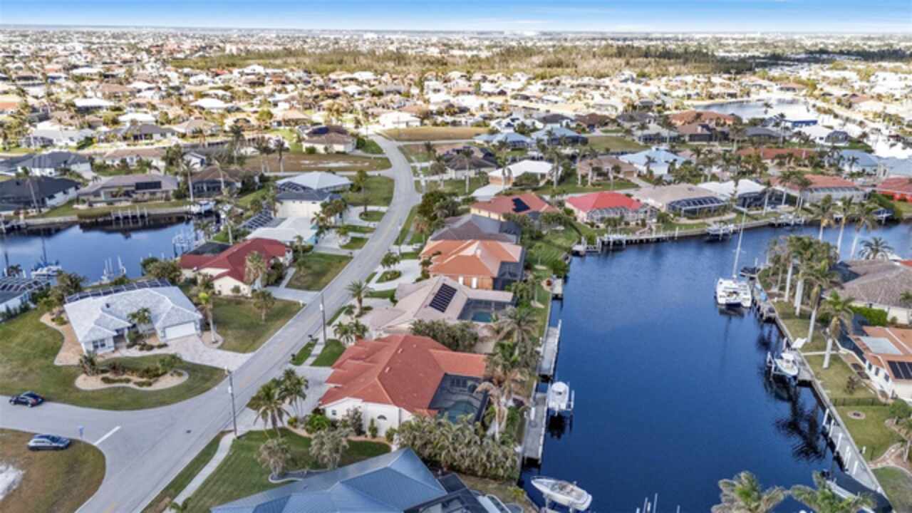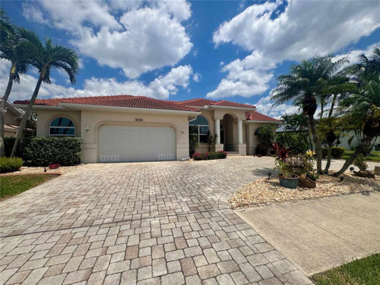 Custom Waterfront Paradise with Sailboat Access in Punta Gorda Isles! Perfectly situated on a serene canal with direct access to Charlotte Harbor and beyond! This custom-built 3-bedroom, 2-bathroom home is a true Florida gem, offering luxury, comfort, and stunning water views. Enter through the leaded double-entry doors into a beautifully designed space featuring tile flooring throughout, volume ceilings, and an open floor plan that seamlessly blends indoor and outdoor living. The spacious living and dining areas have panoramic views of the pool, lanai, and canal, setting the tone for relaxation and entertainment. The chef’s kitchen boasts granite countertops, a breakfast bar, stainless steel appliances, and a sunny dining nook perfect for casual meals. The living room is filled with natural light with large windows and sliding glass doors, creating a warm and inviting atmosphere. The luxurious king-size master suite features a spacious sitting area, dual closets, and an en-suite bathroom complete with a jetted tub, walk-in shower, dual sinks, and a private water closet. The split-bedroom floor plan ensures privacy, with two large guest bedrooms on the opposite side of the home. One guest room even includes a Murphy bed, ideal for flexible use of the space. Step outside to your tropical oasis, where pocketing sliding glass doors open to the expansive lanai and pool area. The saltwater pool system, updated in 2024, is perfect for year-round enjoyment, while the paver deck and lush landscaping create a private retreat. Brand new pool heater added in 2025. Oversized garage has ample workspace and storage for all of your projects. A 55’ concrete dock with water, electric, and a 6, 000 lb. boat lift are steps away, making boating a breeze. Additional highlights include, 2019 Roof and impact windows for peace of mind, lanai has hurricane shutters on an inside track, circular paver driveway for added curb appeal. Located in the heart of Punta Gorda Isles, this home is close to restaurants, shops, and entertainment, while offering the ultimate in waterfront living. Don’t wait—schedule your private showing today and start living your best Florida life!