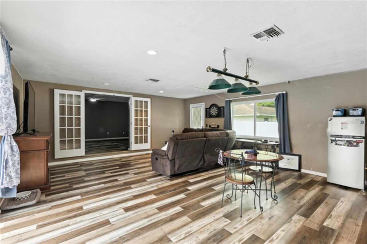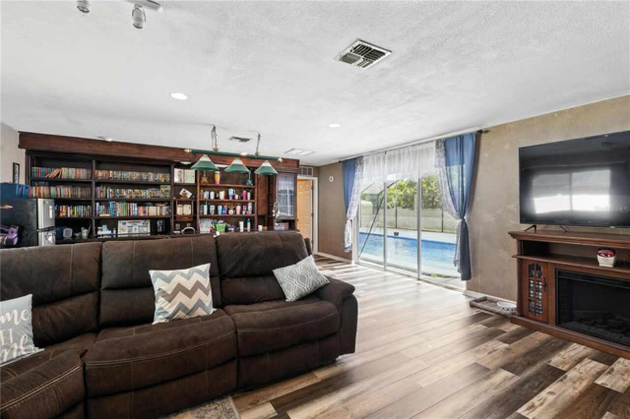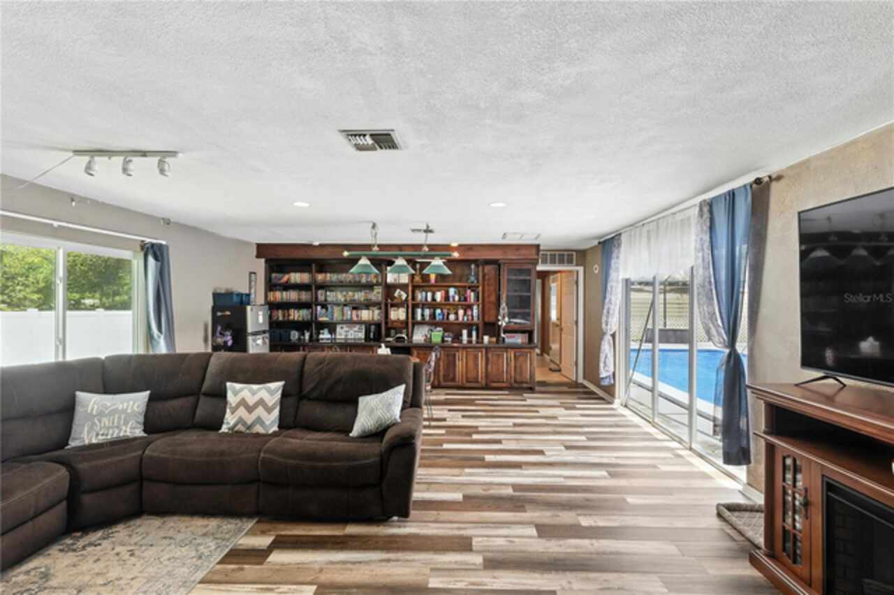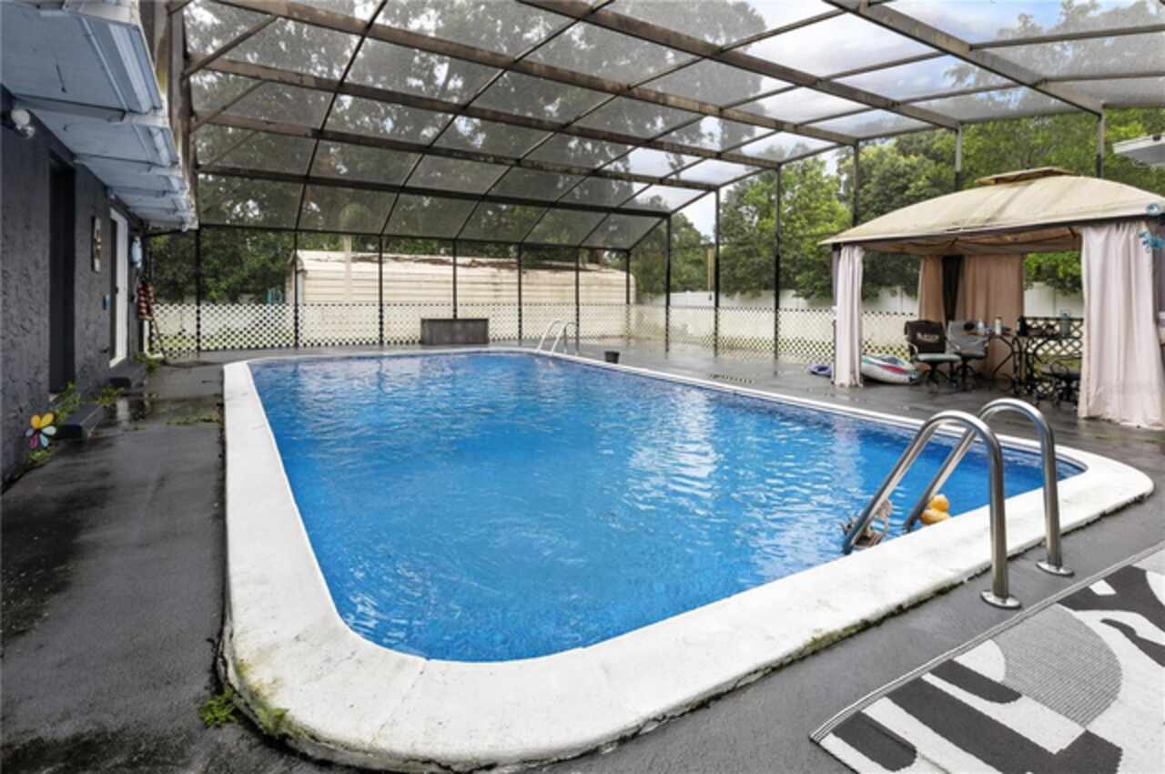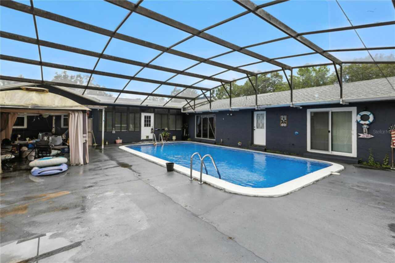 LOOKING FOR SPACE??? Seller offering $10, 000 towards rate buy down. Check out this Pool Paradise in the highly sought after Hickory Hills community of Dade City with no HOA or CDD fees. This gorgeous contemporary style POOL home blends rustic charm with modern upgrades, offering the perfect setting for family living and entertaining. 4 Spacious Bedrooms, 3 Full Bathrooms, Two Master Suites, Two Living Rooms, Open Kitchen with Stainless Steel Appliances, Brick Fireplace, Custom Built Bar leading out to pool patio, Attached 2 car Garage, all in a split floor plan. Step through sliding glass doors from the master suite or game rooms to your private pool oasis, perfect for Florida evenings under the stars. The home sits on a generous 0.42-acre lot, offering space and privacy while still being close to hospitals, schools, shopping, and dining. Whether you're hosting pool parties, relaxing by the fireplace, or tinkering in your detached garage workshop, this home has it all. And plenty of updates including new screens on pool cage, tankless water heater, new flooring, and more.... If you're looking for space and accommodations for a large family, this one is for you.