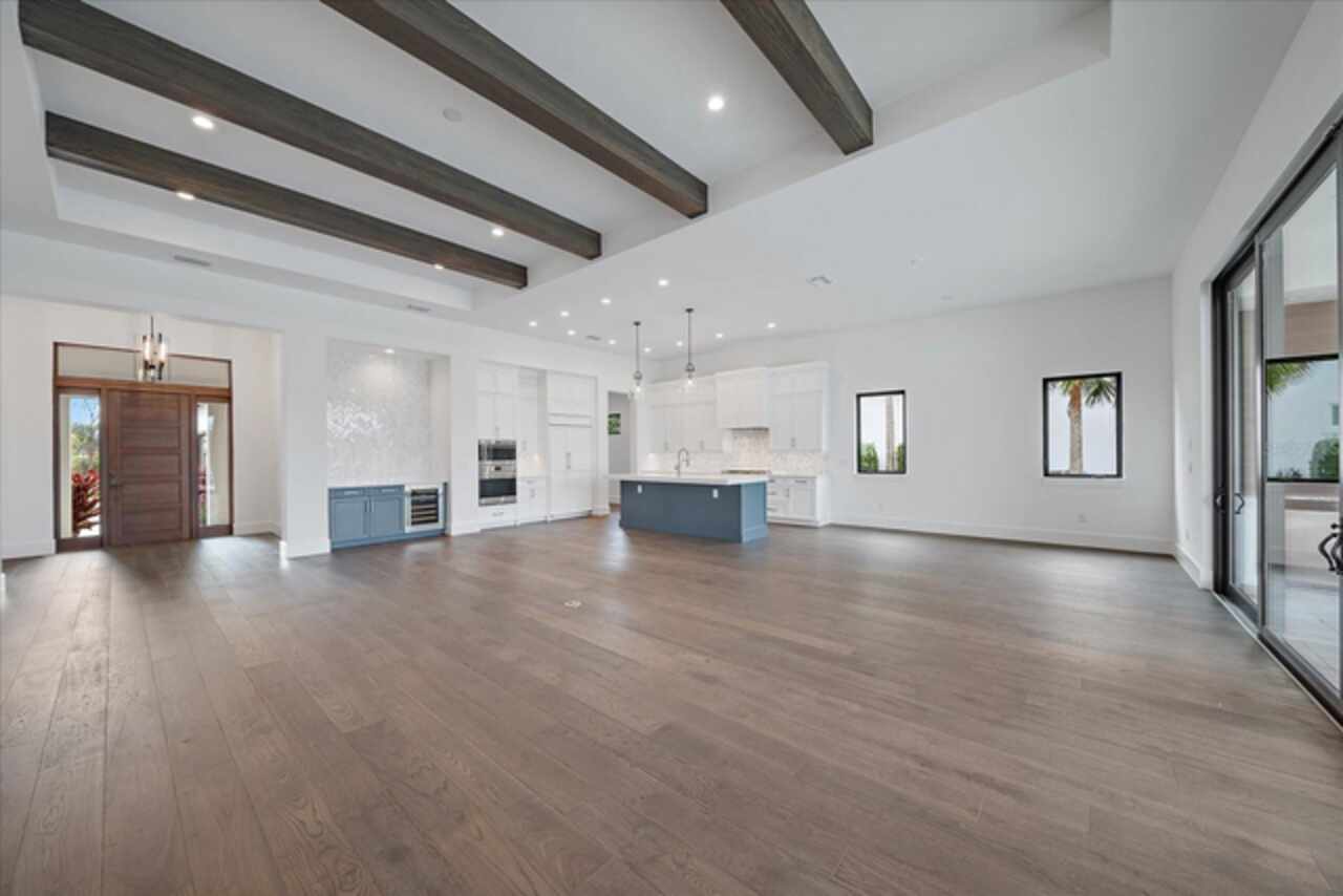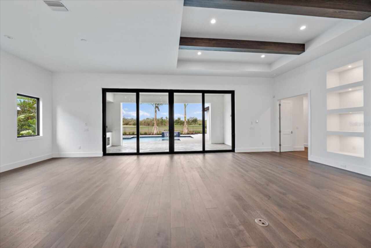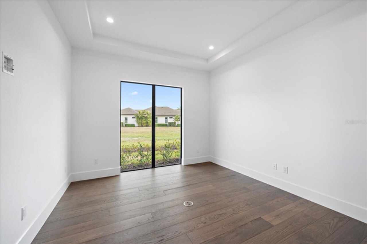 Enjoy life in the private gated community of The Founders Club, encompassing 700 total acres with only 262 home sites. The Cameron, London Bay's newest luxury home, overlooks a stunning view of the community's private Robert Trent jones, Jr. championship golf course. The Founders Club is minutes from University Town Center and many fine dining and shopping choices. Featuring 3, 323 sq. ft. of living space, the model showcases London Bay's latest designs. Clean line architectural styling and details highlight an expanded outdoor destination and an open floor plan. The great room and dining area's 10 ft. sliding glass doors floor to an alfresco space, which offers living and dining areas, an outdoor kitchen with remote controlled bug screens, a fire pit, a lavish pool and spa, as well as a terrace surrounded by lush landscape. The master suite offers two walk-in closets and provides an additional private access to the pool terrace via a French door. Adjoining the master bedroom is a luxurious and spacious bathroom with dual vanities and a custom, all glass shower. The Cameron has 4, 830 total under roof square feet, including a three-car garage. This home has many upgrades. Floor plan and drawings are conceptual only and should not be relied on as express or implied representations of the final detail of the residence. THE PURCHASE OF A SIGNATURE GOLF MEMBERSHIP IS REQUIRED FOR PURCHASE OF THIS HOME.