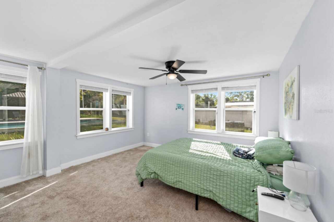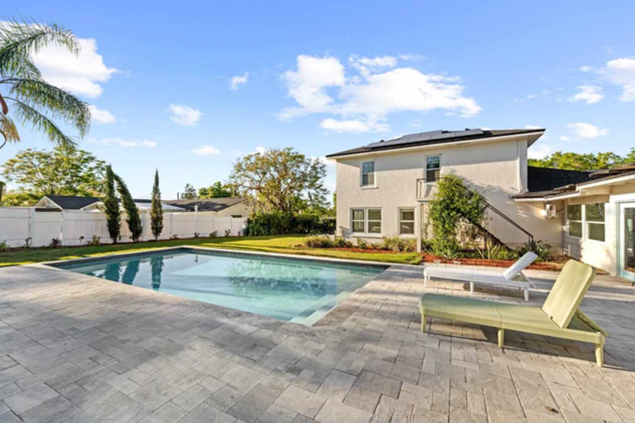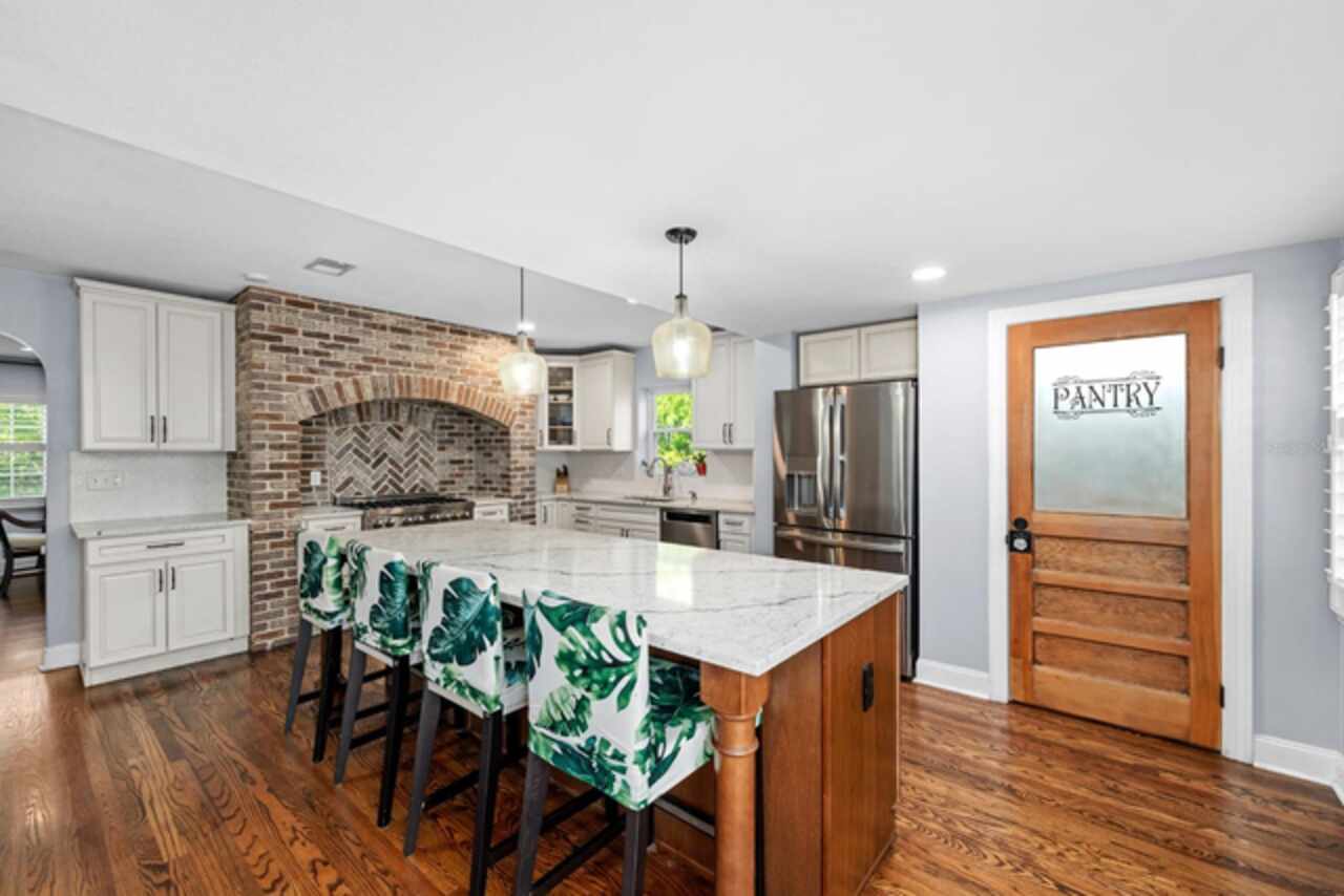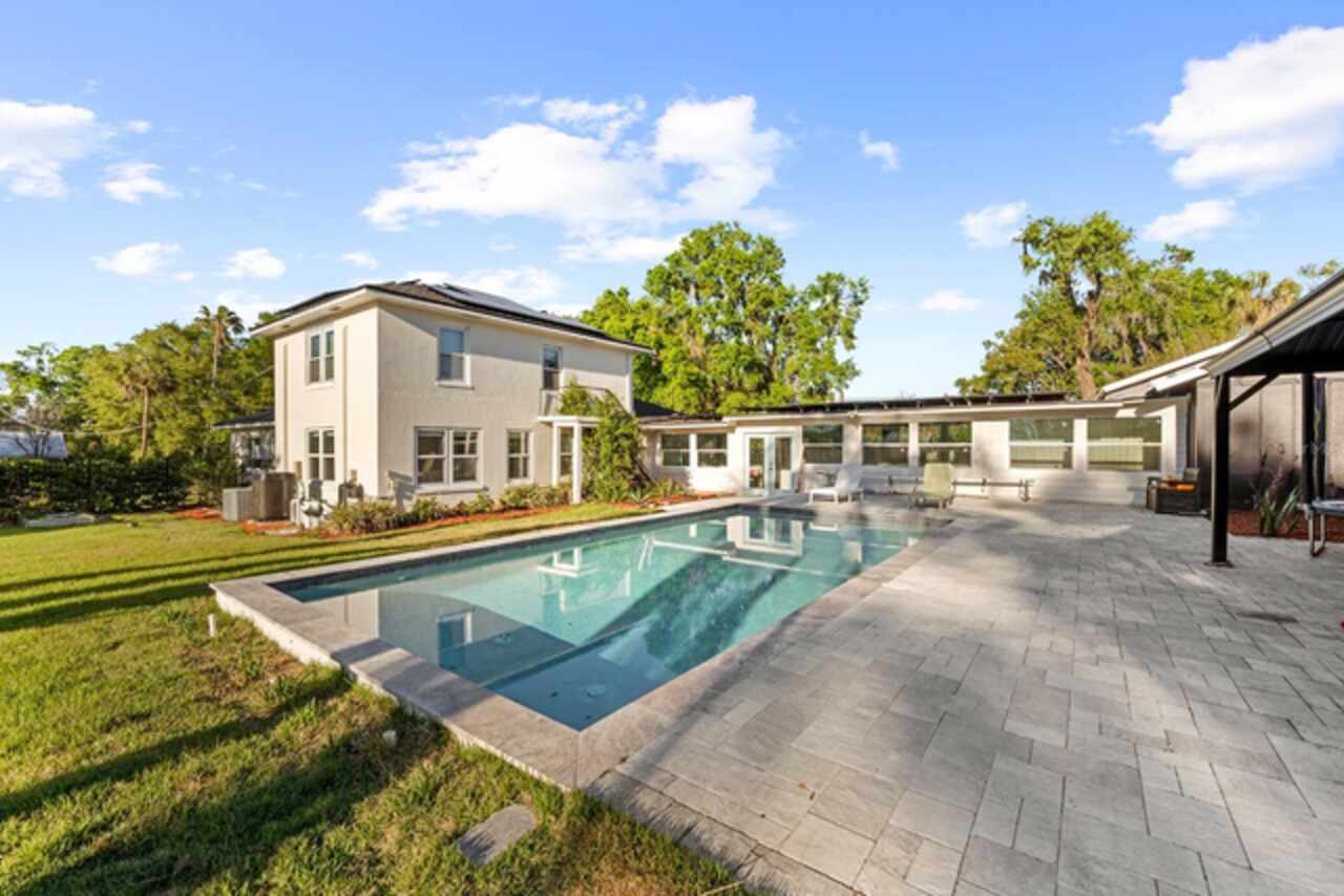 Exquisitely Remodeled Home!! SOLAR PANELS ARE PAID IN FULL, and WARRANTY is TRANSFERABLE to new owner!!! Situated on a sprawling .67-acre lot, this stunning 4-bedroom, 3-bathroom retreat boasts elegant upgrades and a private SALTWATER POOL! Step inside to BEAUTIFUL, refinished hardwood floors and an OPEN floor plan. The living room is a standout with BUILT-IN cabinets and WAINSCOTING, creating a perfect space for relaxation and entertainment. The dining room effortlessly connects to the chef’s DREAM kitchen, where you'll find CUSTOM wood cabinetry, QUARTZ countertops, stainless steel appliances, and a STUNNING 9-foot island. The CENTERPIECE of the kitchen is the beautiful BRICK OVEN ALCOVE, surrounding a SIX-BURNER gas stove, making it as functional as it is breathtaking. The primary suite is a serene retreat with TWO walk-in closets and an en-suite bathroom, complete with DOUBLE vanities, a large walk-in shower, and a classic CLAWFOOT tub. Down the hall, the second bedroom and bathroom have been beautifully remodeled. Upstairs, you will discover a BONUS TV room, along with the third and fourth bedrooms and an additional bathroom, featuring a MARBLE WALK-IN shower. Downstairs, you will find a private office/flex room with FRENCH POCKET doors. The laundry room is conveniently located near the back door and is also accessible from the primary bathroom. The fully enclosed breezeway, with BRAND-NEW DOUBLE PANE windows and a mini-split air conditioner, adds about 506 square feet of heated and cooled living space. From here, move to the large paver patio, where your private backyard oasis awaits. Take a dip in the saltwater POOL or unwind under the GAZEBO, all while enjoying the peaceful surroundings. Sustainable and secure, the home features 60 FULLY PAID-OFF SOLAR PANELS feeding into the GRID for energy efficiency, as well as an automatic solar powered GATE with battery backup for added privacy and convenience. The gated driveway offers multiple parking spots with a 240-volt Tesla charger plus a basketball hoop and a spacious 19x26 garage with extra storage or workshop space. Recent updates include new windows, plumbing, electrical updates, and a roof replacement in 2021. SELLER WILL REPLACE CARPETS OR OFFER A FLOORING CREDIT PRIOR TO CLOSING. Located just a short walk from downtown Dade City and the renowned 7th Street, enjoy easy access to shopping, dining, festivals, and more. This is a ONE-OF-A-KIND home so schedule your showing today!