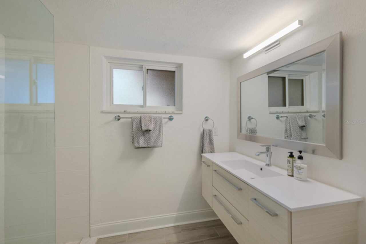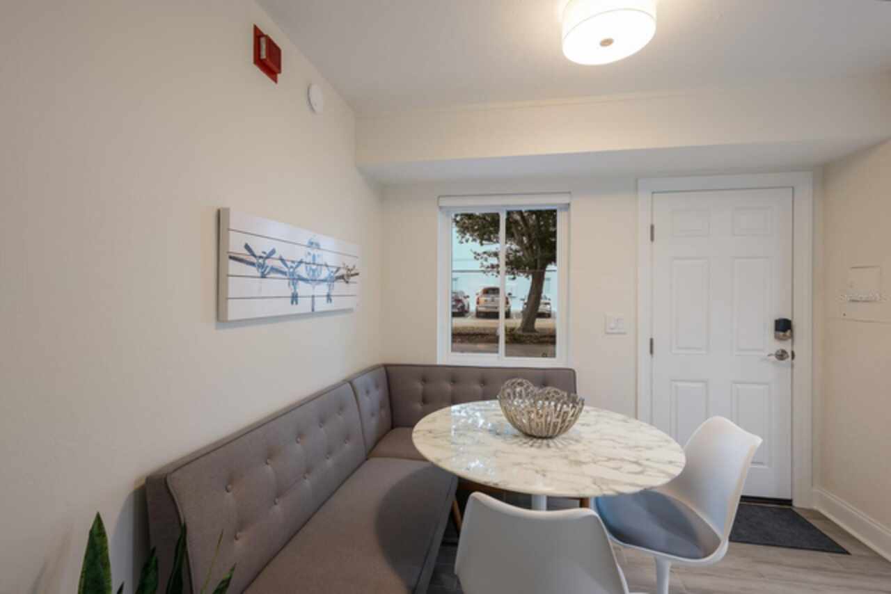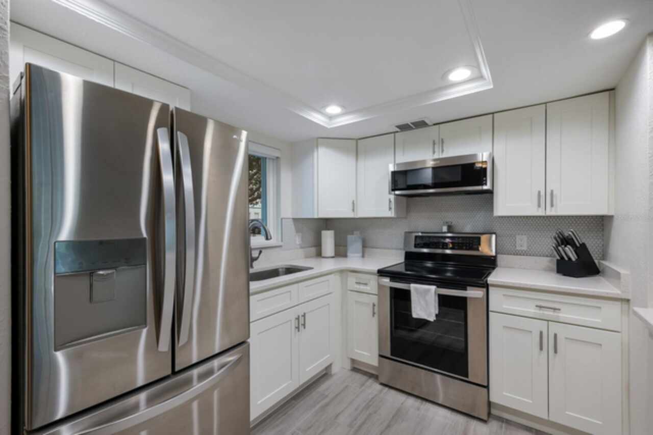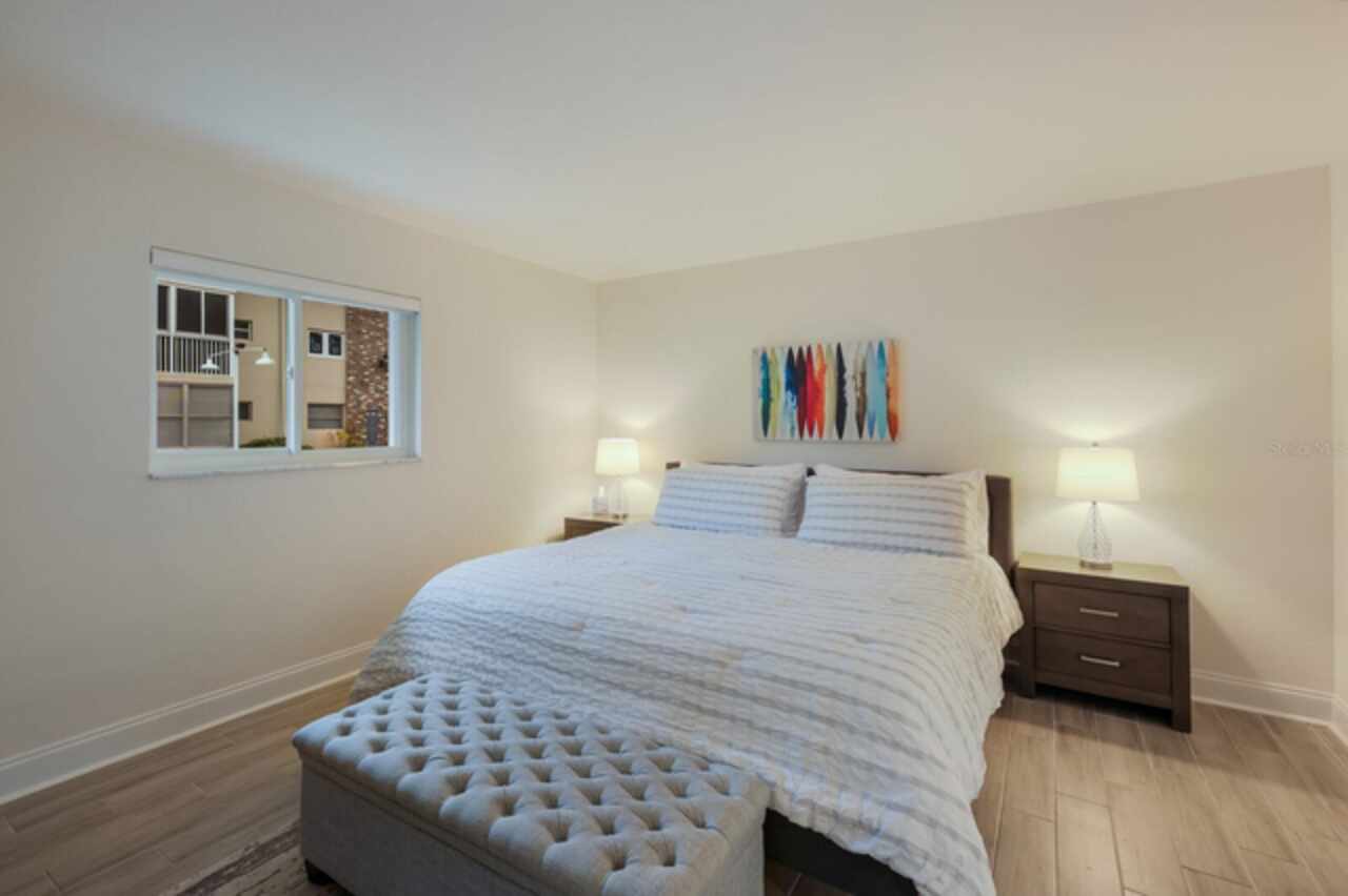 WOW, WOW, WOW! This is a huge surprise. COMPLETELY & BEAUTIFULLY RENOVATED + FULLY FURNISHED, including IMPACT (Hurricane-rated) windows, a GROUND FLOOR quiet hideaway, only steps from Fleming's Steakhouse, Baker and Wife, Rendez-Vous French bakery, Cinebistro movie theaters and a few miles from a Siesta Key Beach and a thriving downtown. You will love how NATURALLY LIGHT, bright and fresh this space is! Remodel completed in 2023, including kitchen with quartz countertops and a breakfast bar, both baths, all flooring, windows and custom window shades. Parking directly outside of your kitchen door. Feet from the Southgate Mall, Florida Studio Theatre, Fleming's Steakhouse, Baker and Wife, Rendez-Vous French bakery, Cinebistro movie theaters and Rick's and Andrea's. A straight shot down Siesta Drive to Siesta Key Village and Beaches and minutes from Sarasota Memorial Hospital + Downtown. The condominium has been lightly used to visit family in town and is NOT IN A FLOOD ZONE. If you're looking for a place for you to live in while you build a home, or need a place for Mom, a fresh new start or a pied a terre, this is IT!