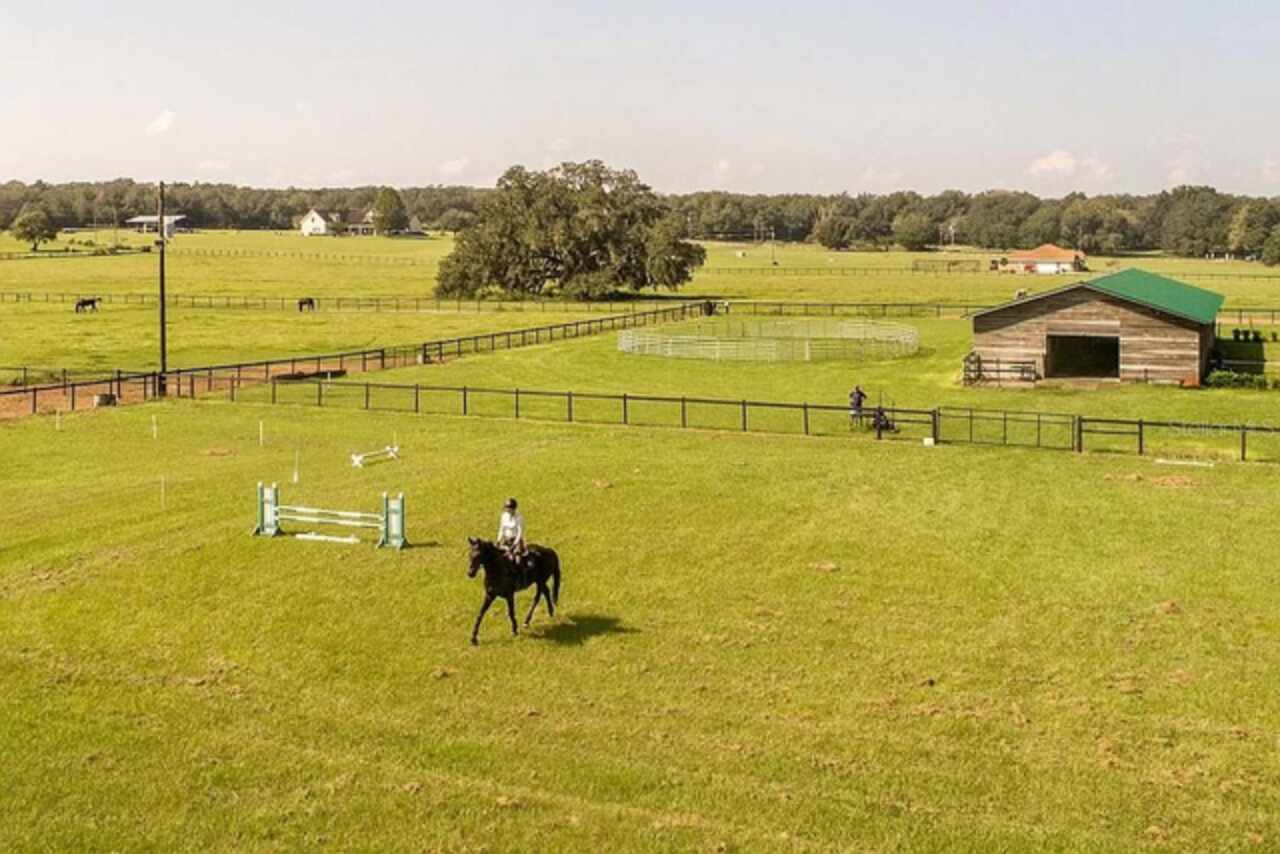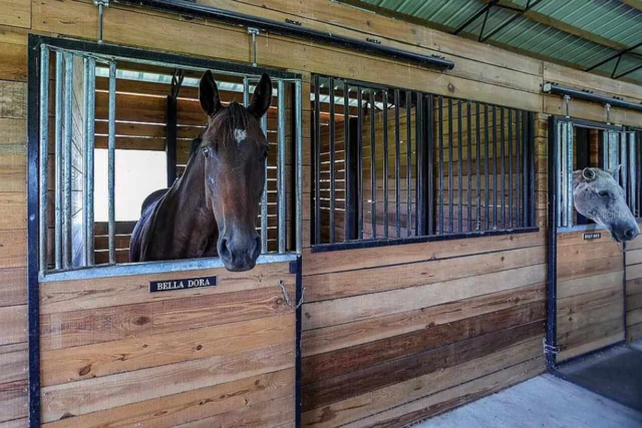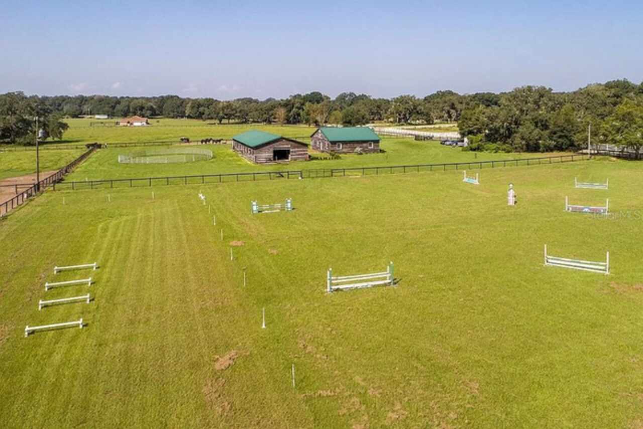 Gorgeous 18-acre property adjoining Trilby Trails Equestrian Community in Dade City, FL. Property includes a beautiful 2, 000 sq ft, 4 bedroom , 2 bath dwelling with majestic high ceilings, huge closets, generous attic space, and uv protected/insulated windows . The property also includes a custom 15-stall center aisle barn consisting of minimally sized 12 x 12 fully matted stalls, galvanized steel Triton stall fronts and sliding doors, complete with feed openings and upper door openings, automatic waterers and individual remote powered fans in each stall. The barn also has a bathroom, washing machine, refrigerator, a concrete and matted center aisle, a separate 3-sided cross-tie grooming/ tacking area in the center of the barn, and outside wash stall. Property is fully fenced and cross-fenced with horse-safe no-climb fence wire, flex rail and electric wire on top. The property's deep well and water conditioning system delivers high quality water with extremely good water pressure. Property is located within 5 miles to shopping, 7 miles to hospital, 7 miles to Pasco-Hernando State College East Campus, and 10 miles to St. Leo University. Also, 30 minutes to fast-growing Wesley Chapel community. For the competitive horse enthusiast, the property is within a 1 hour drive to Tampa Show Grounds, Florida Horse Park, Ocala’s World Equestrian Center, and HITS Show Grounds. Property consists of part of parcel #34-23-21-0000-01300-0000 and part of parcel #34-23-21-0000-01300-0070. Adjoining 10 acre parcel also for sale -