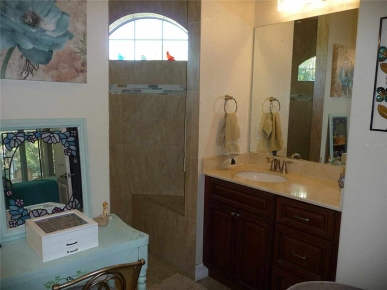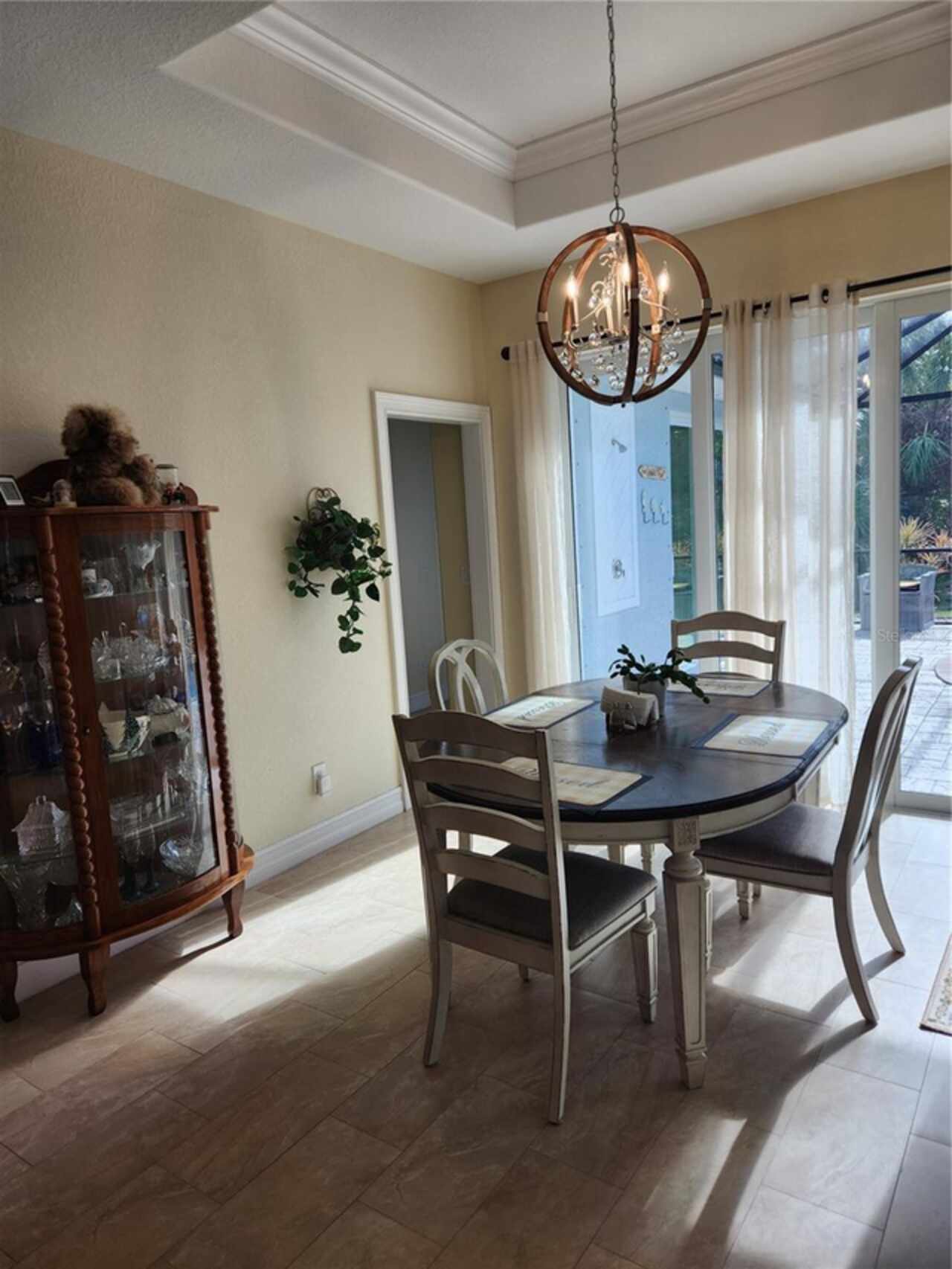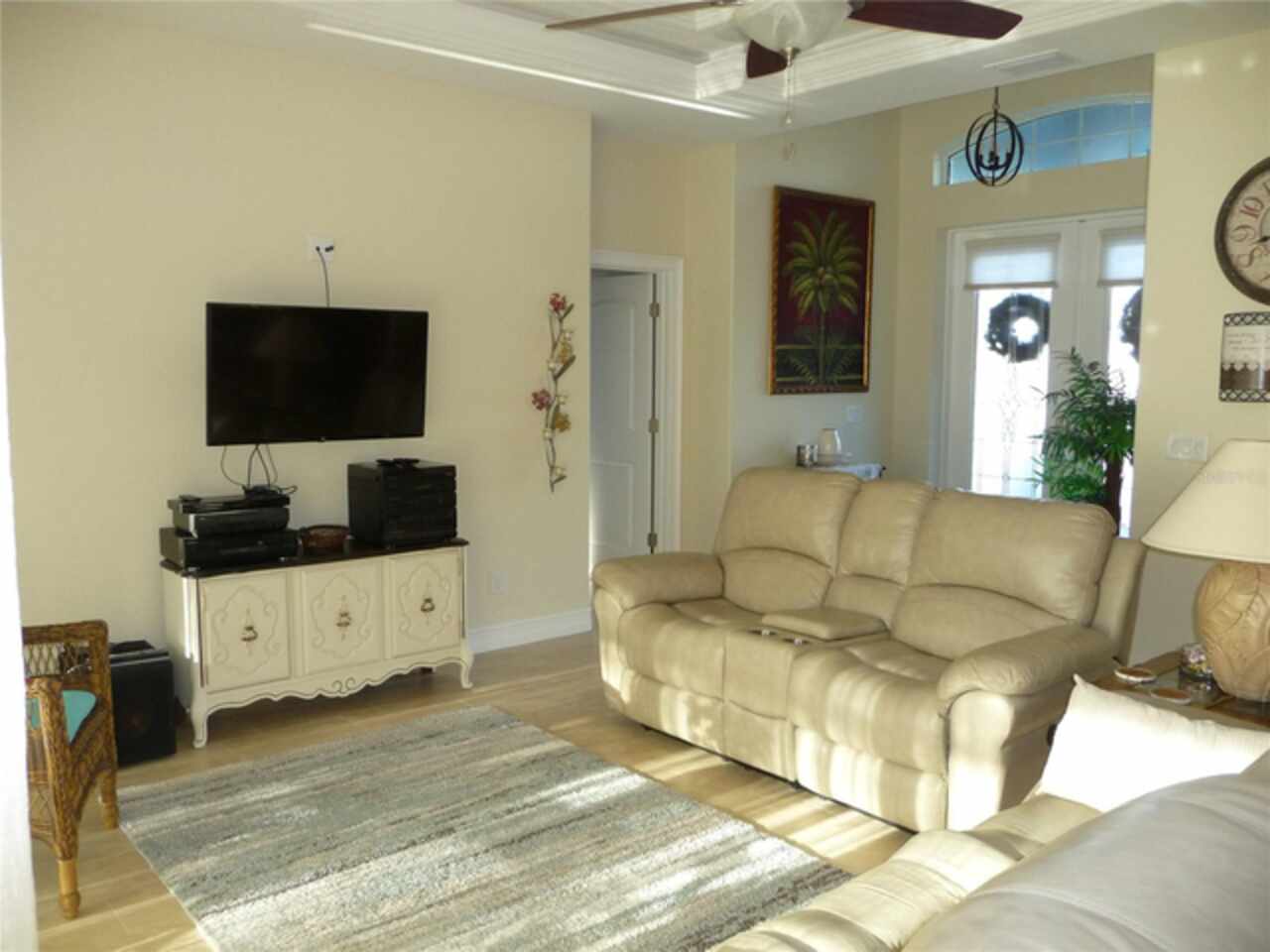 PRETTIEST HOUSE ON THE STREET, according to neighbors, this custom built high-end home will become your Florida dream home. Etched glass double entry front doors welcome you into a large foyer and open floorplan. High ceilings provide lots of light and low utility bills and an open inviting space. Tall pocket sliding glass doors cover one living room wall and dining room wall to completely open the outdoors for entertaining and enjoying the gulf breezes. The great room has a double trayed ceiling and built-in surround sound and lighting for that special ambience. A HUGE island in the kitchen provides lots of room for eating and preparing your gourmet meals. 42" solid wood cabinets have pull-out trays for convenience and are all soft-close. All bedrooms are spacious and have walk-in closets. The primary bedroom comes with an ensuite bathroom, tiled ROMAN SHOWER, separate vanities and private water closet. Outside you will find a large pavered and enclosed lanai. The pool is heated, has a light and is accompanied by an outdoor shower. Last but not least is the 3 car garage and WORK SHOP with air conditioning. Flooring is expoxy for easy clean up and the garage doors are insulated. This lovely home on a double lot is close to great shopping, 5 sparkling beaches, the Atlanta Braves ball park, North Port Aqua Center, disk golf park, walking trails and many fantastic seafood restaurants. Airports are plentiful in Punta Gorda, Sarasota, Ft. Myers and Tampa. Room sizes are approximate. Call the listing agent for more details.