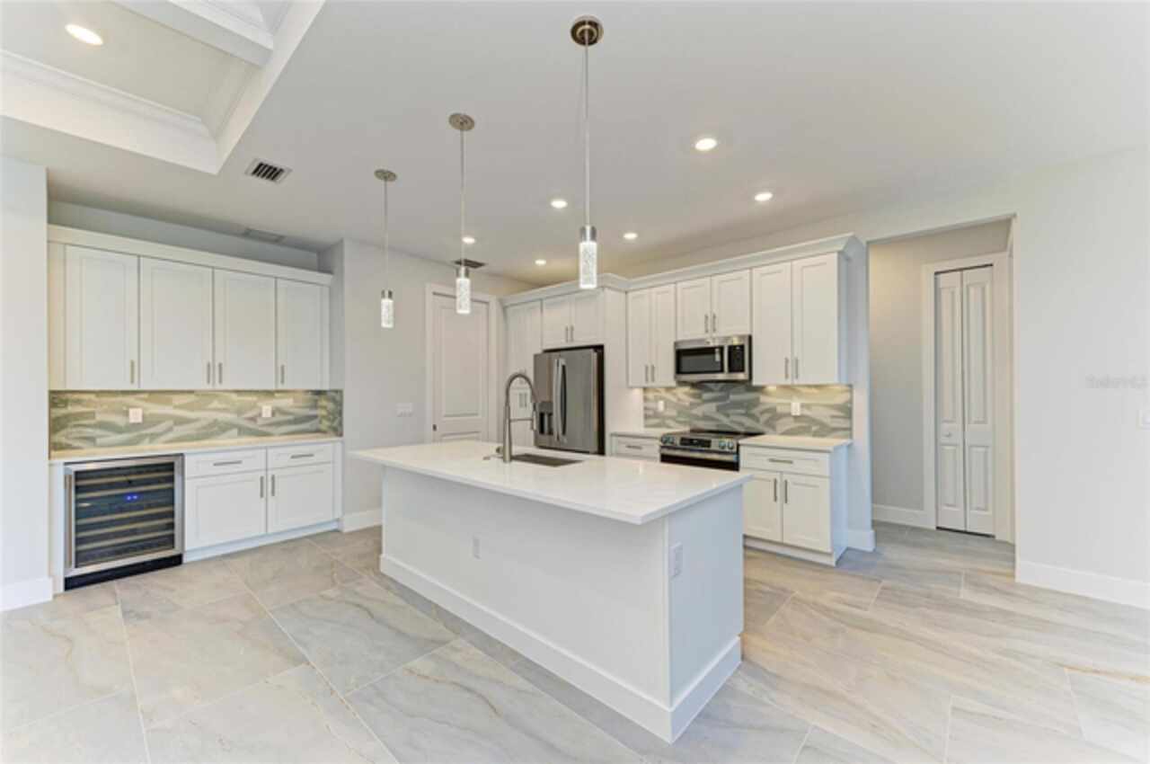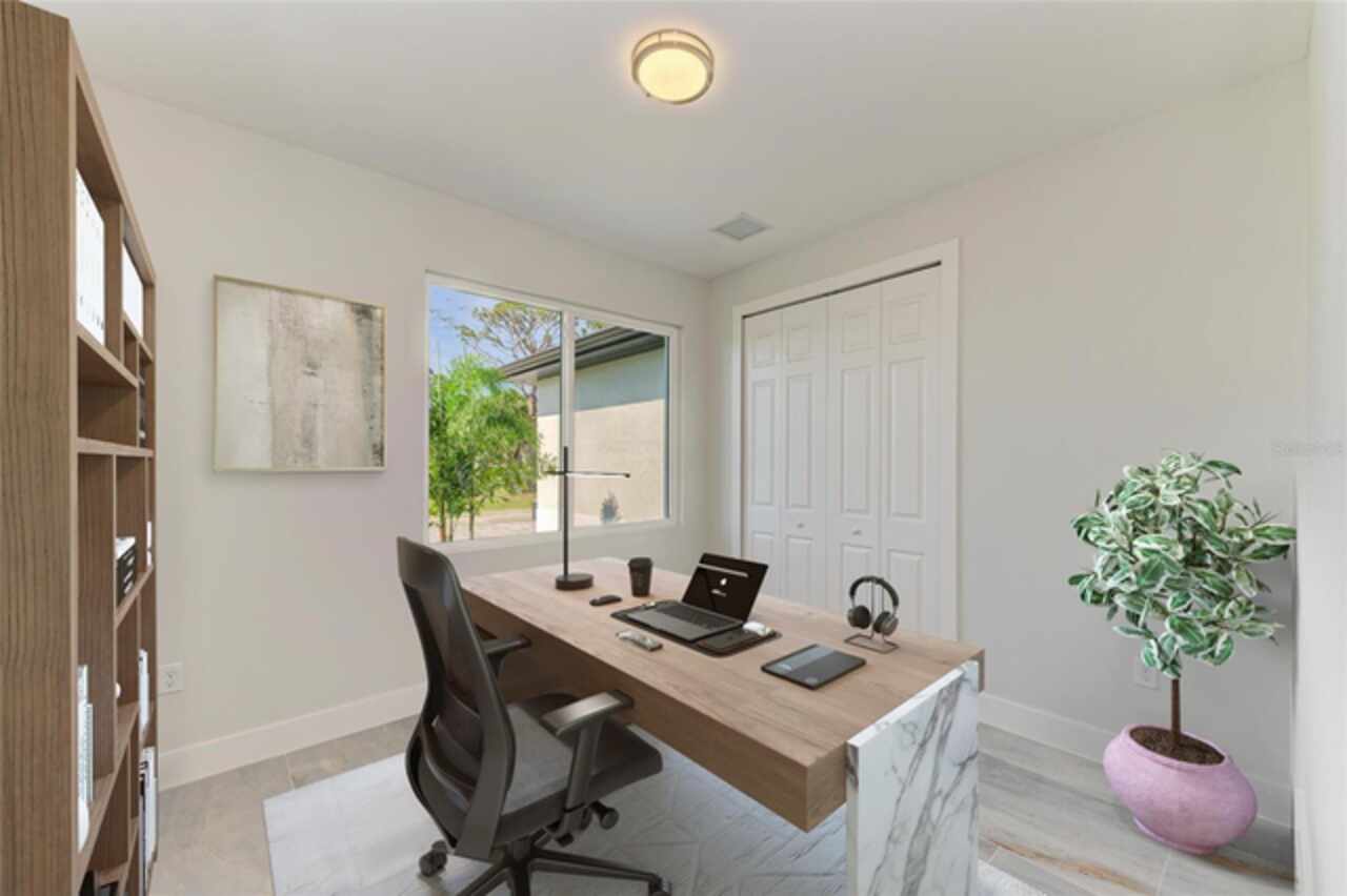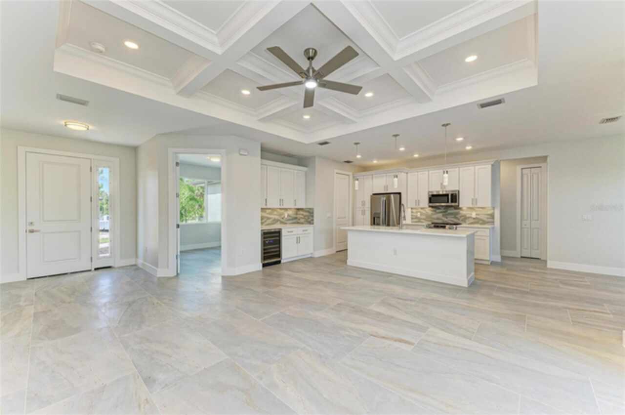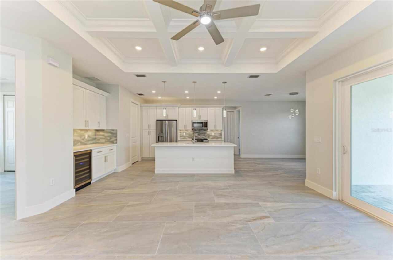 One or more photo(s) has been virtually staged. Welcome to this beautifully upgraded 4-bedroom, 2-bath, 2-car garage home offering 1, 826 sq ft of open-concept living in Venice, FL. Designed for modern living, the spacious layout connects the living, dining, and kitchen areas, flowing seamlessly to a covered patio for easy indoor/outdoor enjoyment. High-end finishes include coffered ceilings, porcelain tile, quartz countertops, a statement backsplash, stainless steel appliances, upgraded light fixtures, and a coffee bar. The private main suite features a spacious bathroom with double vanities, a large walk-in shower with a rain showerhead and glass enclosure, and a generous walk-in closet. Built with peace of mind as top priority, this home offers hurricane-impact windows, a 10-year structural warranty, and is elevated above flood zones for added safety and lower insurance costs. Set on a fully fenced lot with elegant front and back pavers, it’s designed for outdoor living. Extras include a sprinkler system with well water for irrigation, a septic system, full gutters, a laundry room, and a whole-home water filtration system. A true blend of luxury, comfort, and smart design!