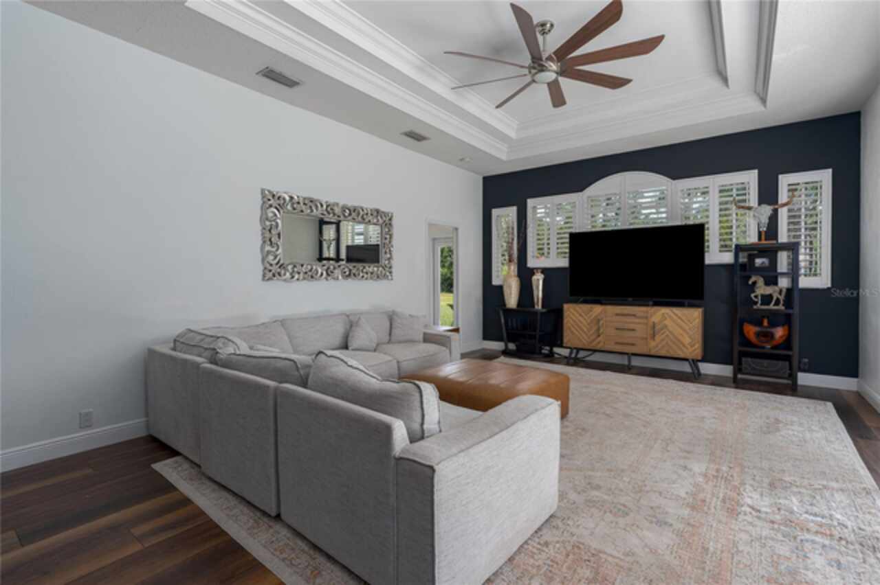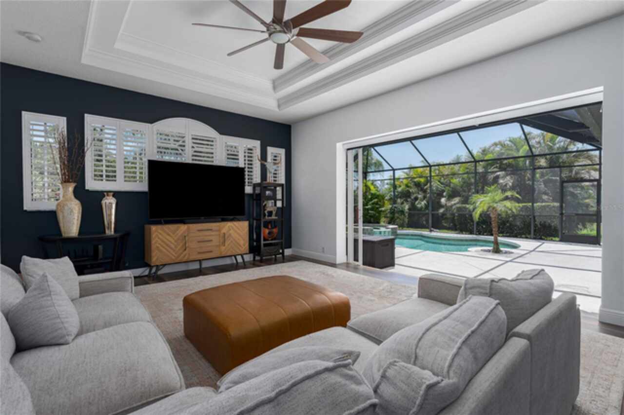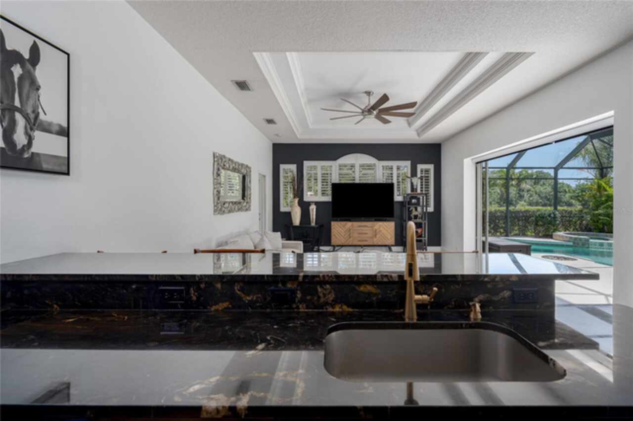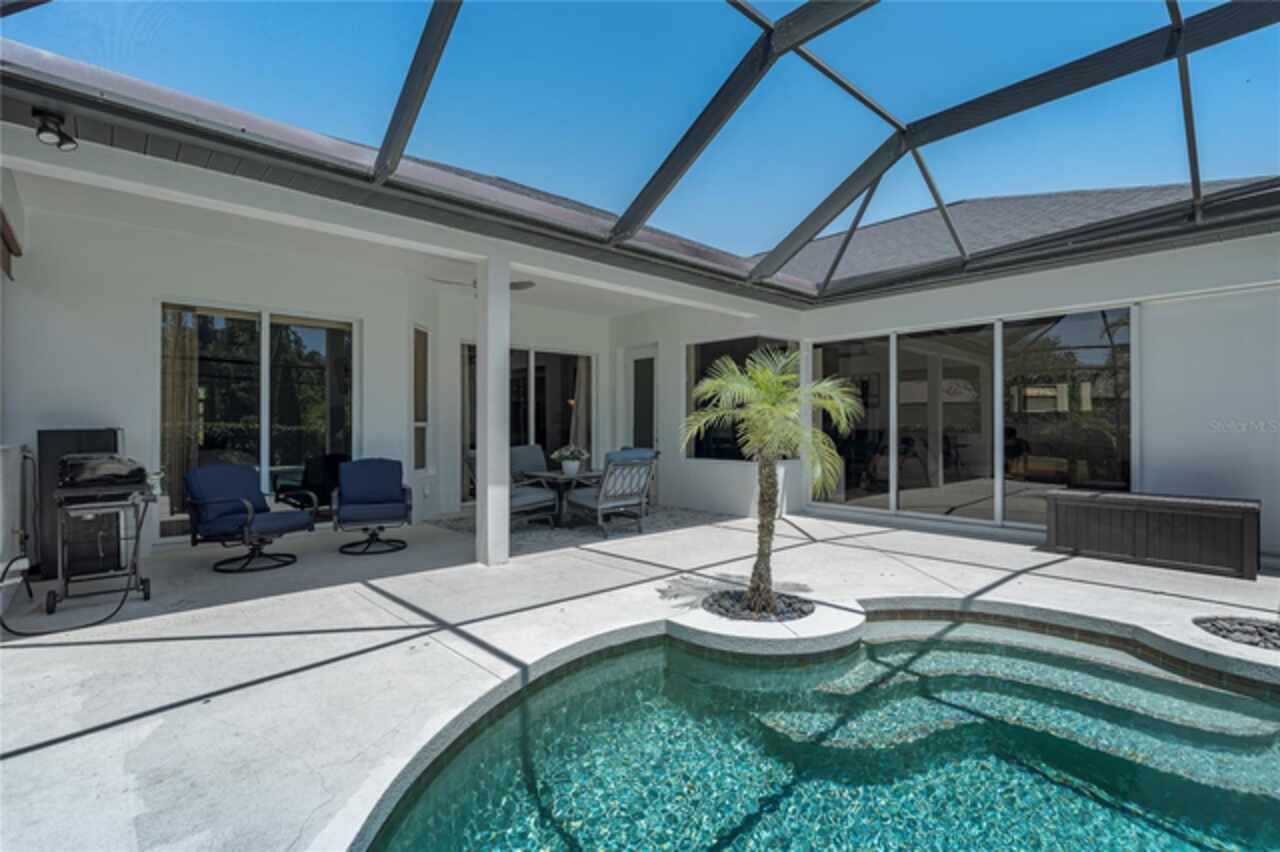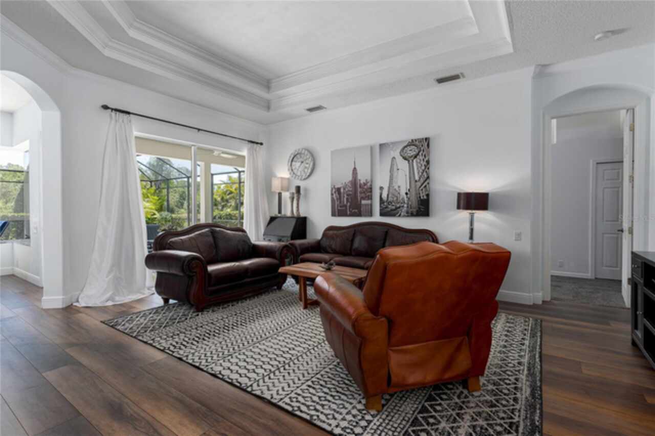 Nestled on a sprawling .72-acre lot with stunning preserve and water views, this spectacular, spacious contemporary gem, designed and built by local custom builder Arthur Rutenberg, stands as a testament to elegance, innovative design and quality. Built in 2004, the home features an open floor plan that seamlessly blends indoor and outdoor living. This extraordinary property has outstanding curb appeal, side entry three-car oversized garage with attic storage and an expansive driveway. The exterior was freshly painted in 2020, Roof 2022, and HVAC 2017. Upon entering the home, note the exquisiteness of arched doorways, decorative art niches, double tray ceilings, crown molding and 10-foot ceilings. The open floor plan features 4 Bedrooms, 3 Bathrooms, an Office, Formal Dining and Living Rooms. Recent upgrades include new luxury vinyl floors throughout the living areas and new carpet in the bedrooms, pool and guest bathrooms totally updated including new flooring, tile, sinks & hardware, glass shower doors, toilets and lighting. The Lanai was repainted, is plumbed for an outdoor kitchen, new lighting in all rooms and the Laundry Room has a new sink, countertop and hardware. The Kitchen is a chef’s delight with new black stainless-steel appliances, double ovens, stone countertops, wood cabinets, plenty of counter space and an island for additional food preparation area. The Dinette with an aquarium window overlooks the Pool area. The huge Family Room has direct access to the Pool area through pocket sliders that have new motorized blinds. Adjoining the Family Room is a large private bedroom or an in-law/teen suite with full bath and private entry. It also serves as the pool bath. The floor plan provides ample space for relaxing and entertaining formally in the Dining and Living rooms and working at home in the private Office. The Primary Bedroom is enormous, has private access to the pool area and features dual sinks, walk-in-closet, garden tub, and separate walk-in shower. This beautiful home offers an unparalleled living experience, combining aesthetic beauty with practical upgrades. Its unique features and recent improvements make it a standout property in Twin Rivers. Twin Rivers subdivision offers residents reclaimed water for irrigation, a private boat launch to the Manatee River, kayak/canoe racks, community park, picnic tables, fishing dock, basketball court, volleyball, soccer and playground. HOA fees are reasonable and there is no CDD. Schedule your private showing soon!